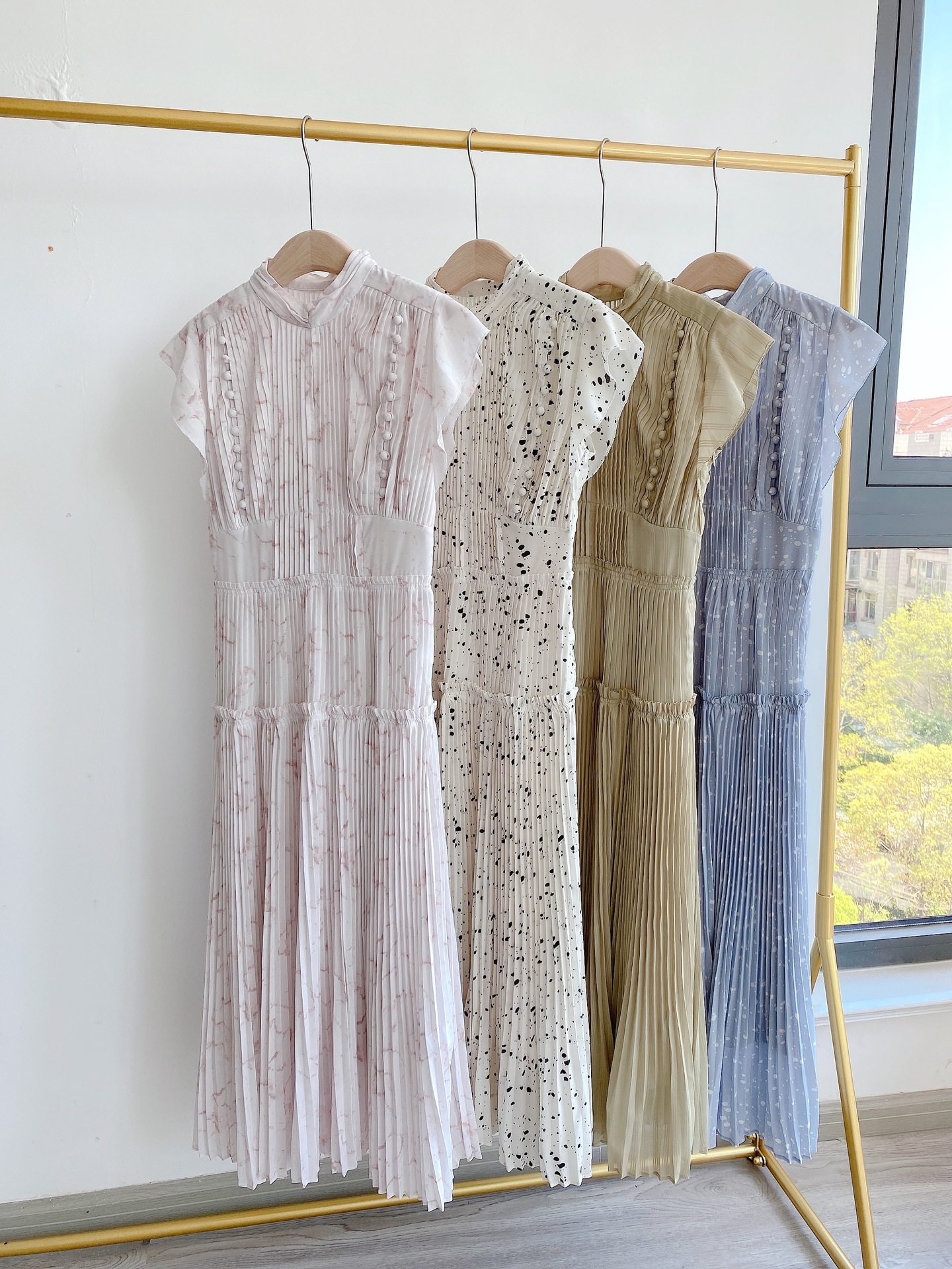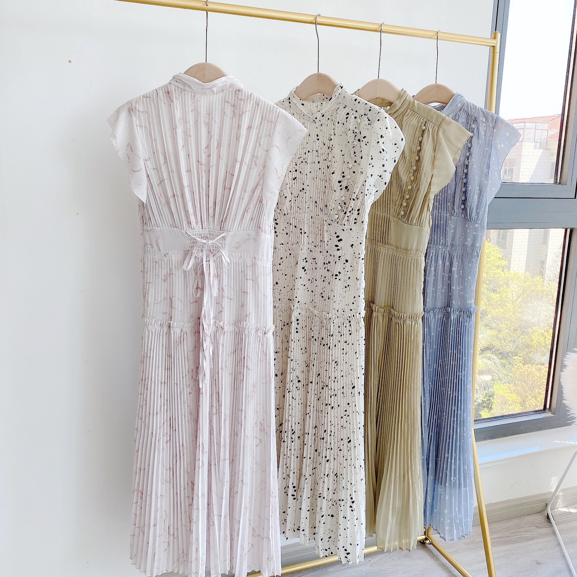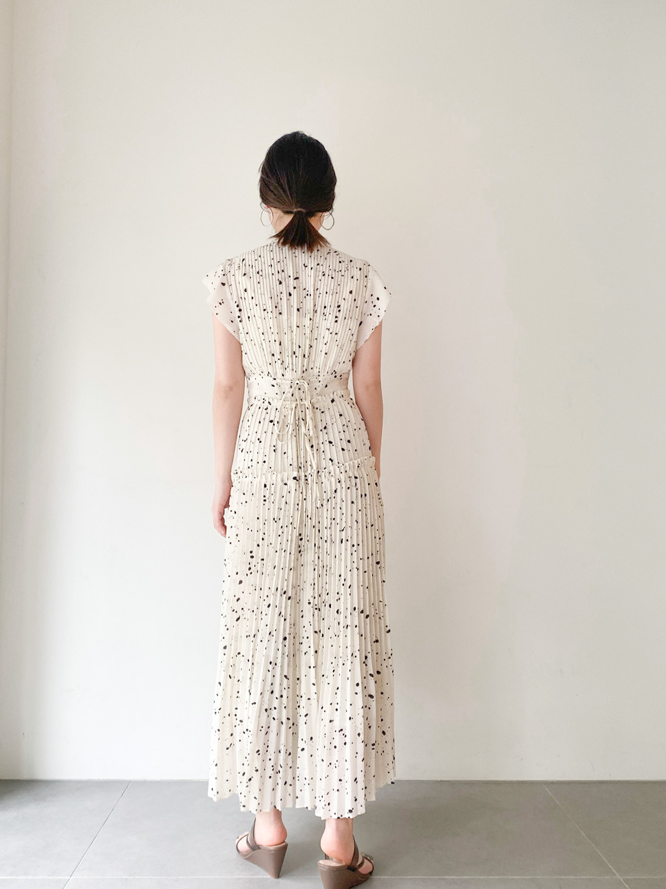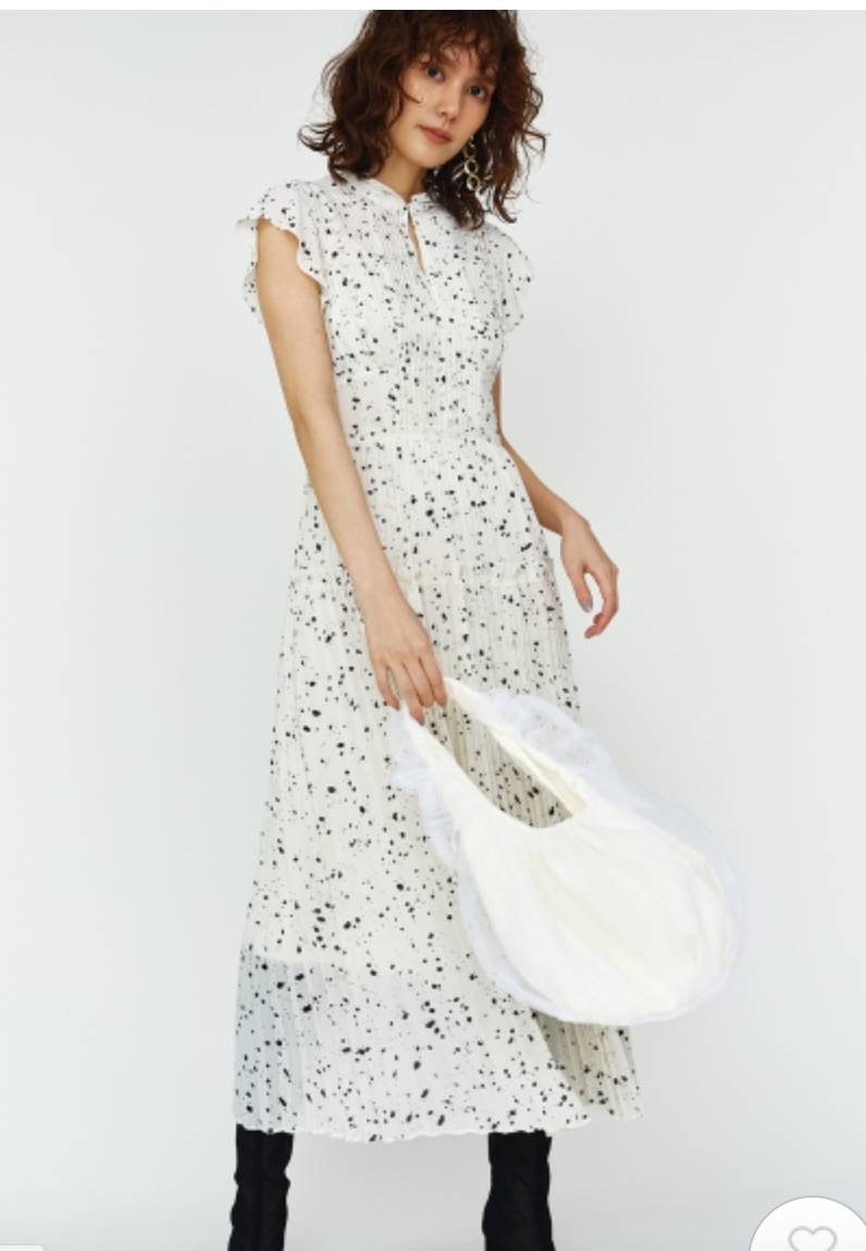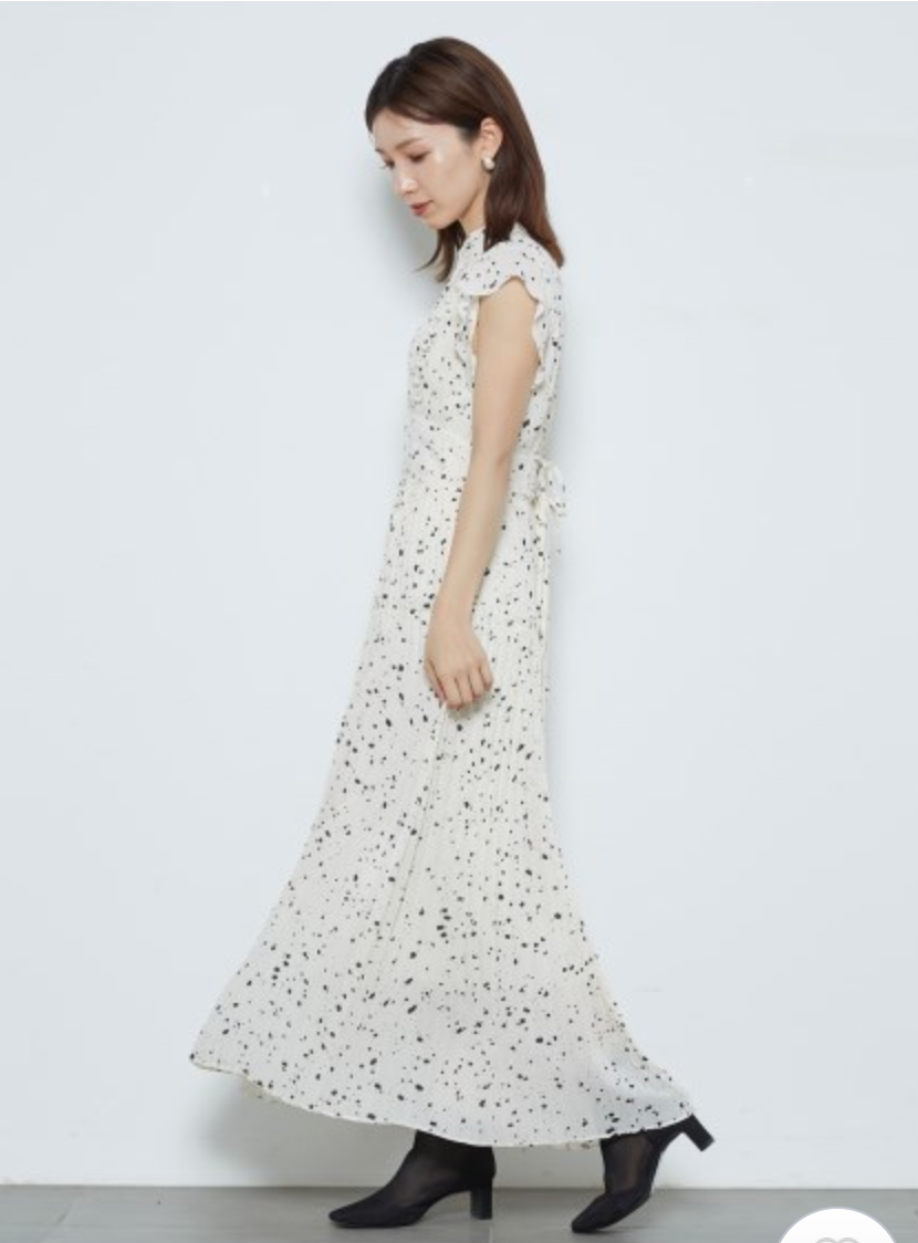【新鮮なフェミニティを醸すストーン柄プリーツワンピース】