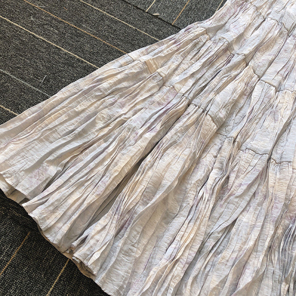 さりげない光沢のあるシアー素材で、表情豊かに。無地のホワイトとラベンダー、柔らかなマーブルプリントのミックスをお作りしました