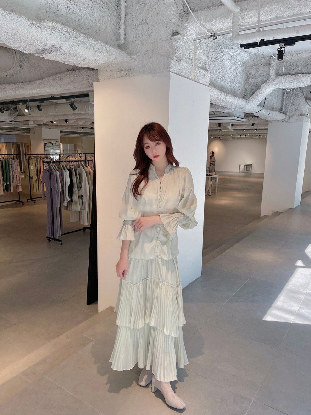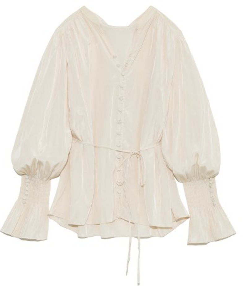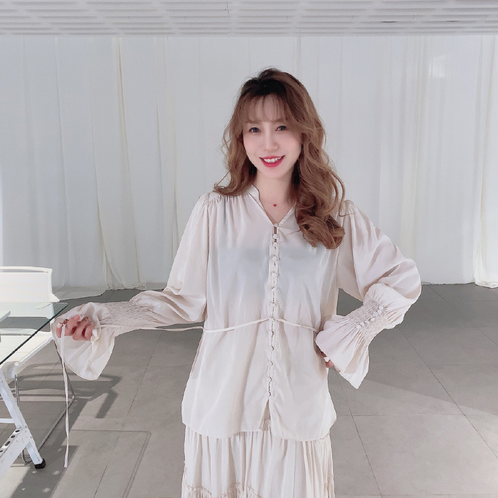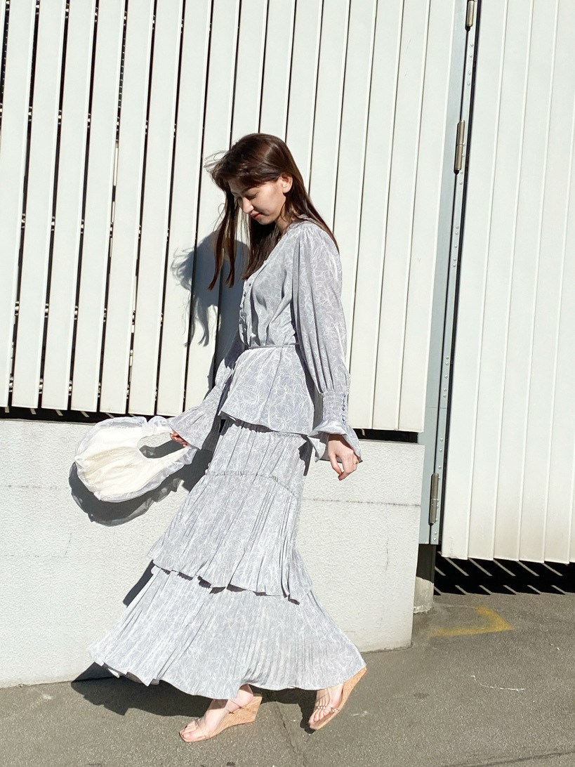 袖のシャーリングやフロントのボタン使いも、着映えをアシスト。スラックスなどを合わせると、きれいめリラクシーな装いが完成。同シリーズのスカート(品番SWFS211127)とのセットアップ着用もおすすめです。