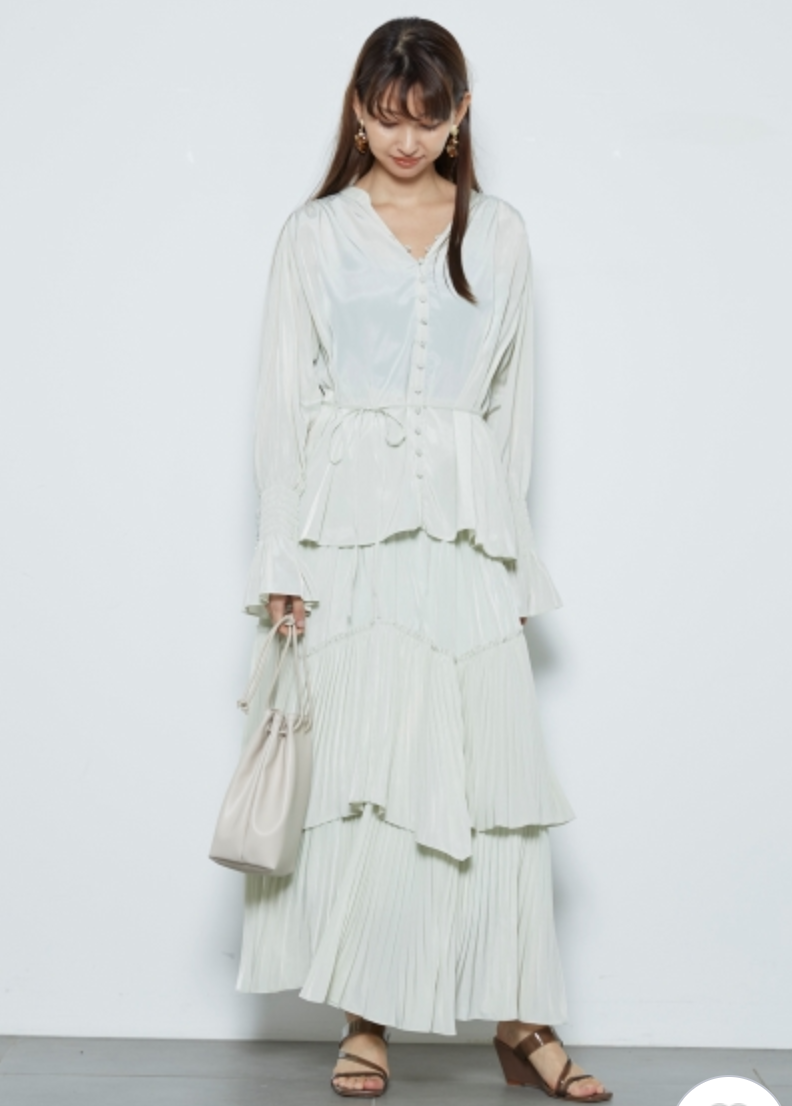 共布ベルトでウエストマークをすることで、ボトムアウトで着用いただいてもバランス良く仕上がります。