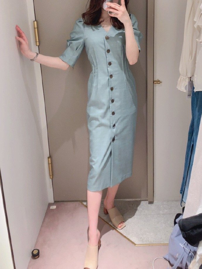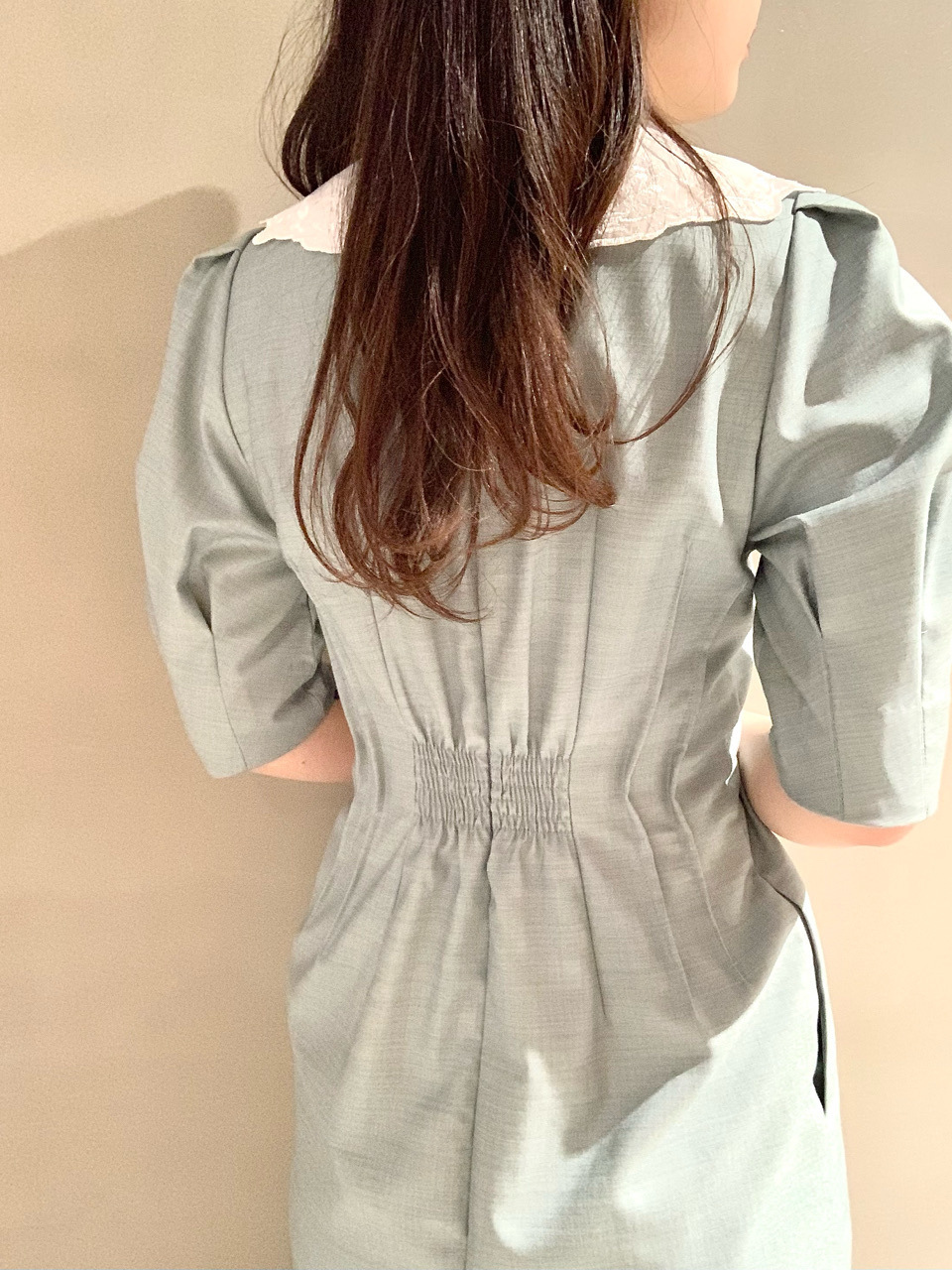 衿付きVネックワンピース