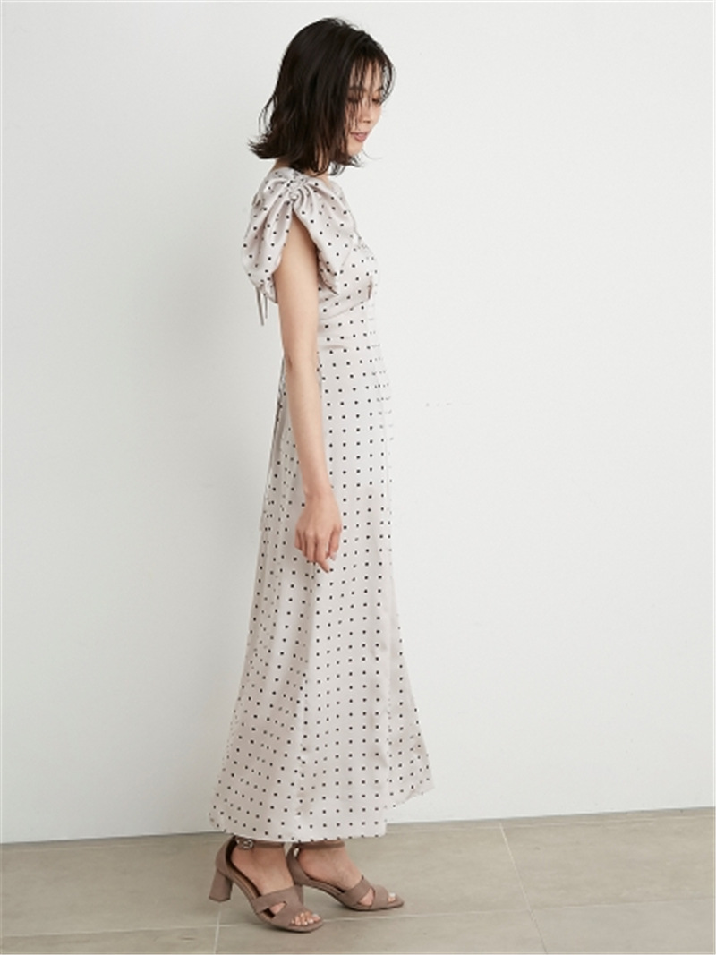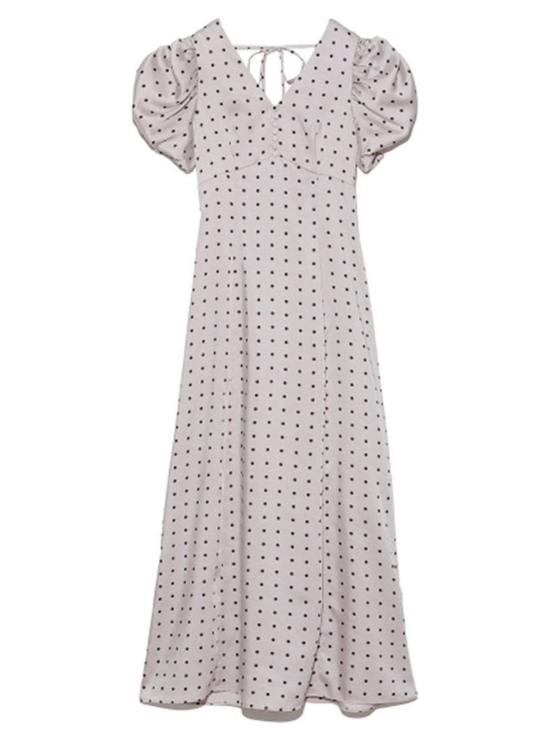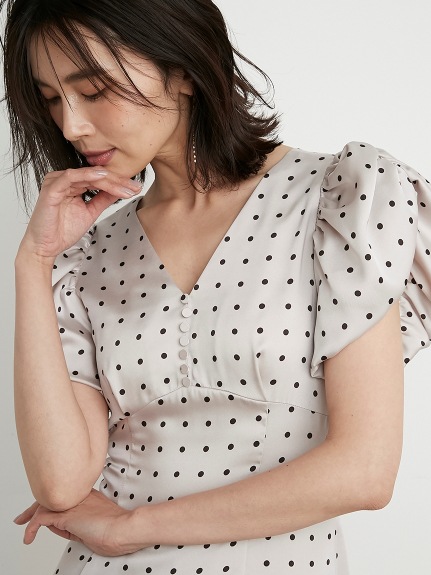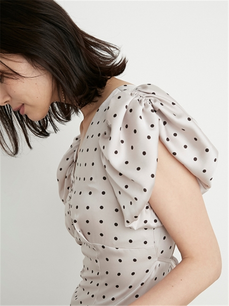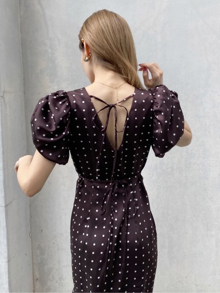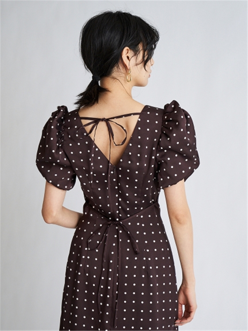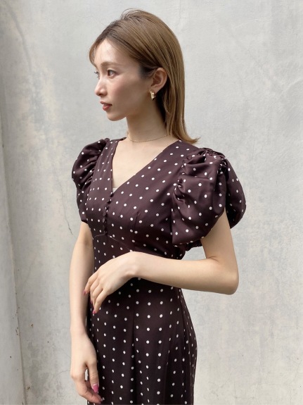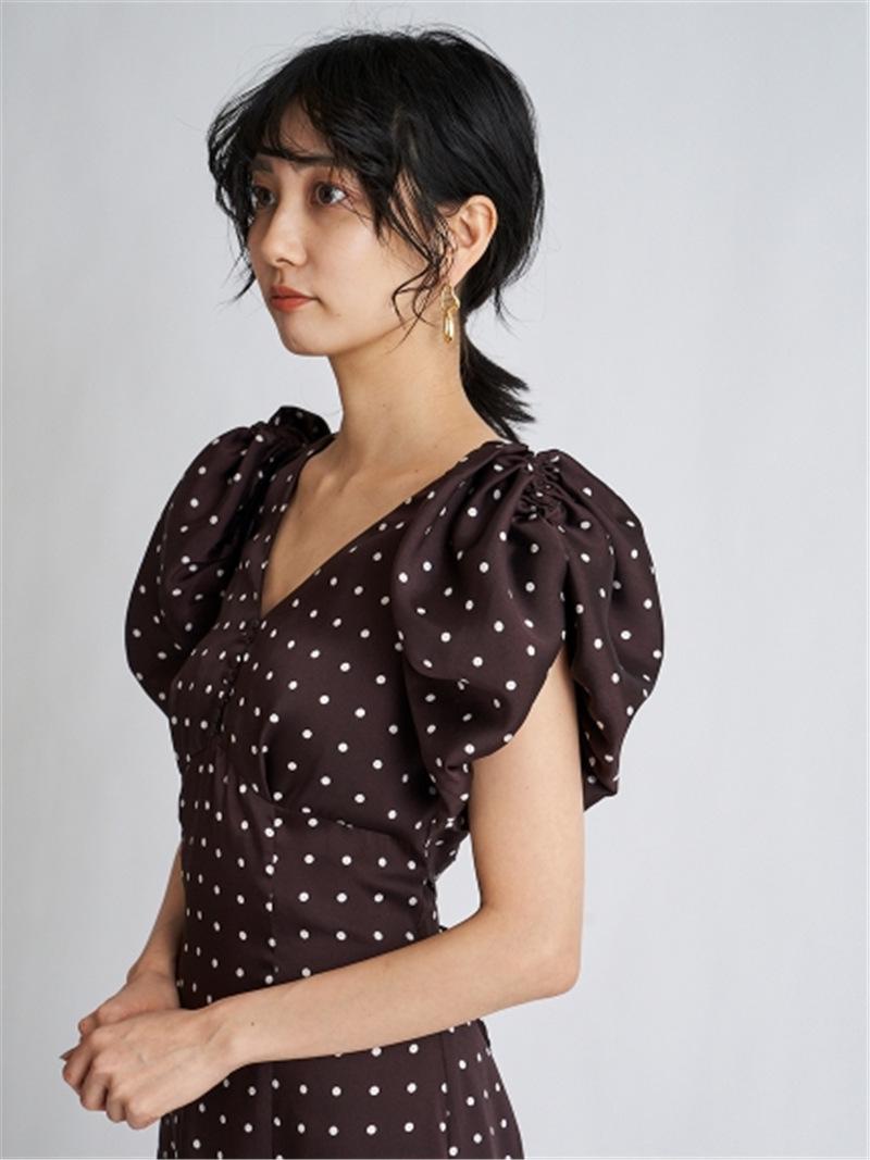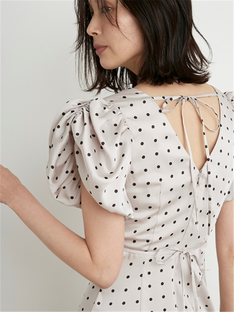 Sustainaギャザーパフスリーブドットワンピース