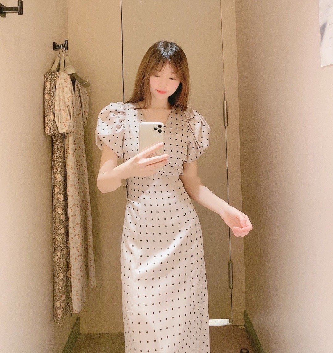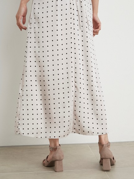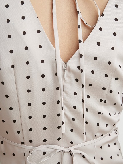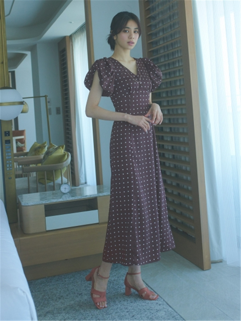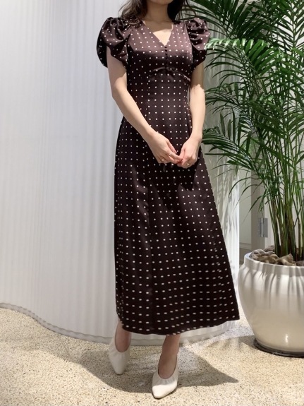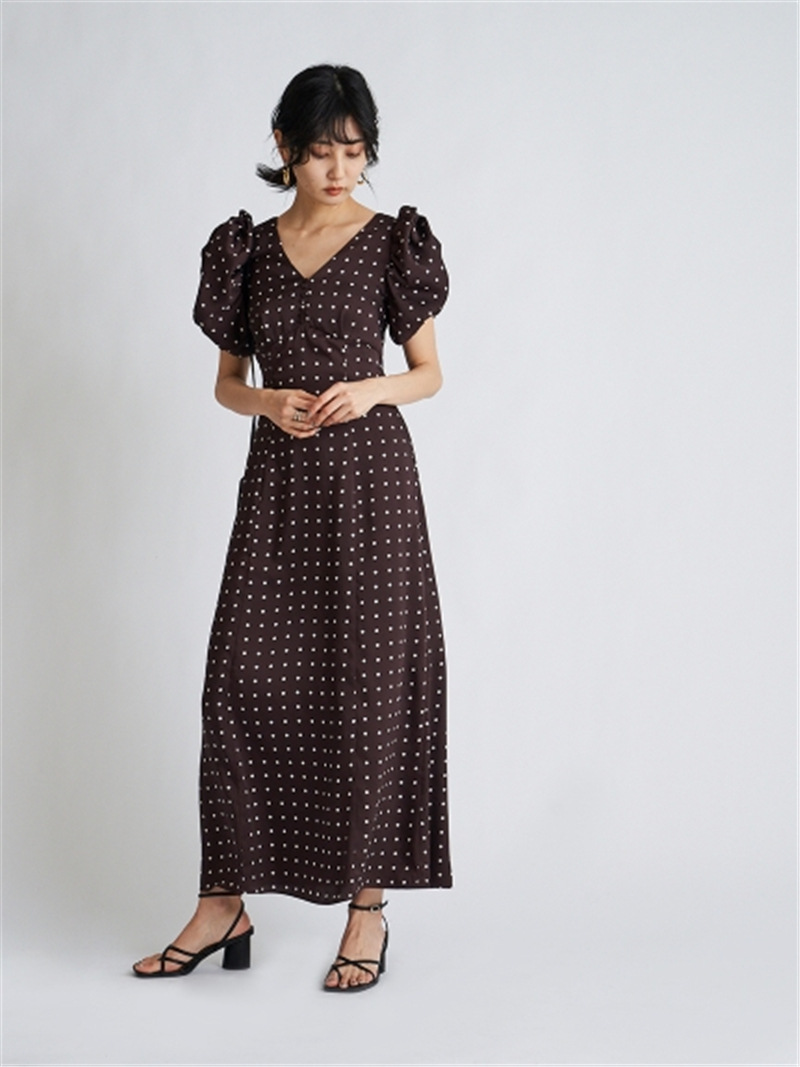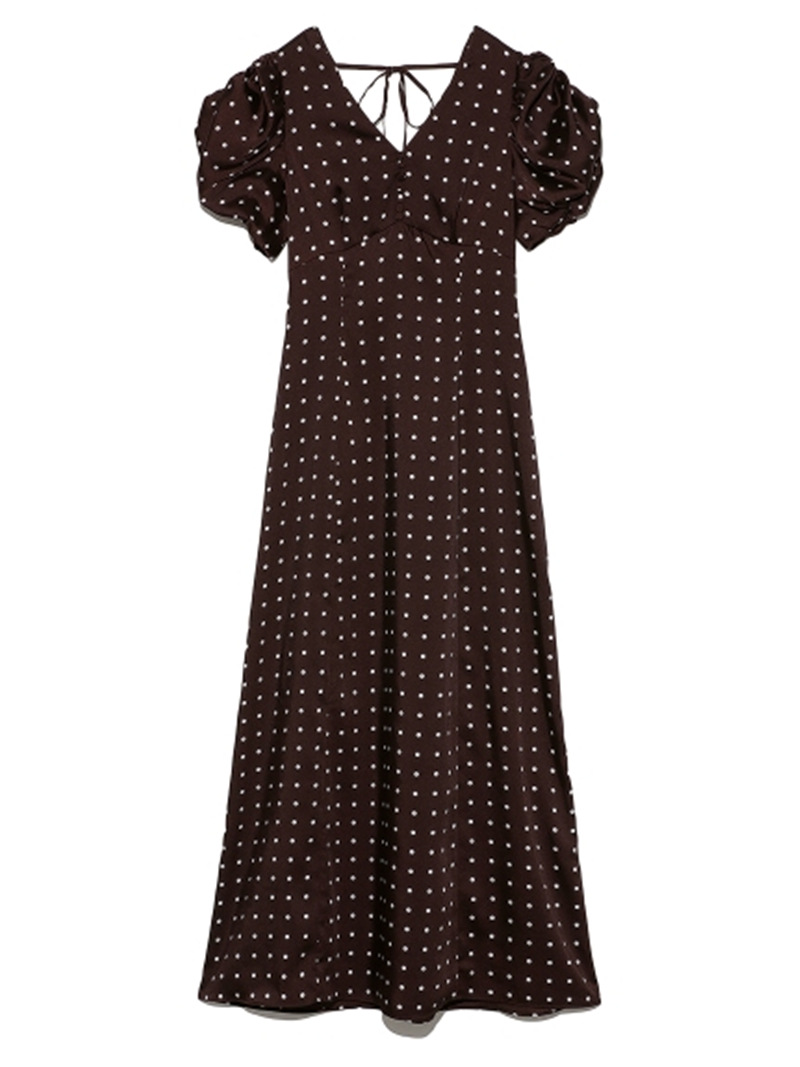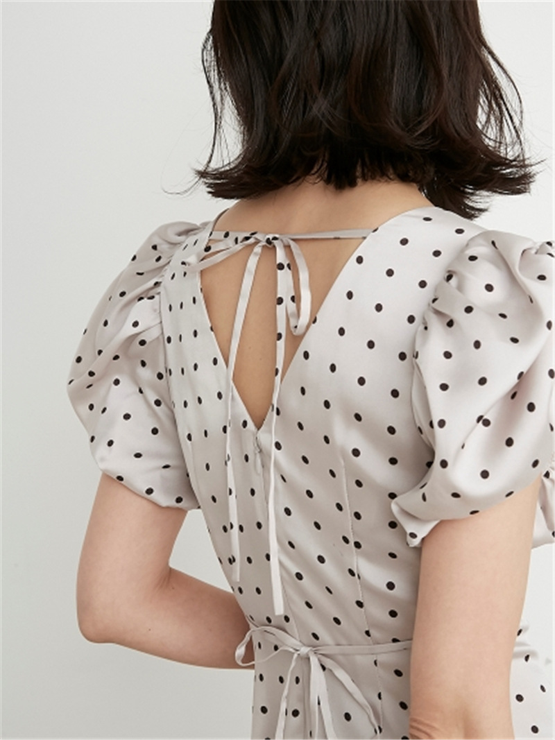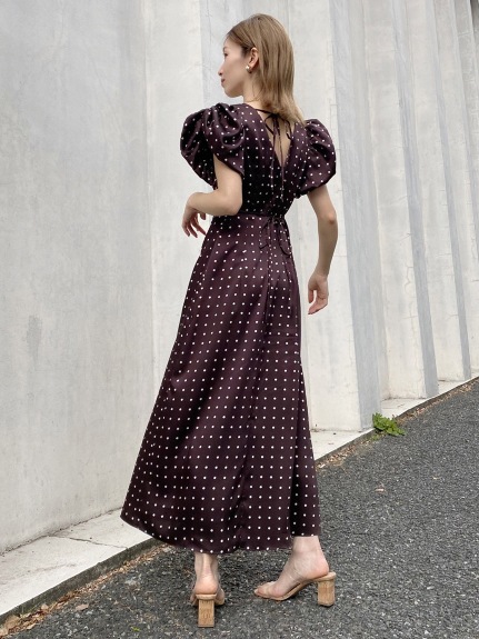 Sustainaギャザーパフスリーブドットワンピース