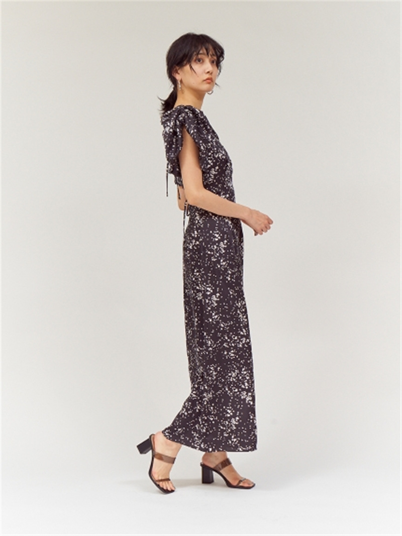 女性らしさを際立たせる美しいシルエットと、心惹かれるプリントが魅力のナローワンピース。リサイクルポリエステル100%を使用した、艶のあるツイル生地を使用しています。他にはない肩線にギャザーを寄せて丸みを出したボリュームスリーブが華やかに、すっきりとしたVネックにはアクセントでくるみボタンを並べました。バスト下には切り替えをあしらい、身体の線を美しく魅せるナローシルエットがスタイルアップを叶えます。