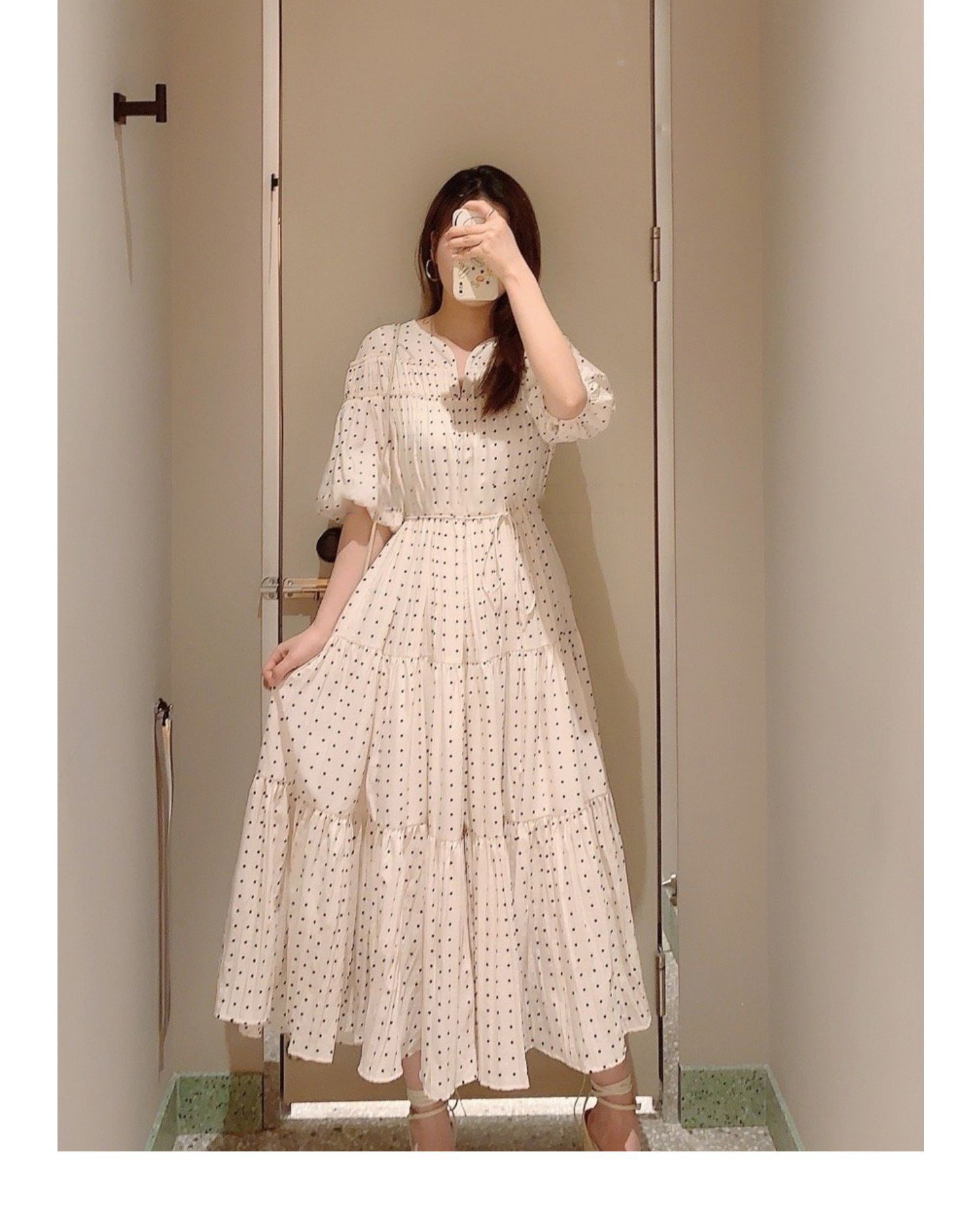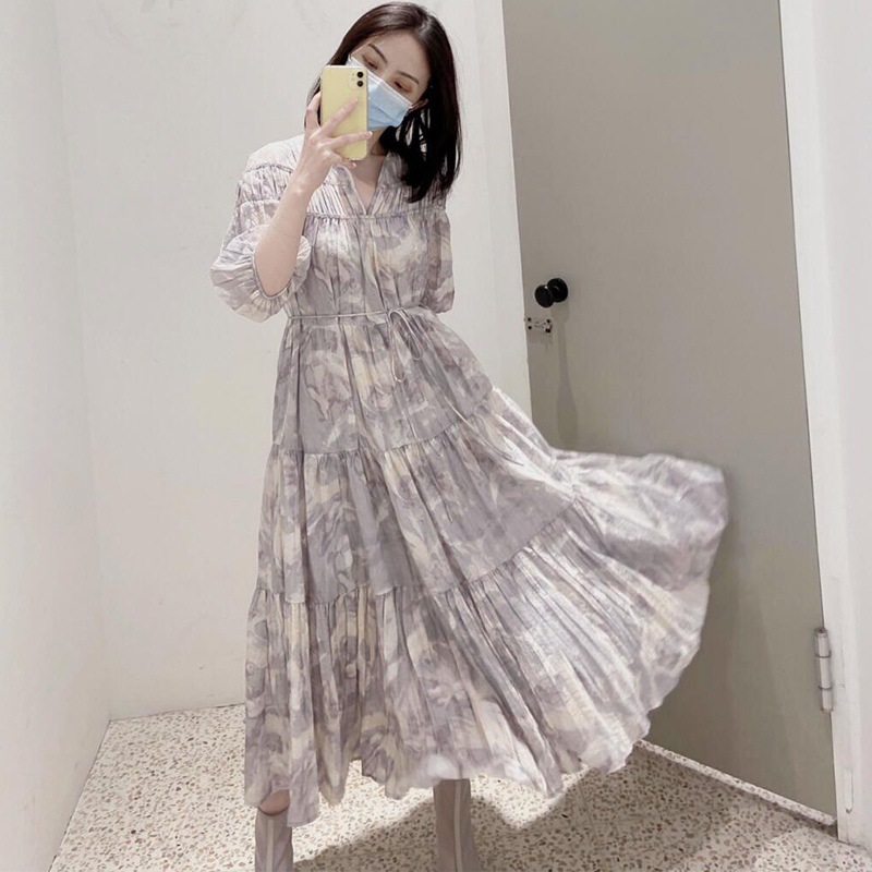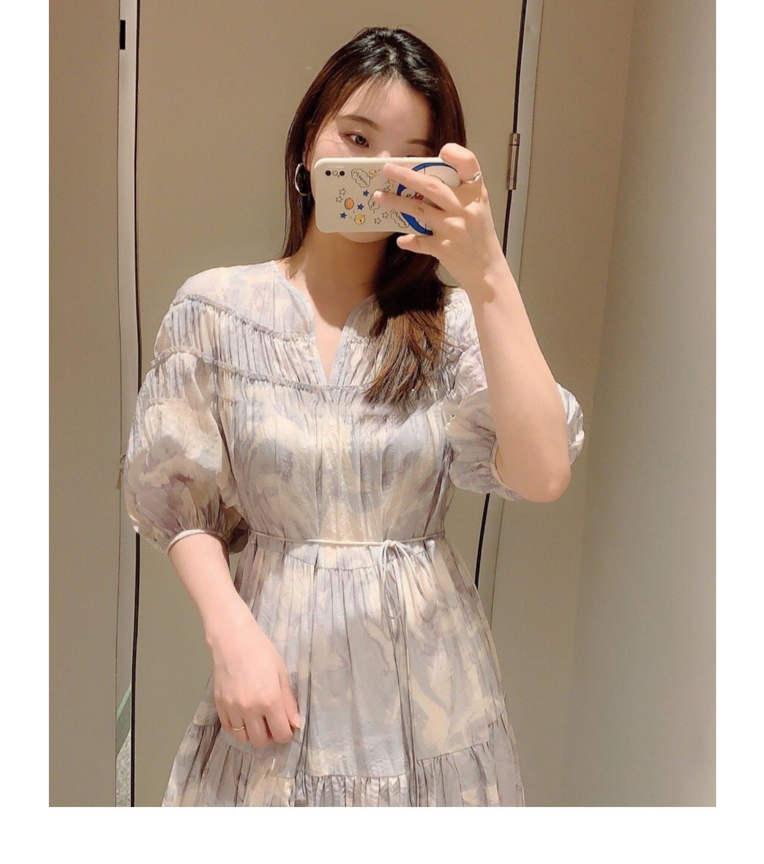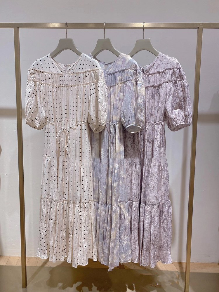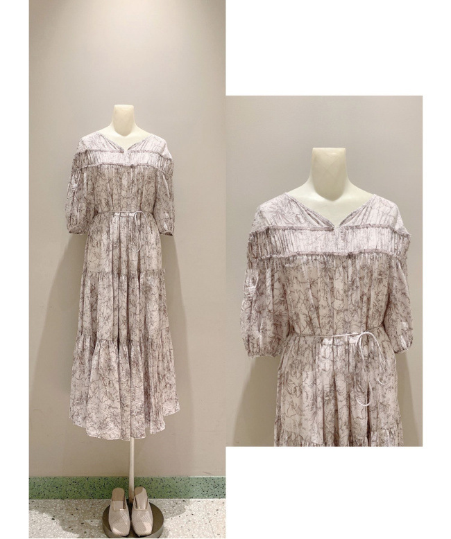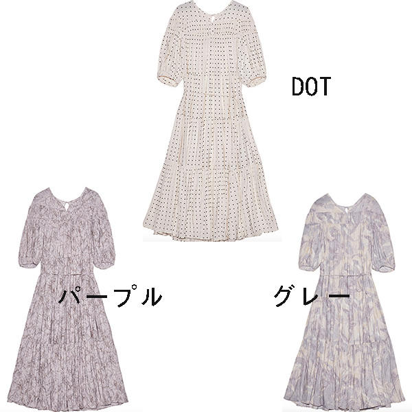 パフスリーブプリントIラインワンピース