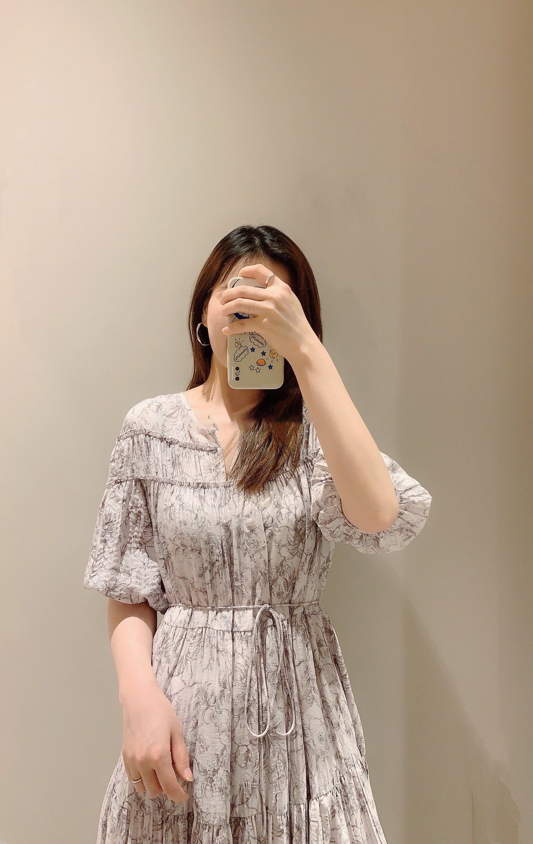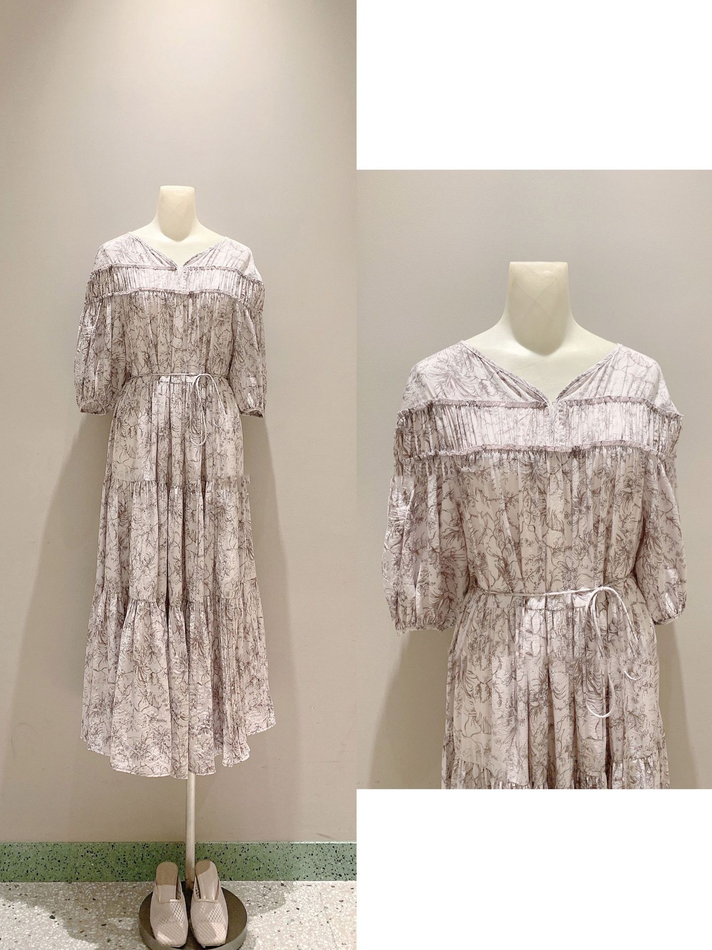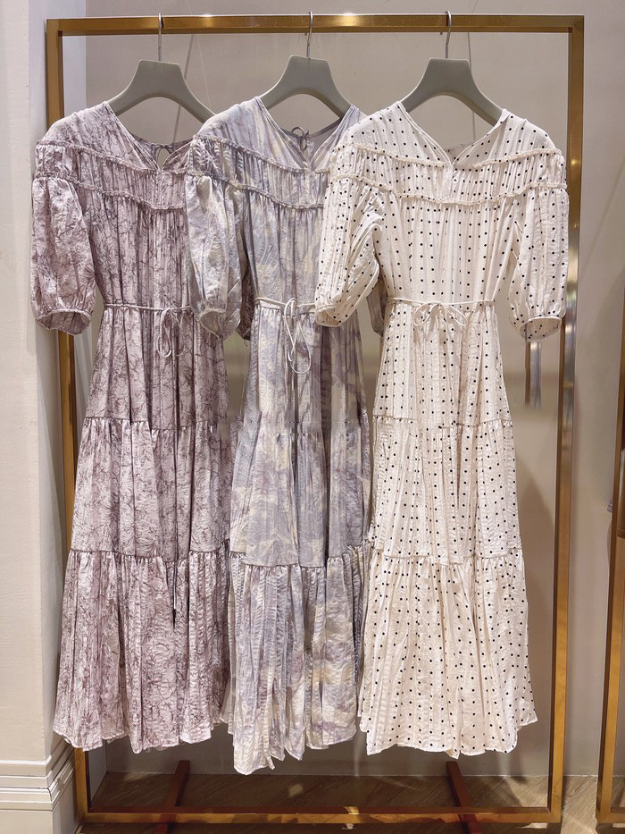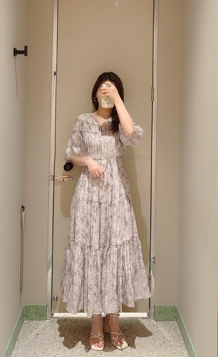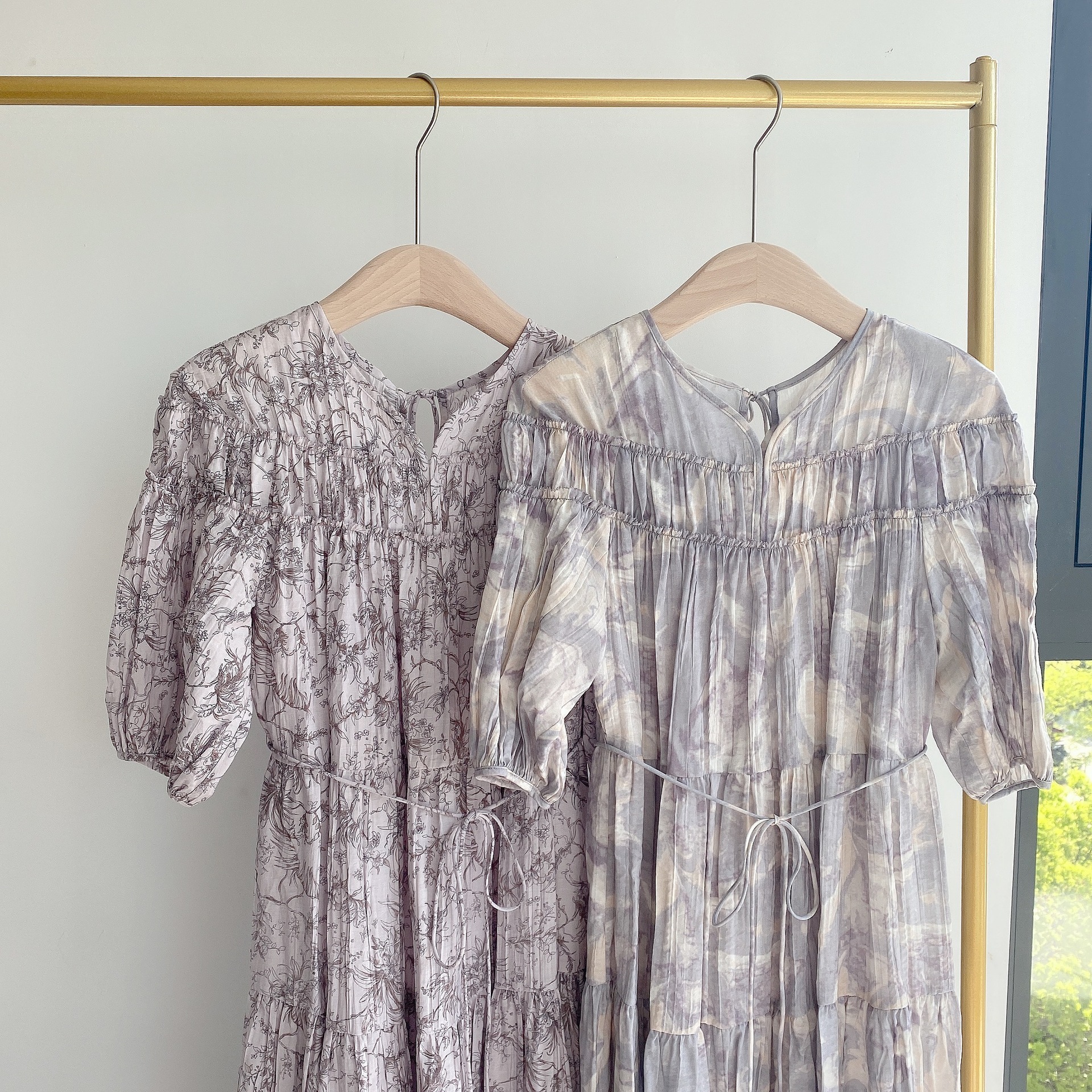 パフスリーブプリントIラインワンピース