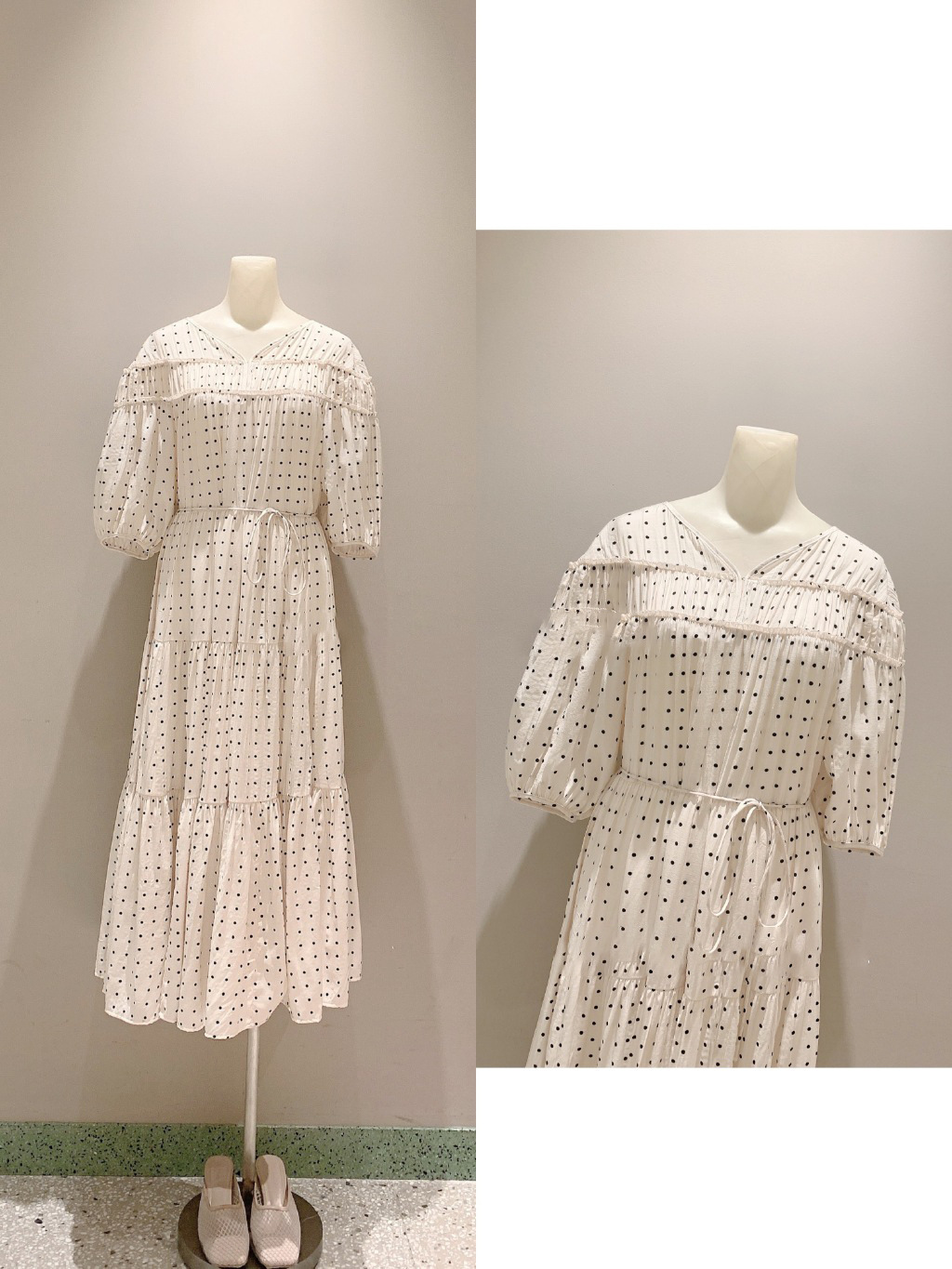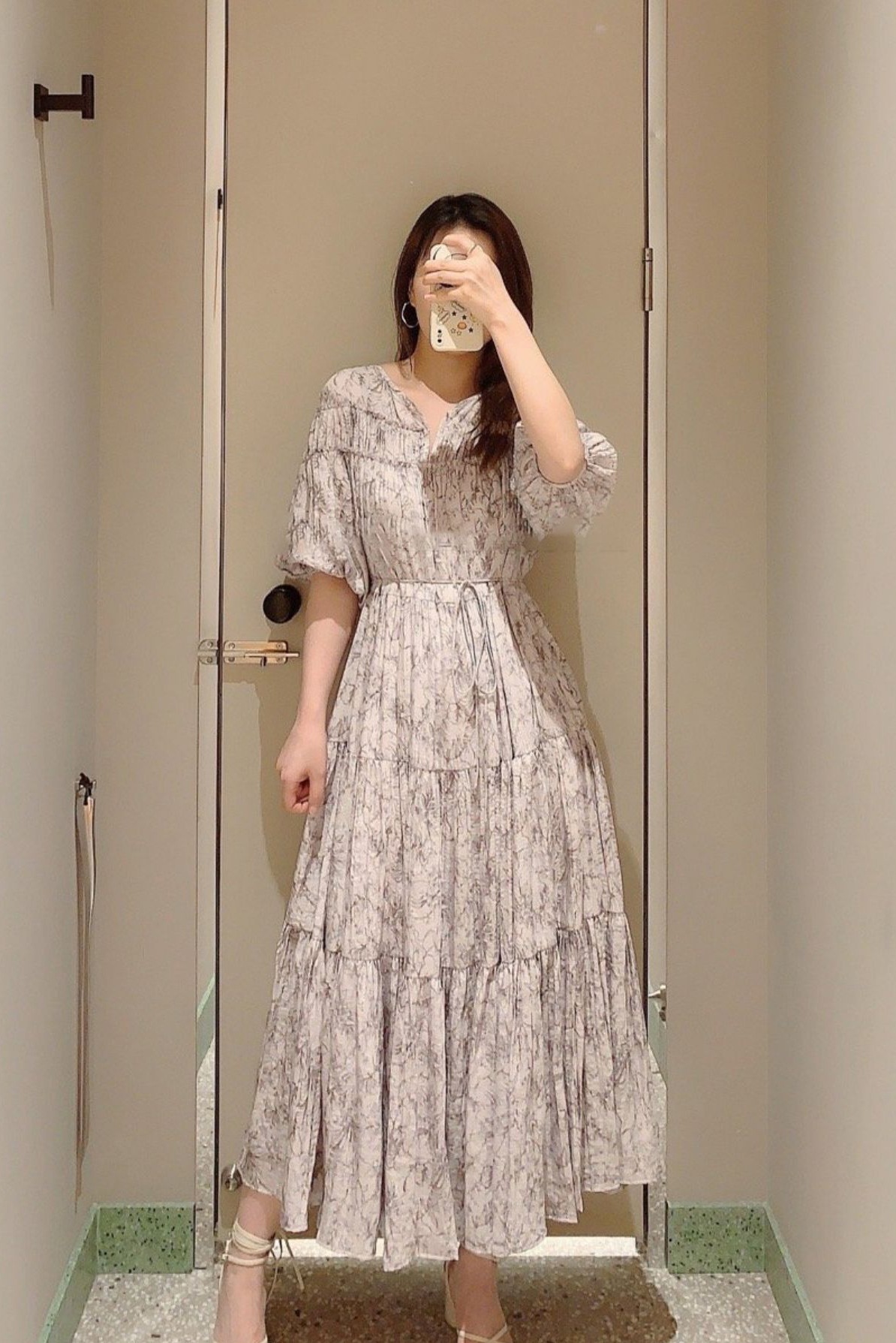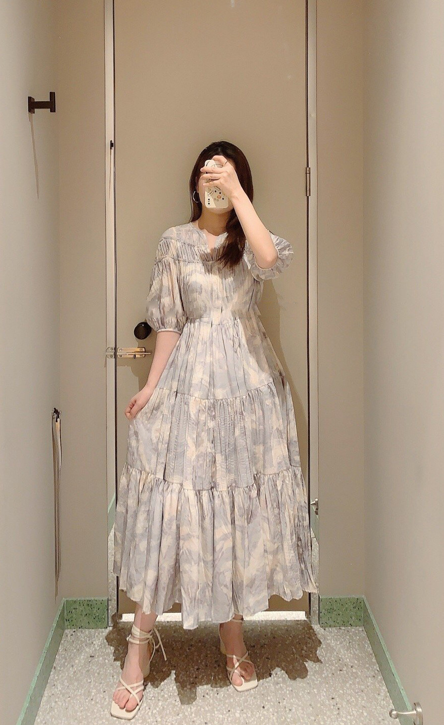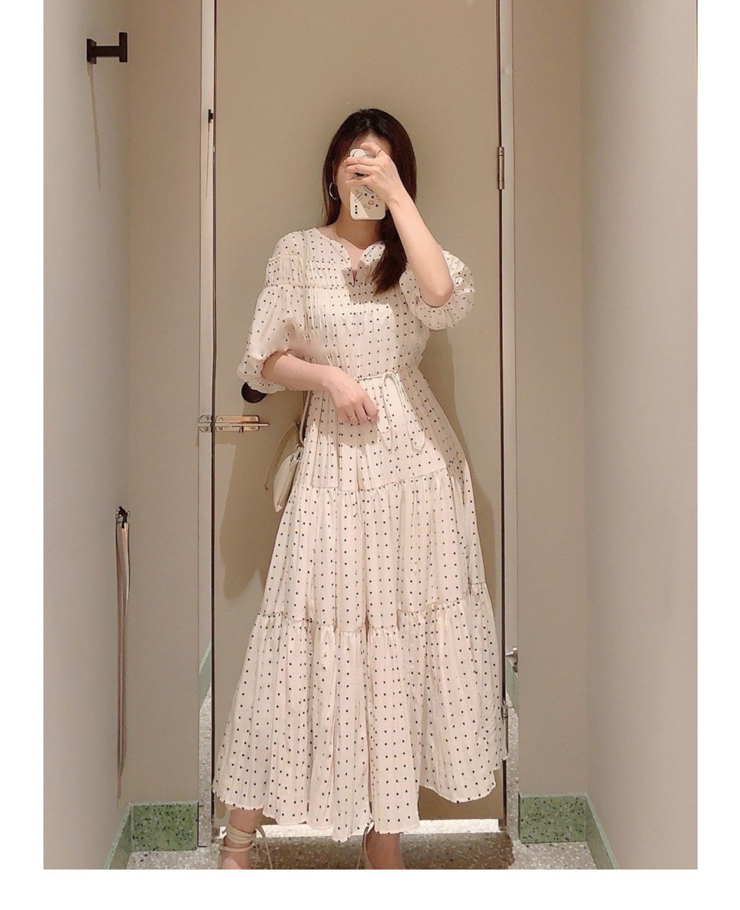 パフスリーブプリントIラインワンピース