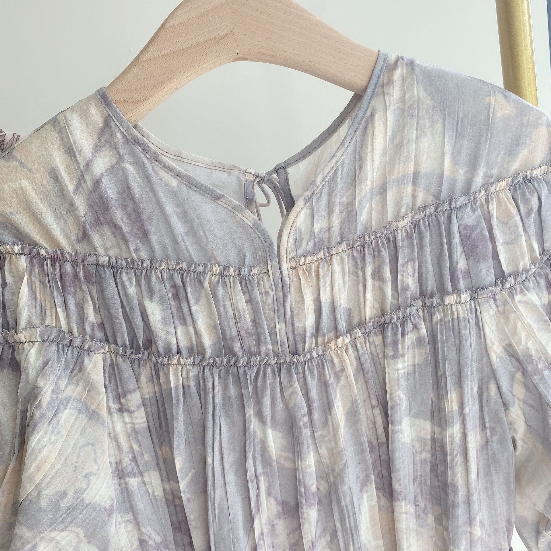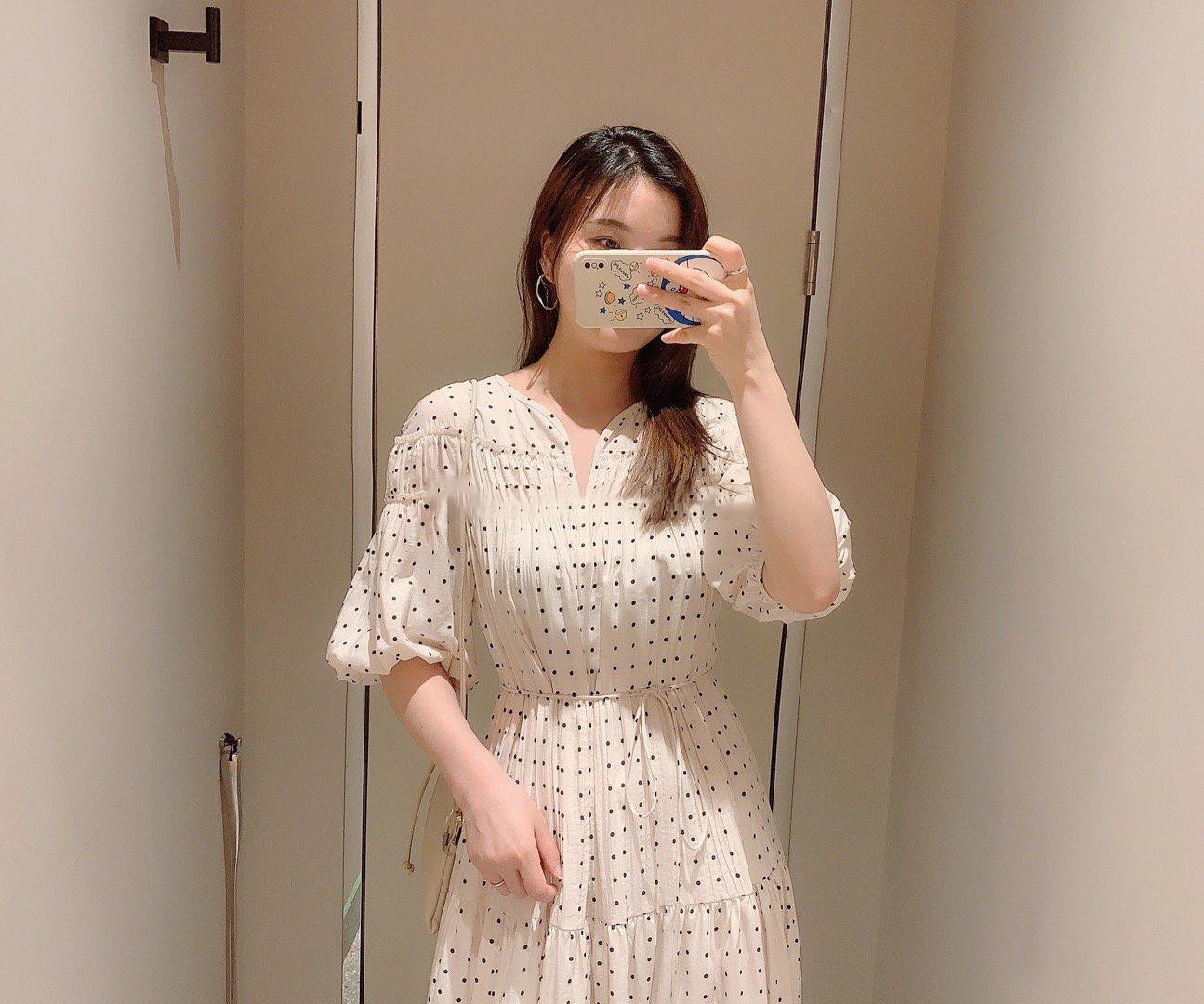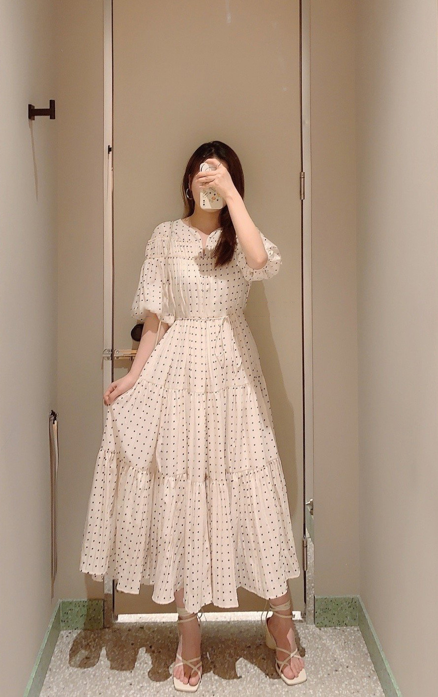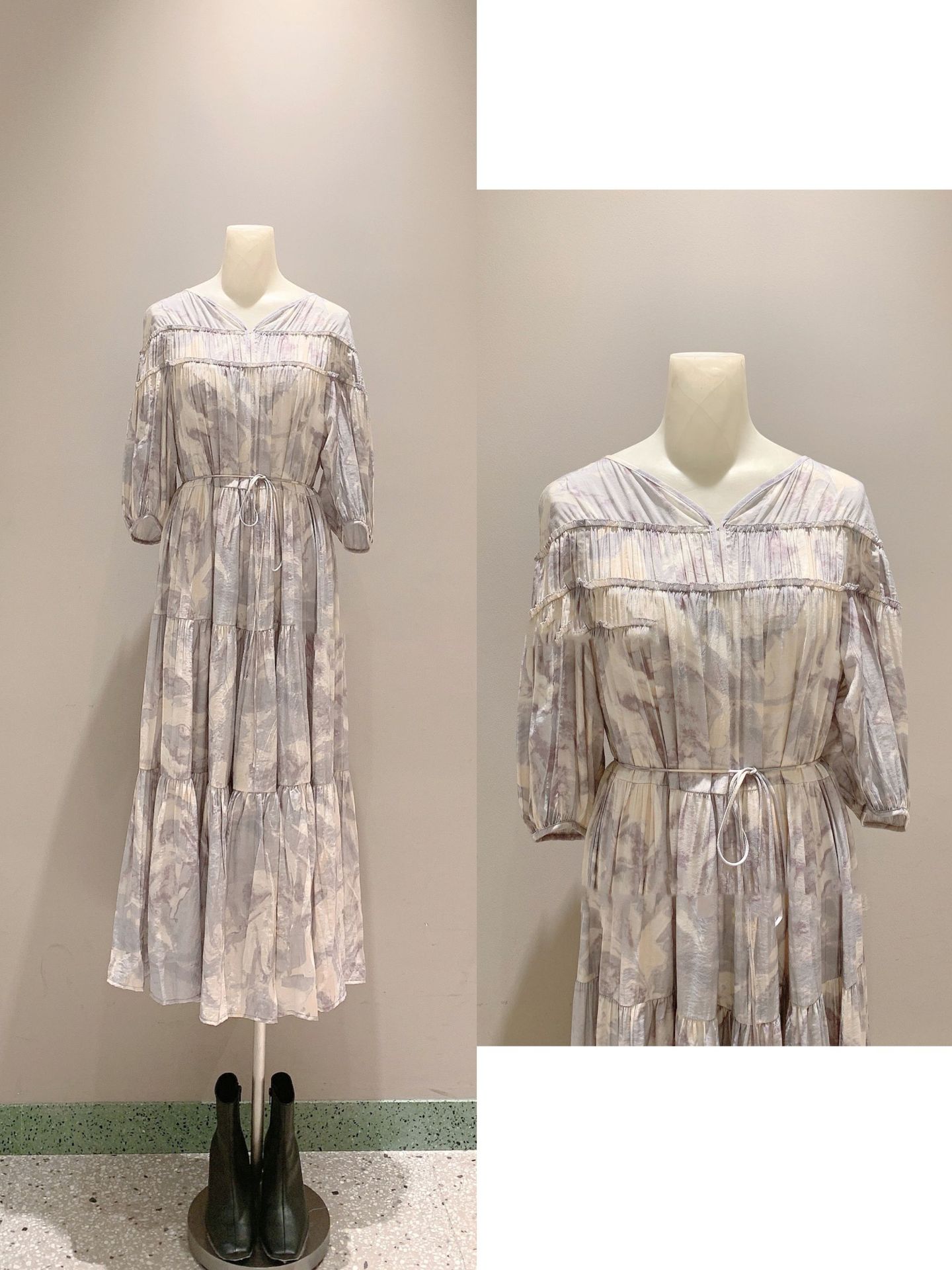 パフスリーブプリントIラインワンピース
