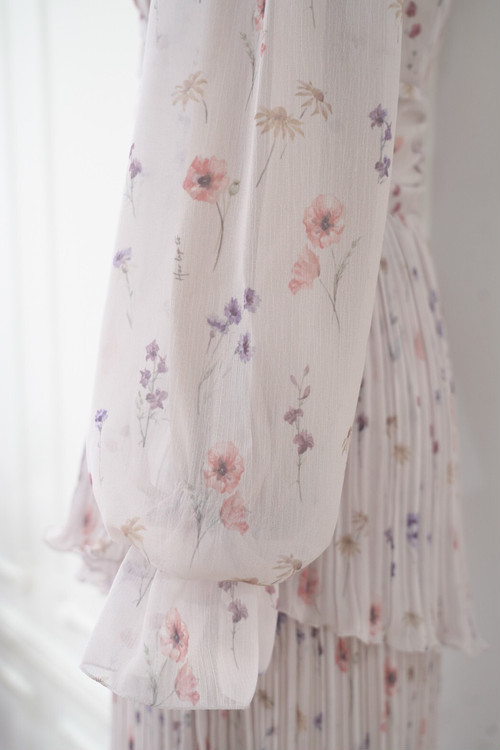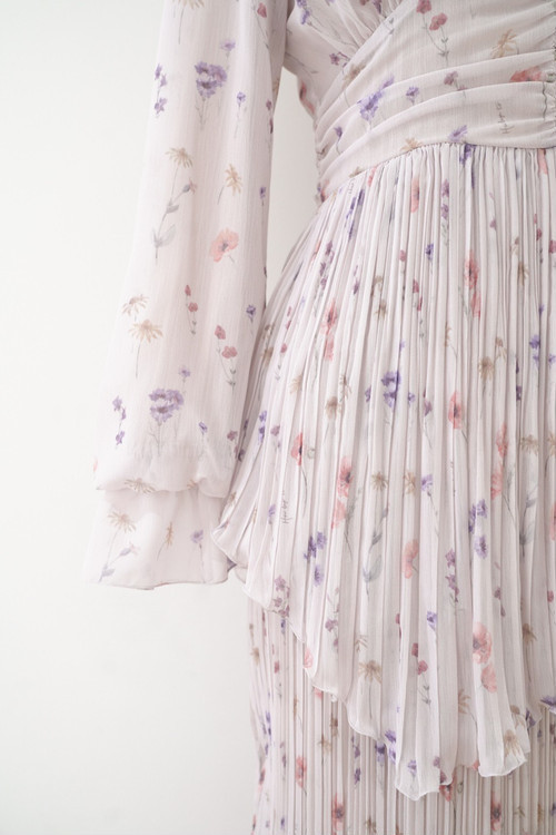 In Bloom Pleated Chiffon Dress