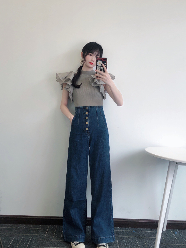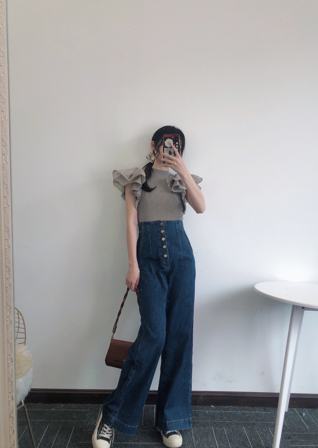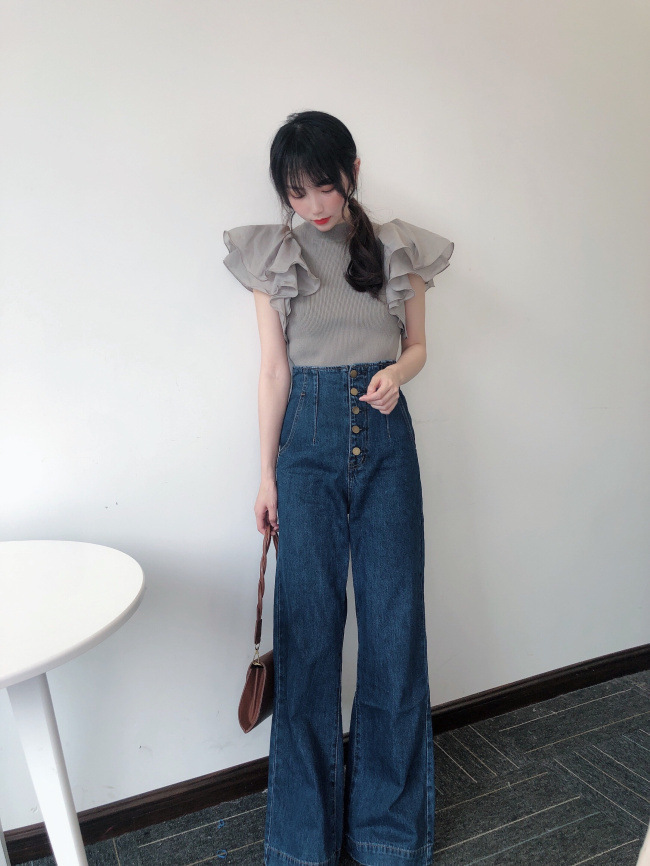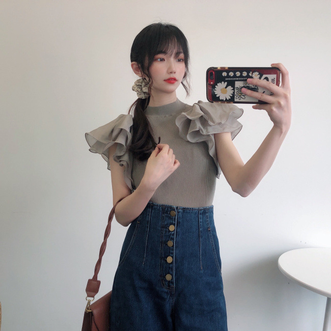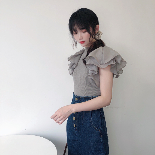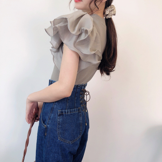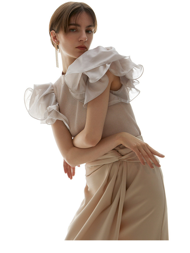 ラッフルスリーブニットプルオーバー
