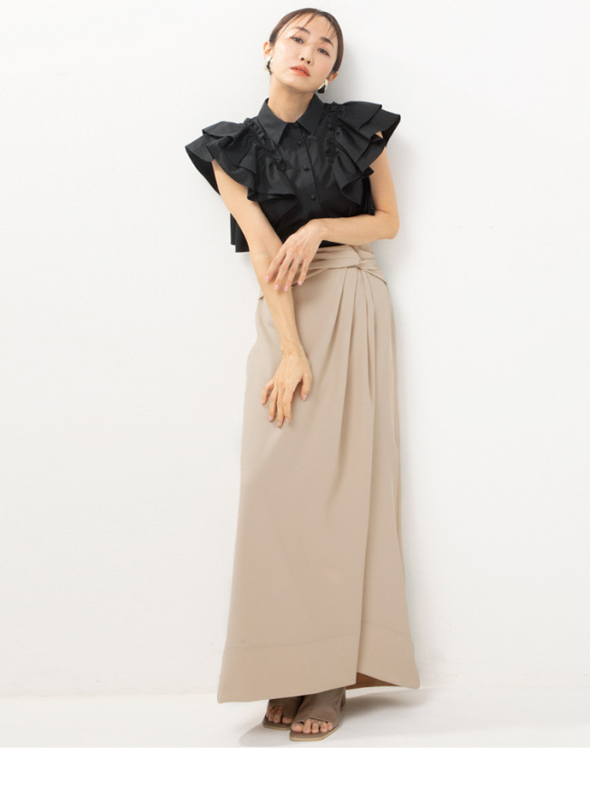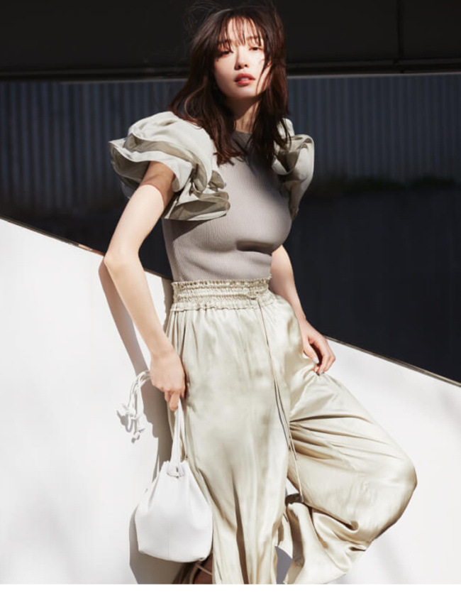 気になる二の腕を華奢見せしながらシルエットを美しく表現し、ボトムス次第で日常から華やかなオケージョンにもモードな装いを演出します。