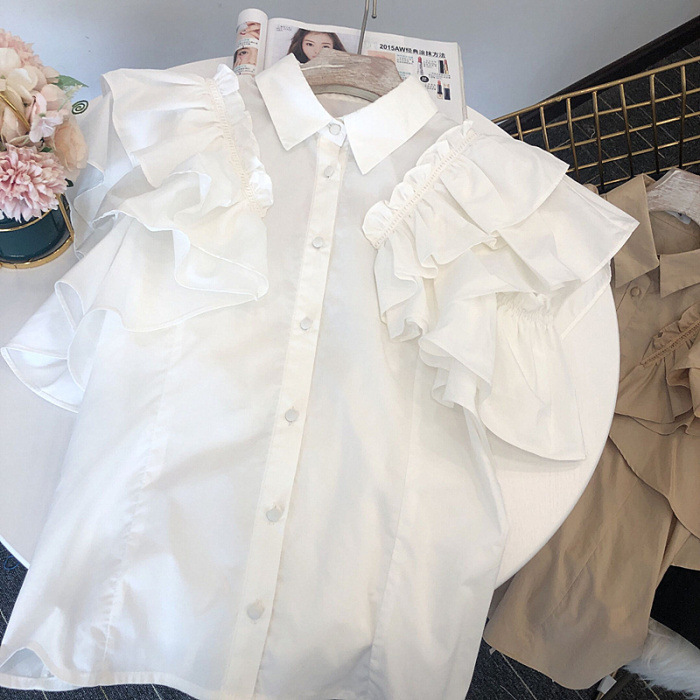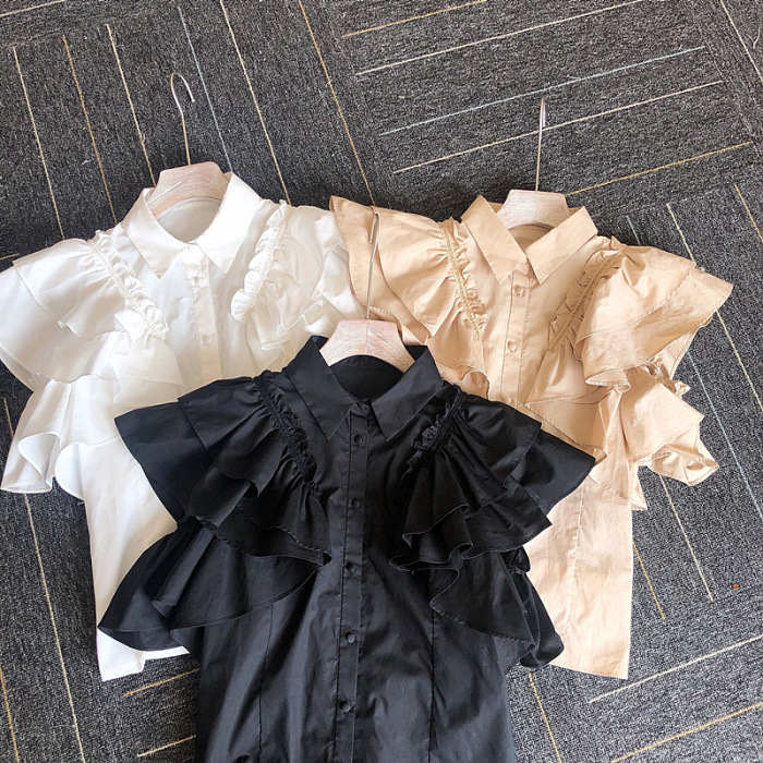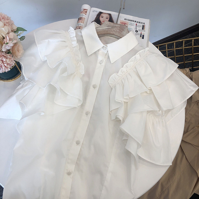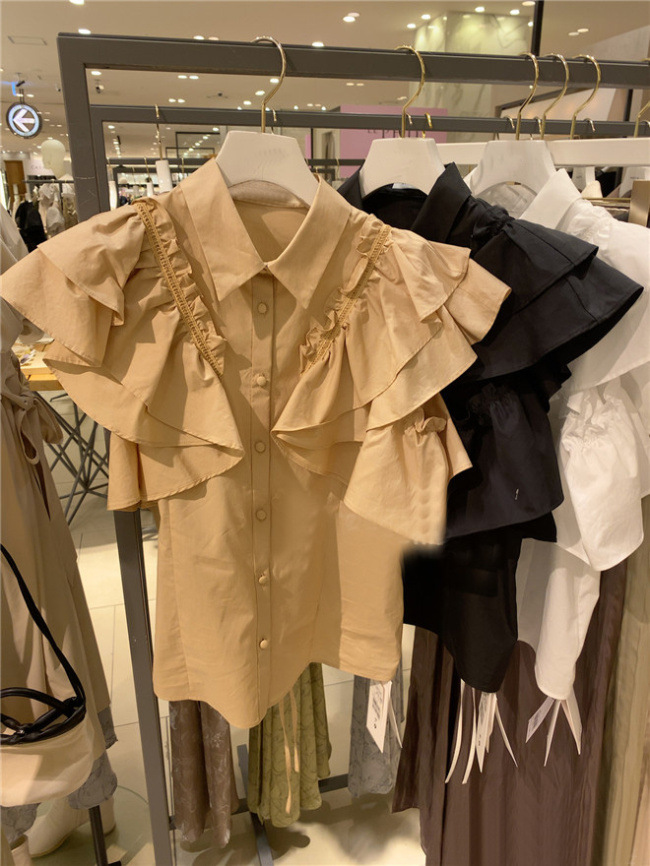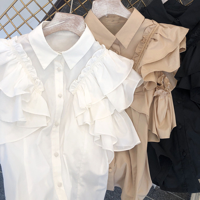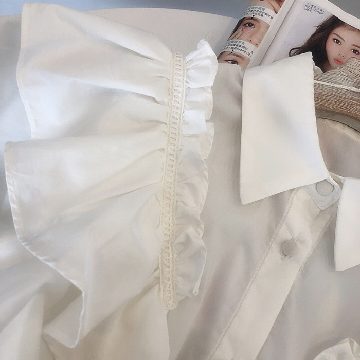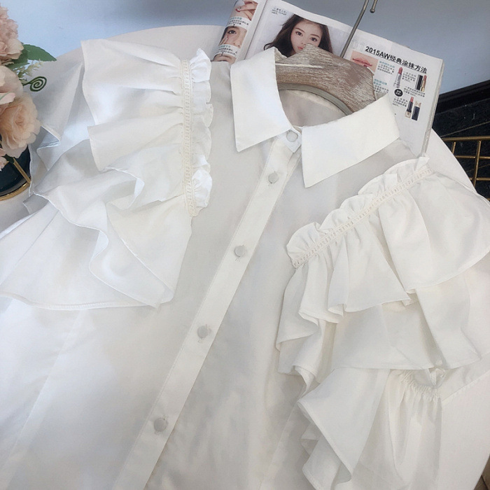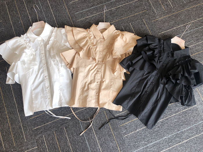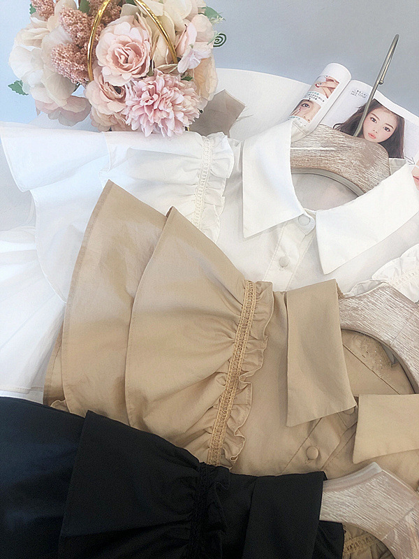 ラッフルフリル襟付きブラウス