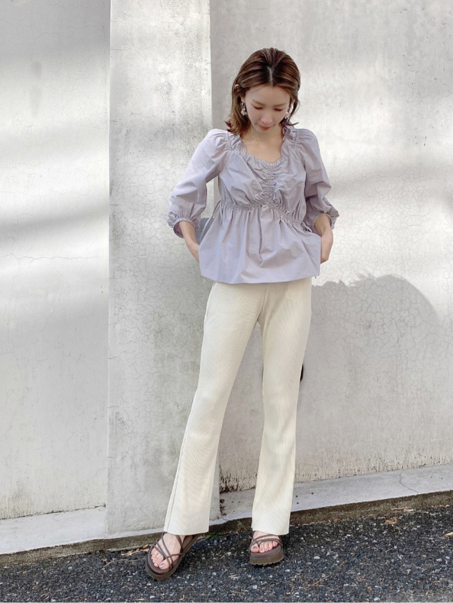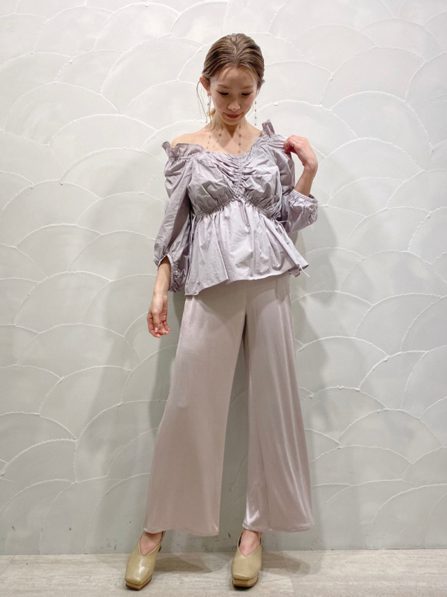 SNIDELで人気のオフショルトップス。今シーズンは、フロントのアシンメトリーデザインでより洒落た印象へとアップデートしました。繊細なリボンをトッピングしたボリュームスリーブも、鮮度を高めるのに一役。襟ぐりにゴムが入っているため落ちにくく、肩を隠すブラウスとしても着られます。デニムでカジュアルに着るほか、ナロースカートを合わせてとことんフェミニンにスタイリングしても◎。