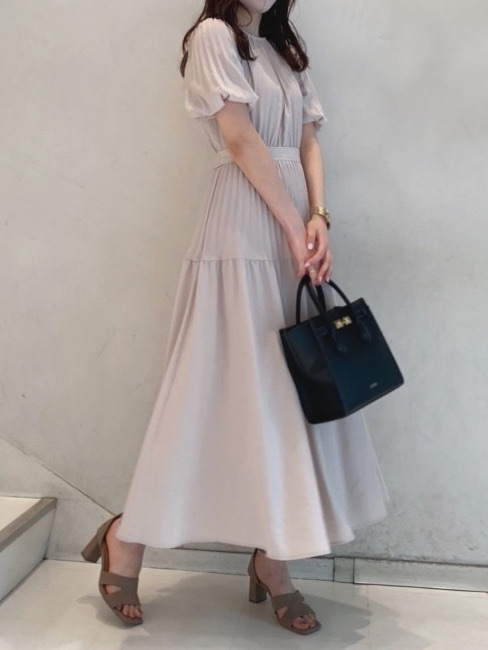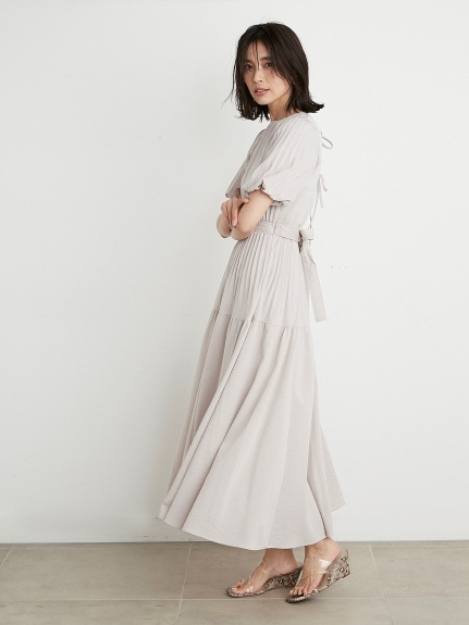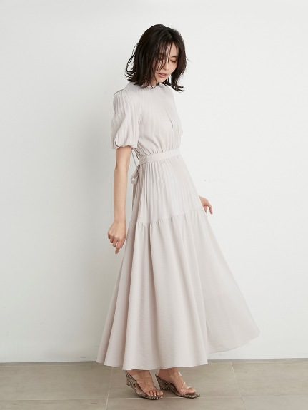 襟や袖、ウエスト下に贅沢なプリーツをあしらった、エレガントなロングワンピース。ノーブルな印象の上品さを持ちながら、大胆に開けたバックシャンデザインで色香ある個性をプラスしました。女性らしいパフスリーブやメリハリを効かせたウエスト、美しいフレアラインなど、幅広い方に着ていただける万能さを叶えつつ、「SNIDEL」らしいこだわりのディティールをそろえたスペシャルメイド。大胆な後ろ開きながら、下着の見えないラインに設定してあり、またスカートにも裏地が付いているので、安心してご着用いただけます。