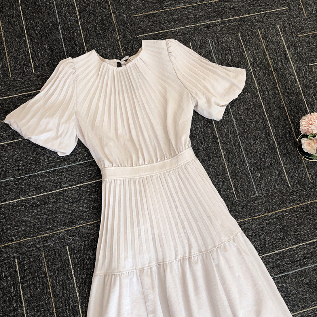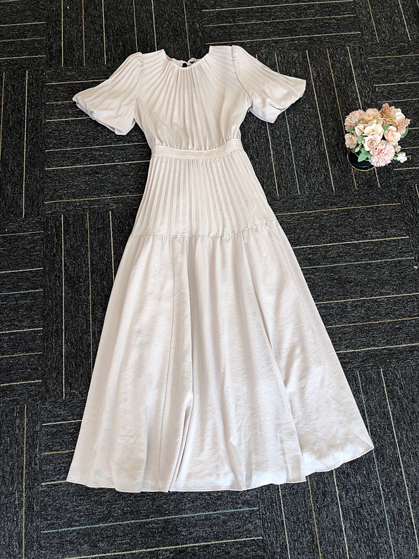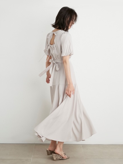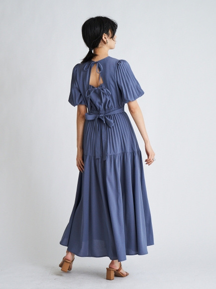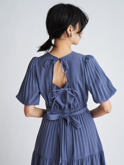 【ギャップあるバックシャンデザインが魅力の美しいプリーツドレス】