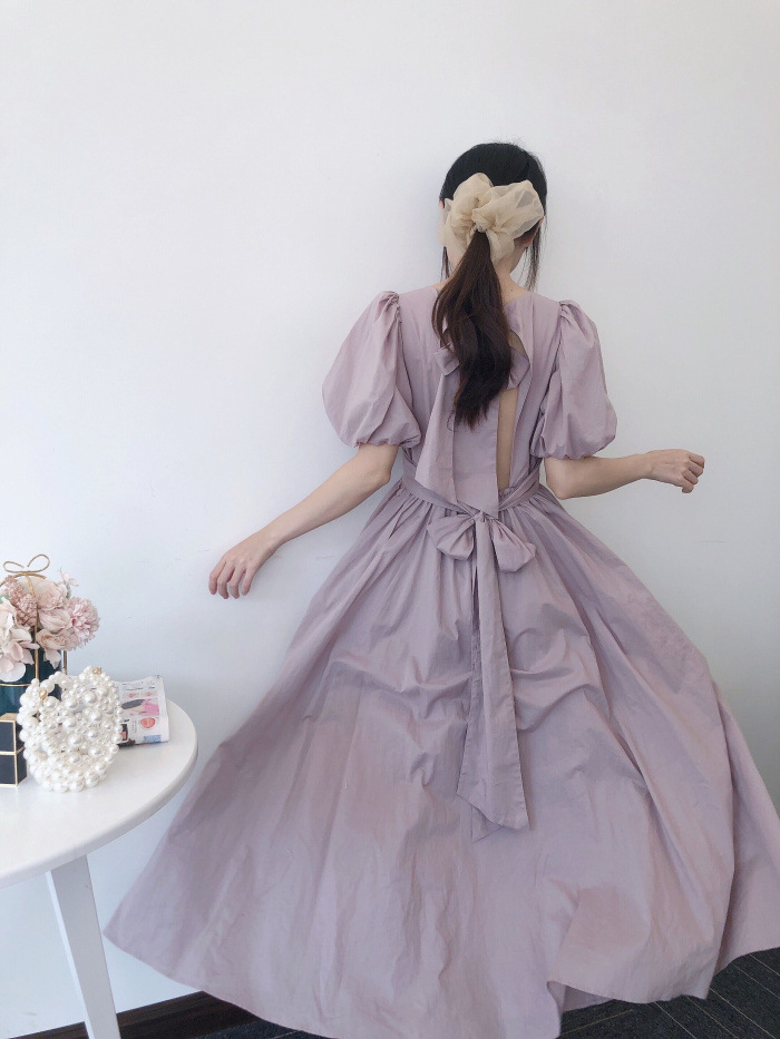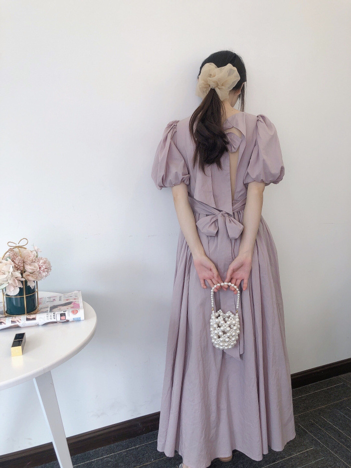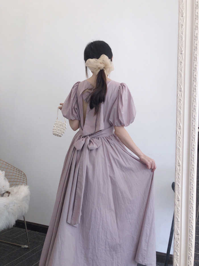【スウィートなバックシャンデザインで魅せるオーガニックコットンワンピース】