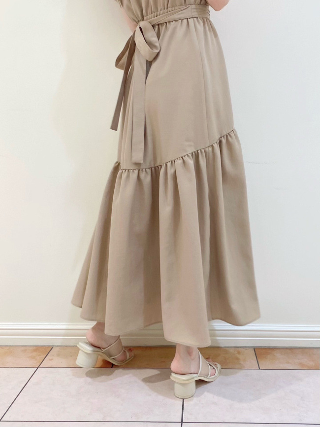 ウエスト部分は程よいフィット感を持たせることでメリハリのあるシルエットに。ボリューミーなワンピースもバランスが重たくなりすぎないよう配慮されたワンピースです。