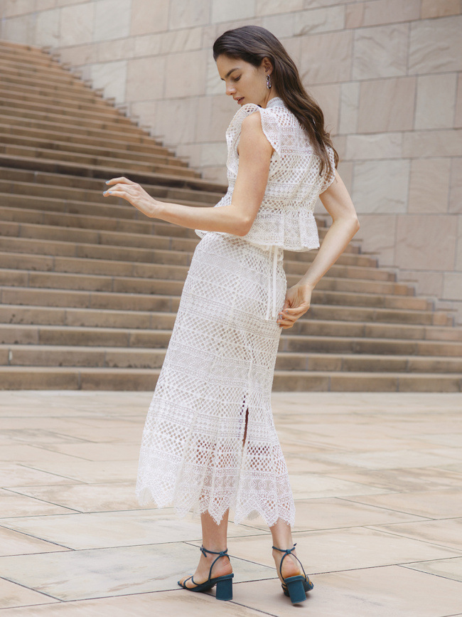 レースをボーダー状に組み合わせた華やかなコードレースブラウス。スタンドカラーのネックラインには、ボウタイリボンをあしらいました。前後着用可能なので、コーディネートに合わせ2WAYでお楽しみいただけます。同シリーズのスカート(品番SWFS212038)とのセットアップでオケージョンシーンに、デニムでカジュアルダウンしてデイリーにと、幅広いスタイリング力もポイントです。アイボリー、ベビーピンク、ミントの軽やかな3色展開です。