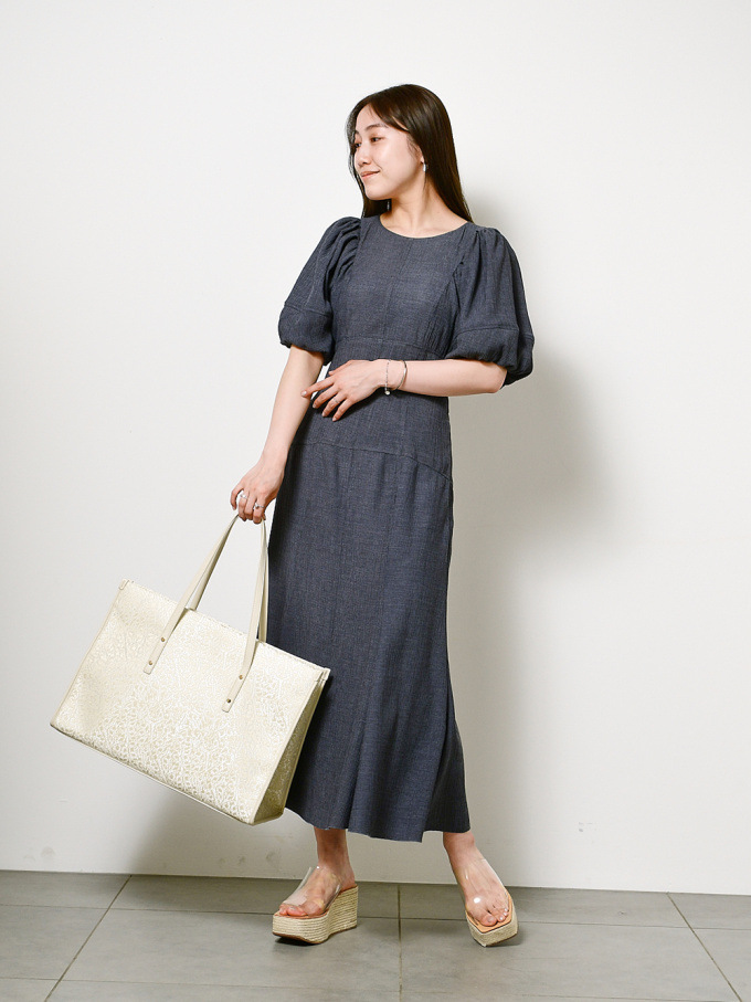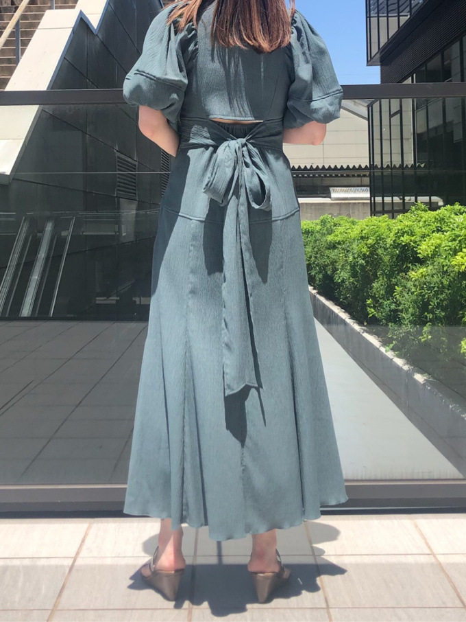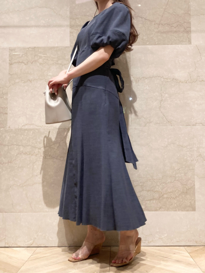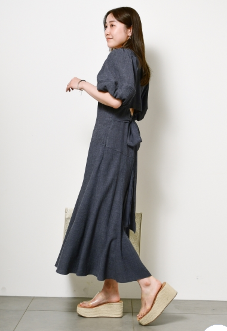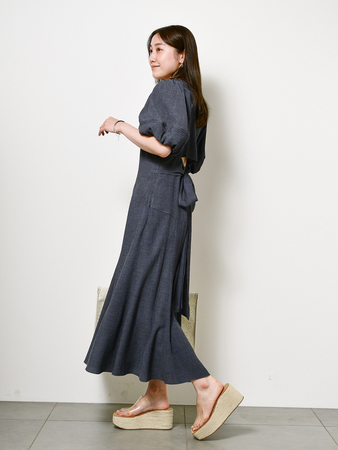 バスト下から太ももまでの程良いフィットラインと裾にかけたマーメイドフレアで、スタイルアップが期待できるタイトフィットフレアワンピース。バルーンスリーブで愛らしいボリュームを持たせつつ、ネックラインをすっきりとさせることで大人なバランスを意識しました。計算された切り替えで縦ラインを強調し、女性らしさ香る美しいシルエットを実現。腰のカッティングからは肌がのぞき、フロントと色香あるギャップも魅力です。