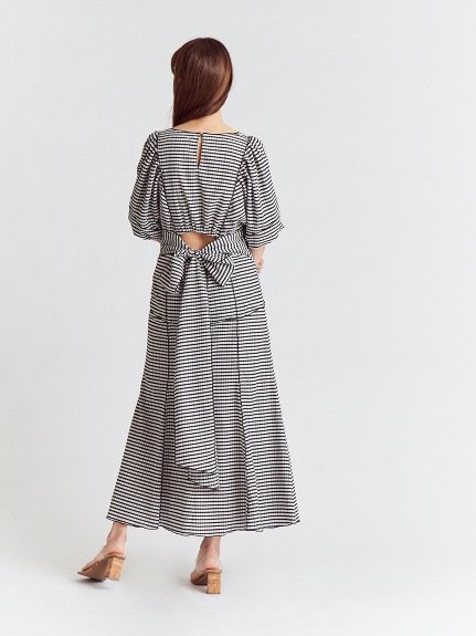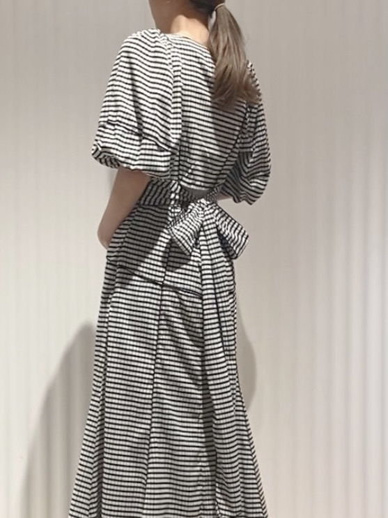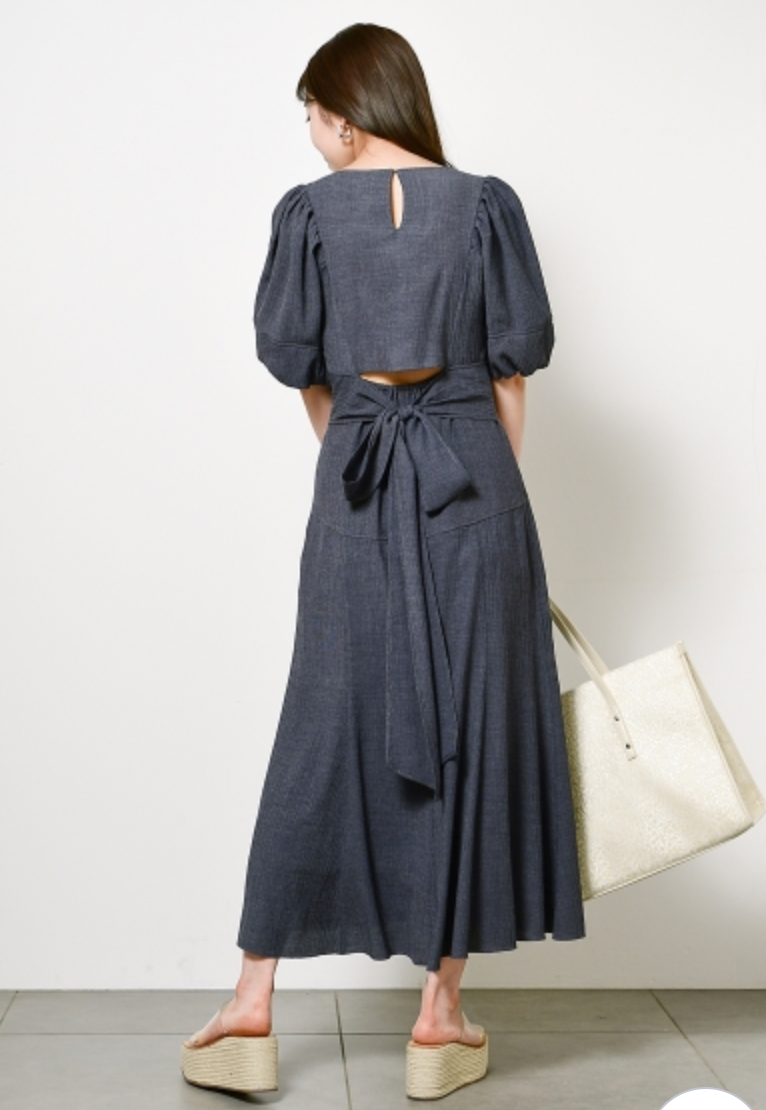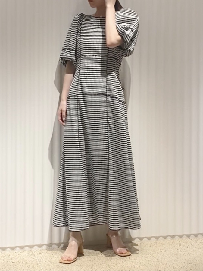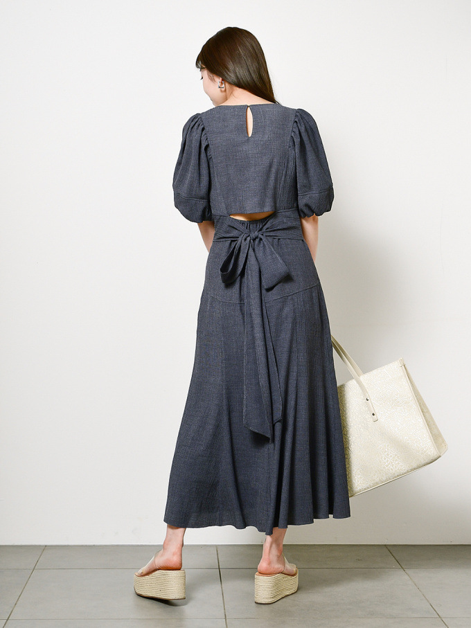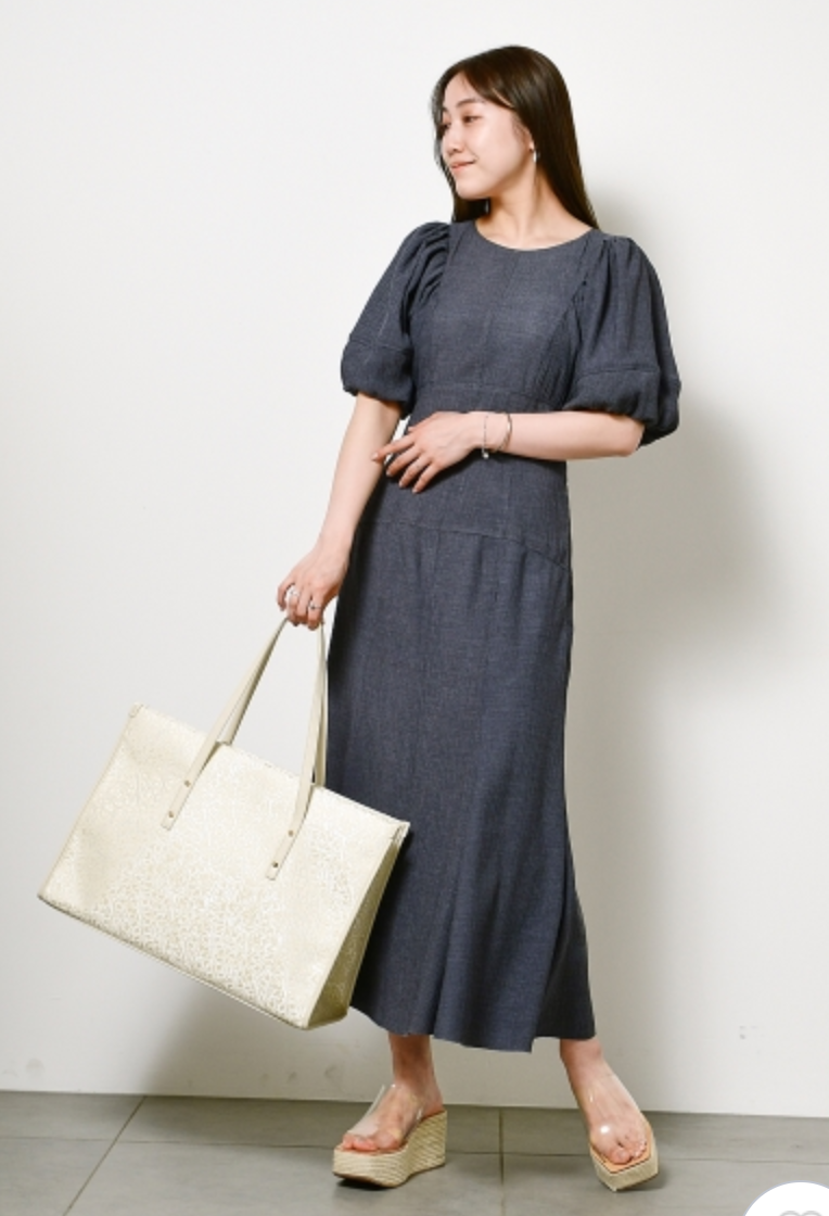 バスト下から太ももまでの程良いフィットラインと裾にかけたマーメイドフレアで、スタイルアップが期待できるタイトフィットフレアワンピース。バルーンスリーブで愛らしいボリュームを持たせつつ、ネックラインをすっきりとさせることで大人なバランスを意識しました。計算された切り替えで縦ラインを強調し、女性らしさ香る美しいシルエットを実現。腰のカッティングからは肌がのぞき、フロントと色香あるギャップも魅力です。