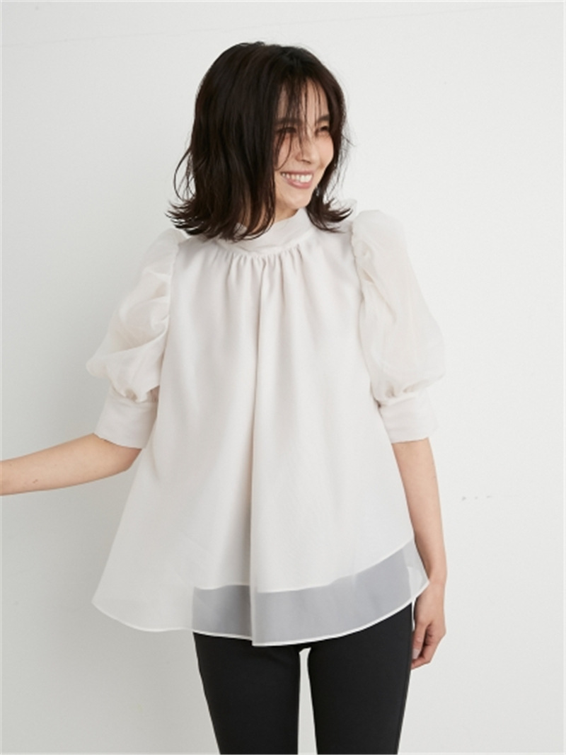 ハーフスリーブオーガンジーブラウス