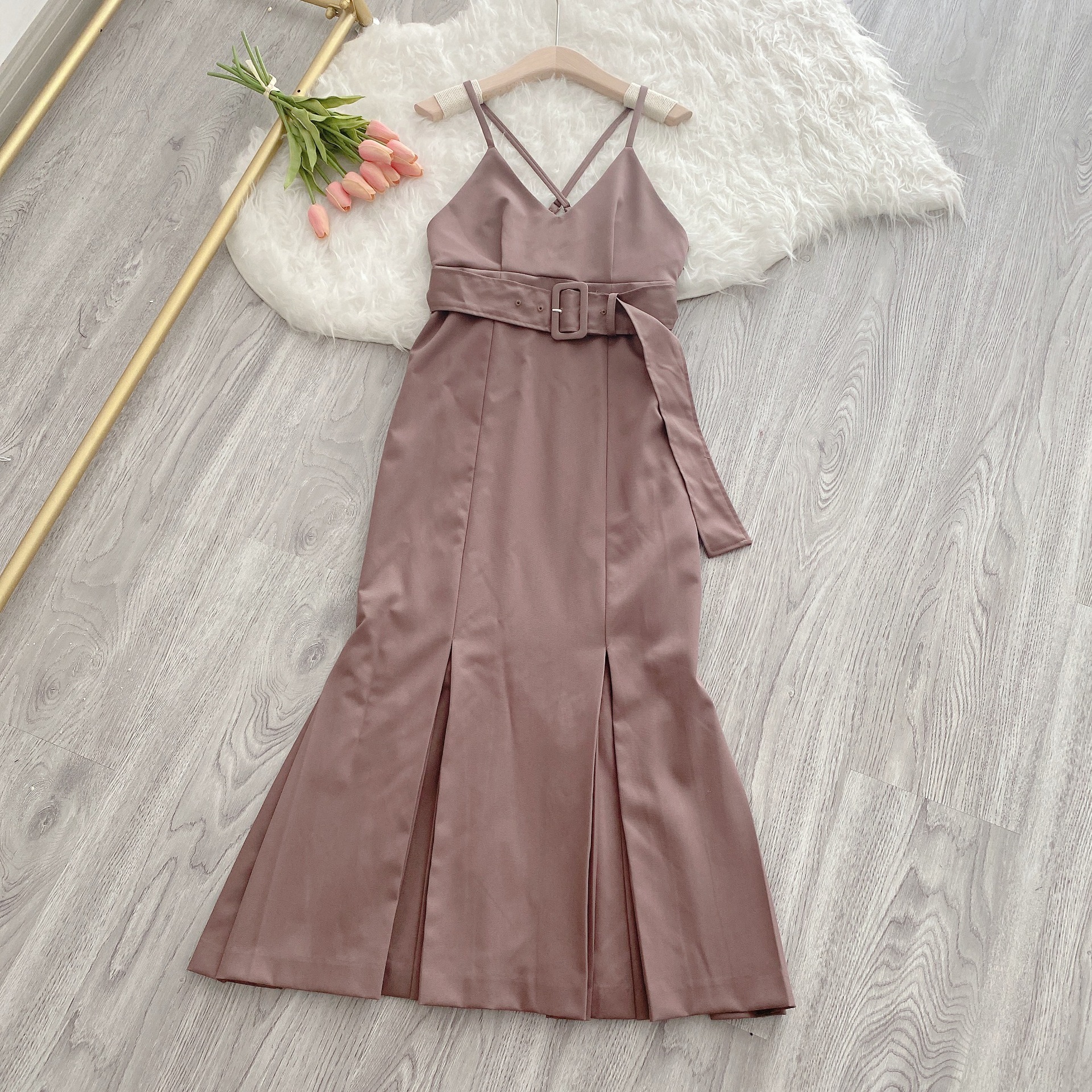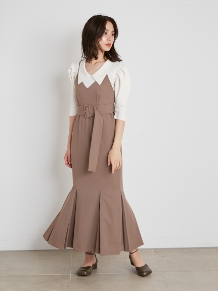 【タイトとフレアのコントラストで魅せるマーメイドキャミソールワンピース】