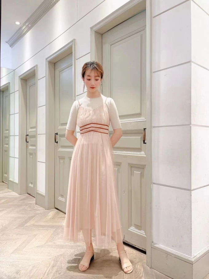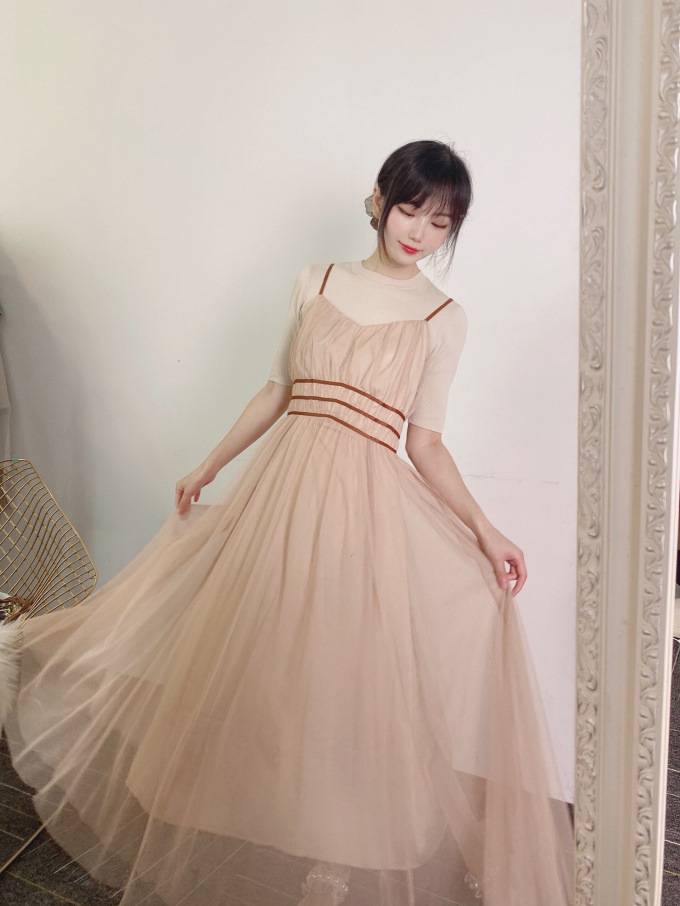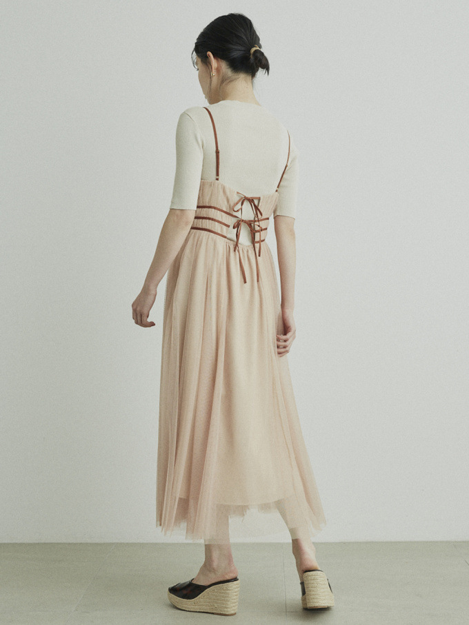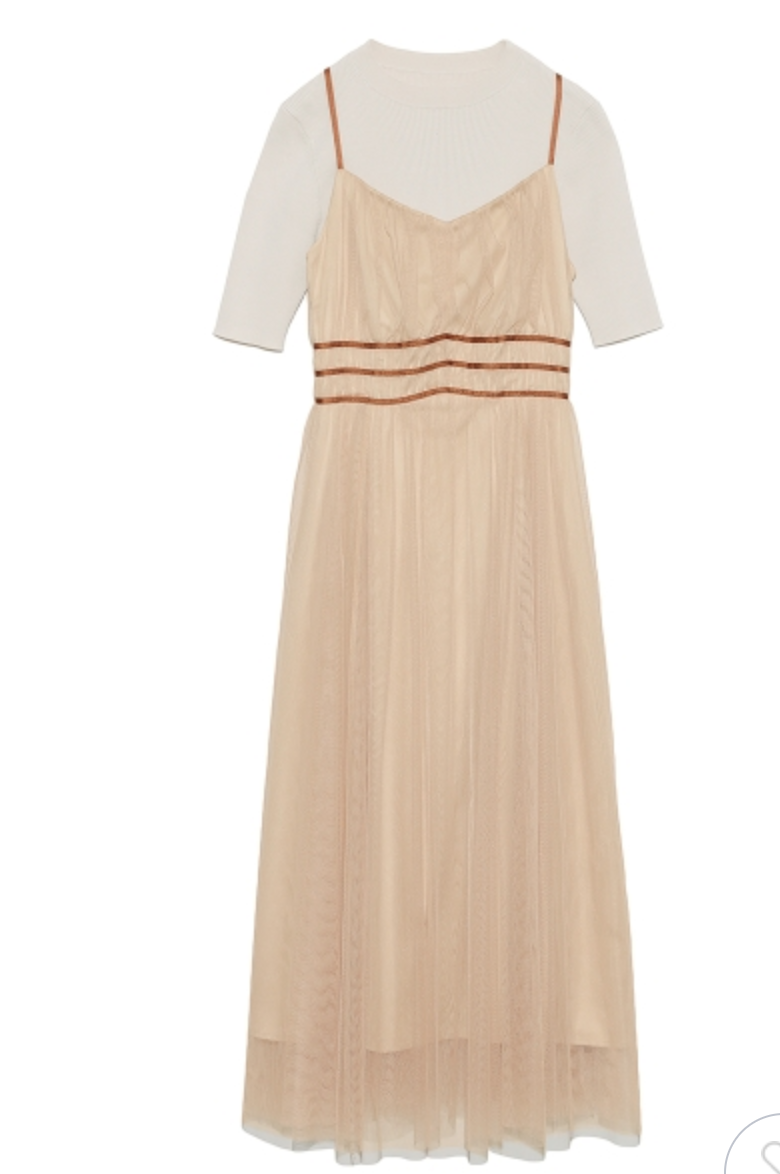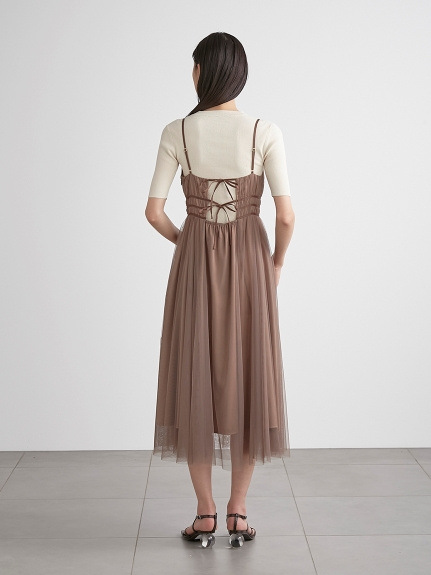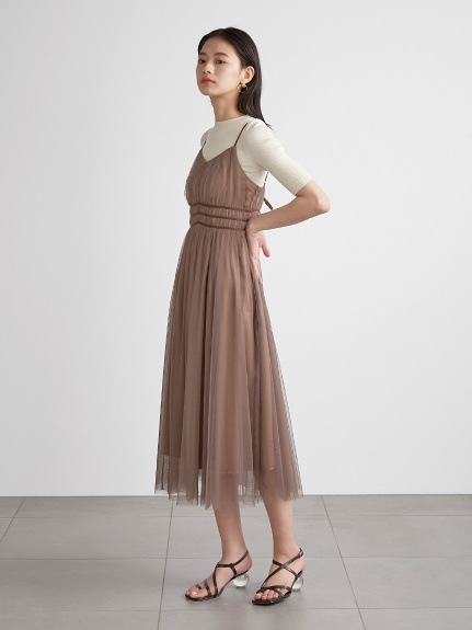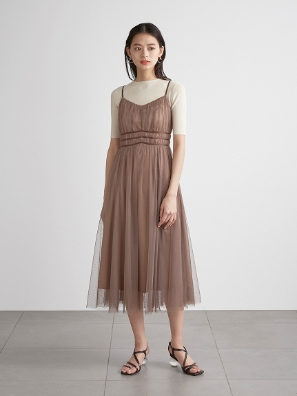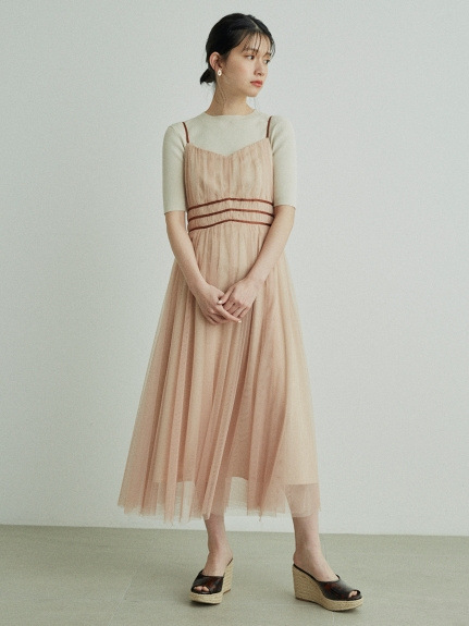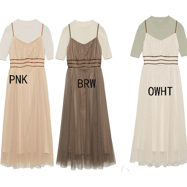 【ひと手間かかった重ね着が即完成するチュールキャミワンピースセット】