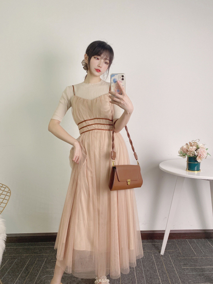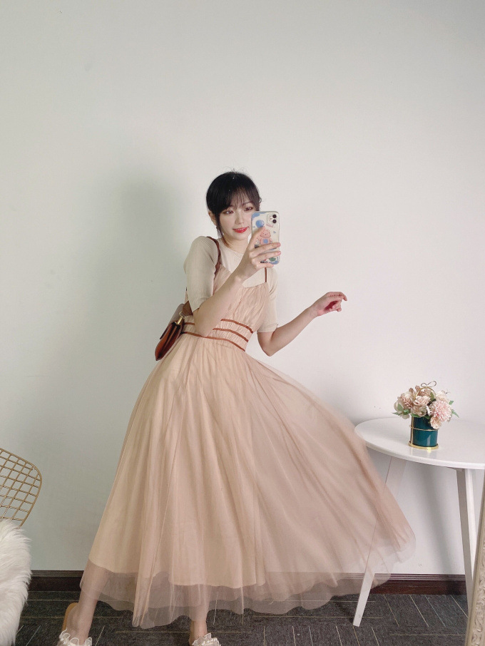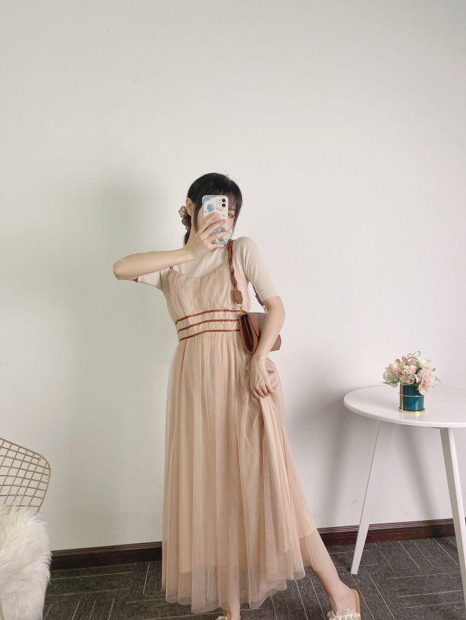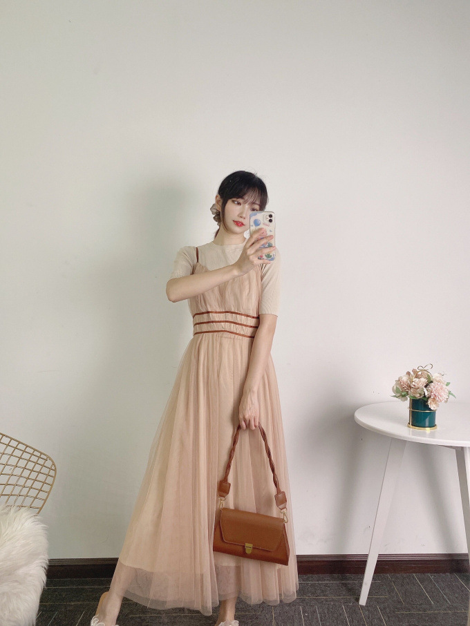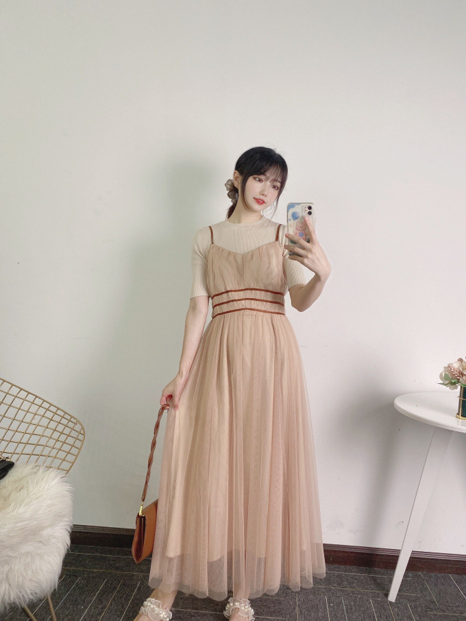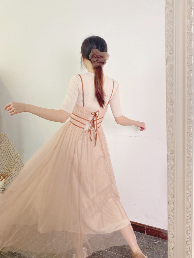 【ひと手間かかった重ね着が即完成するチュールキャミワンピースセット】