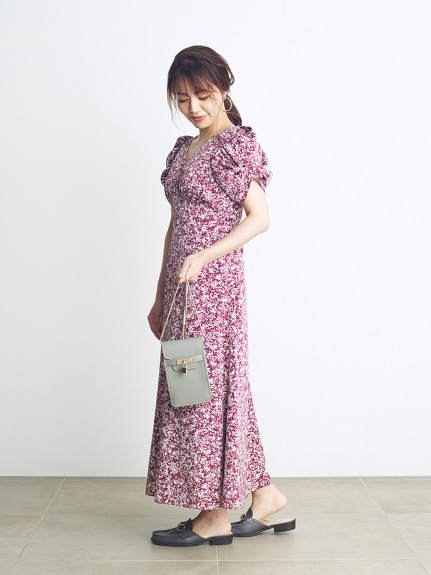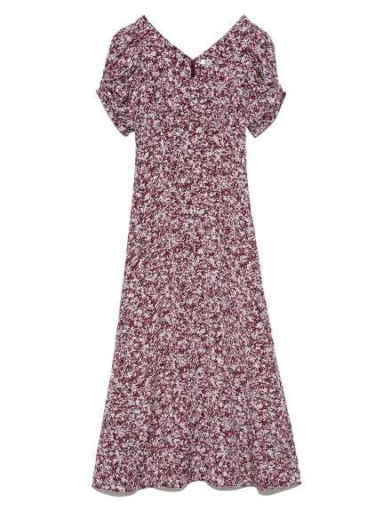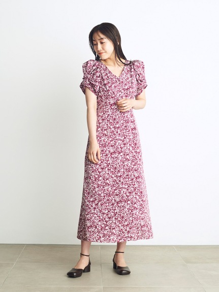 バリエーションプリントパフスリワンピース WINE 00