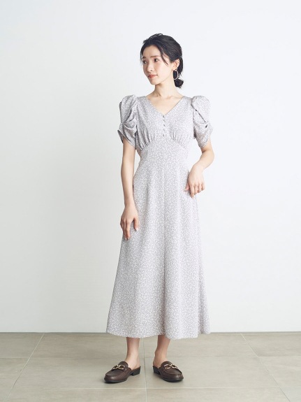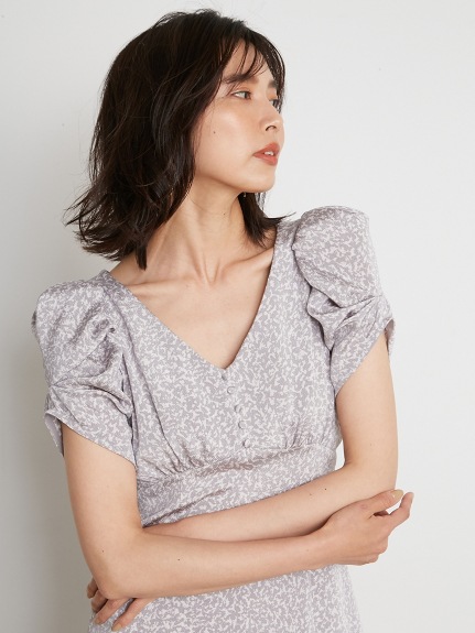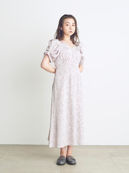 バリエーションプリントパフスリワンピース LGRY 00