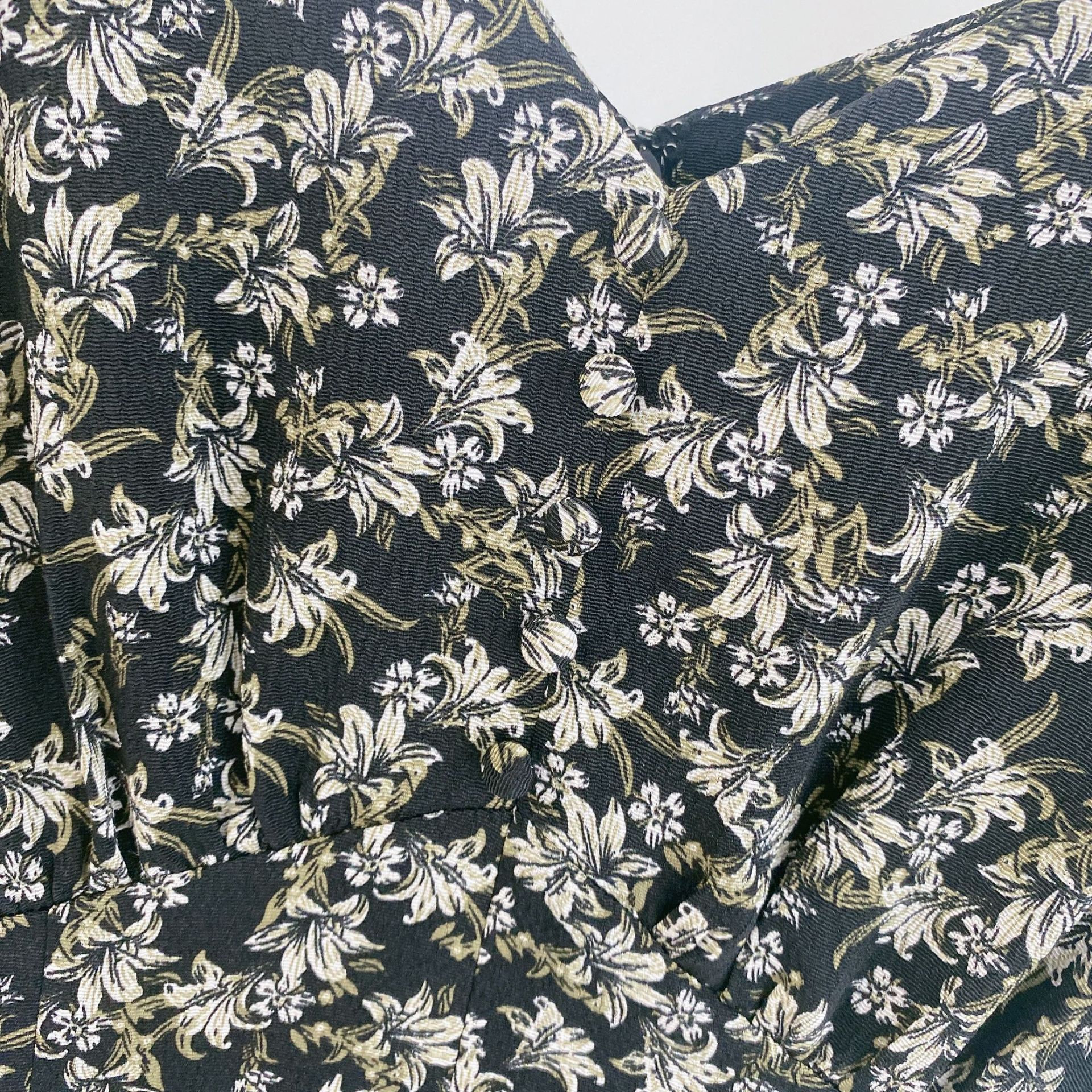 「SNIDEL」定番人気のフラワープリントワンピースは、大人の女性に似合うシックな柄と華やかなカラーリングがポイント。1枚纏うだけで女性らしさが上がり、品の良いエレガントさが漂います。鎖骨を美しく魅せるVネック、くしゅっとつまんだようなパフスリーブはタックと仕込みを入れることで柔らかくもモードな印象に。胸元のボタンなど、計算された絶妙な甘さが大人ムードを演出。胸下切替えと背中のリボンで、スタイルアップまで抜かりなく。