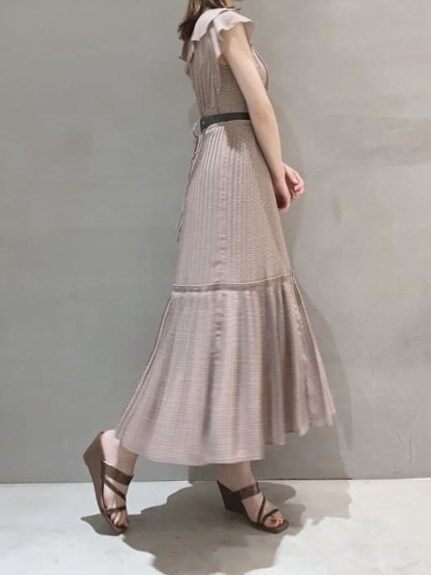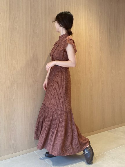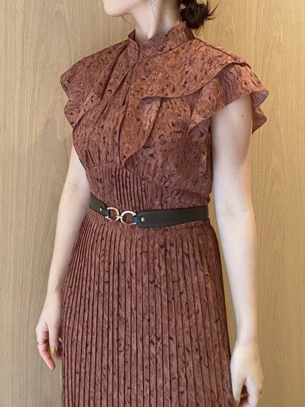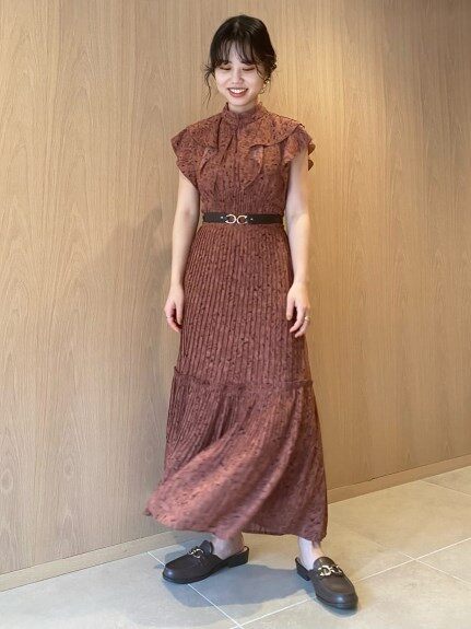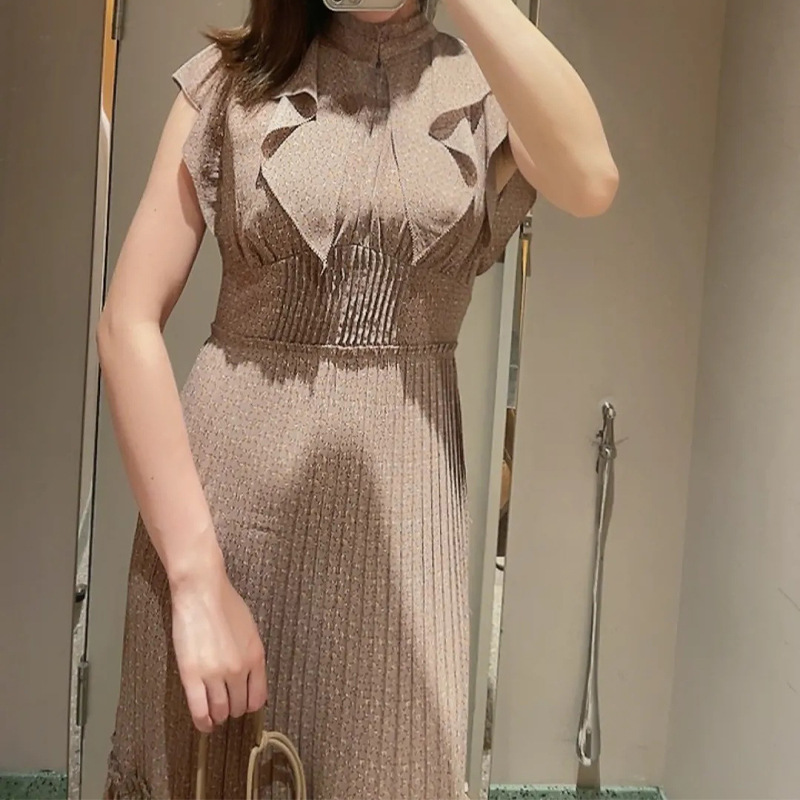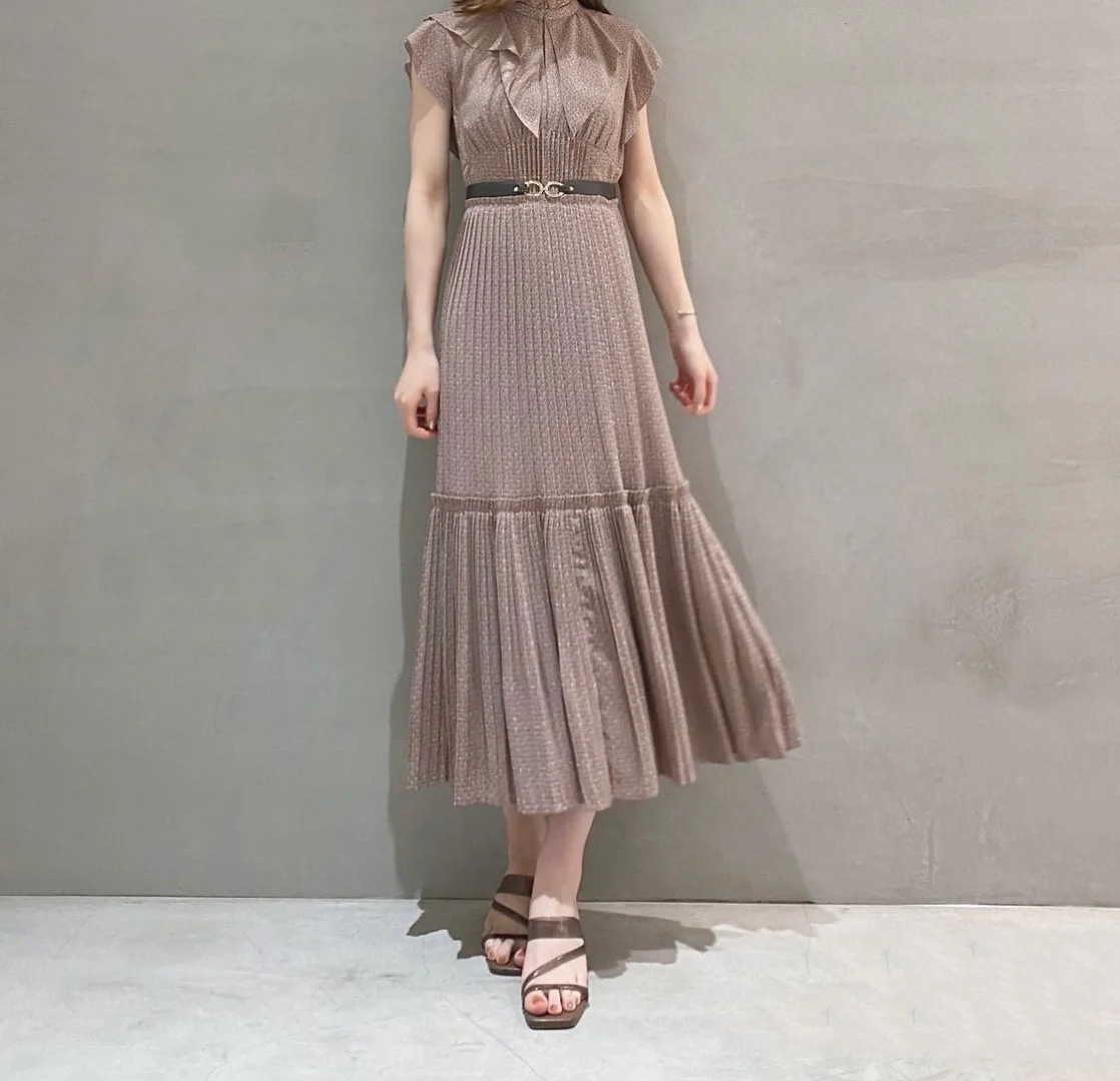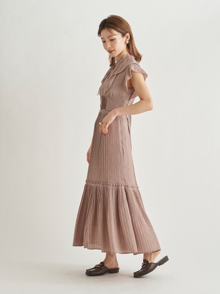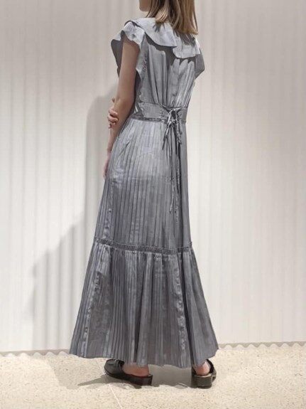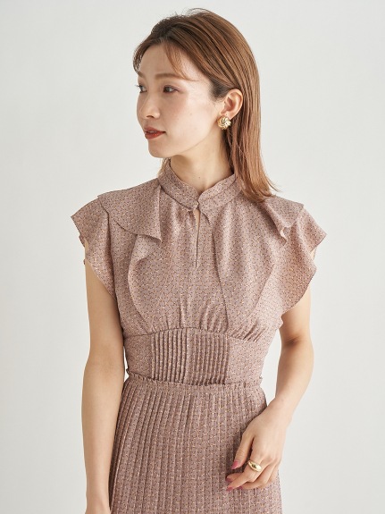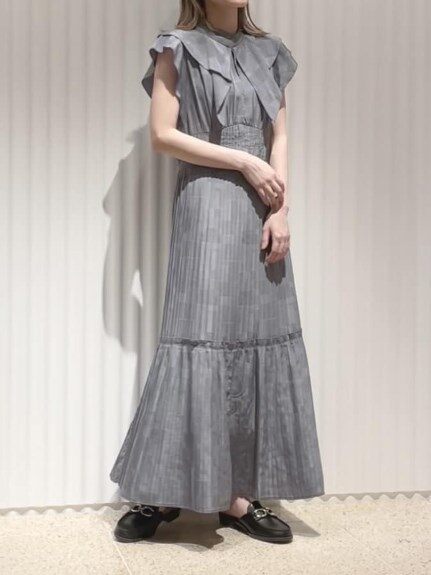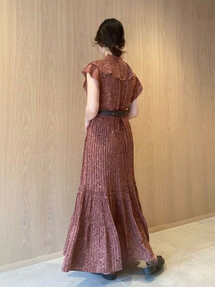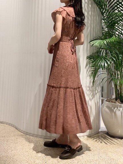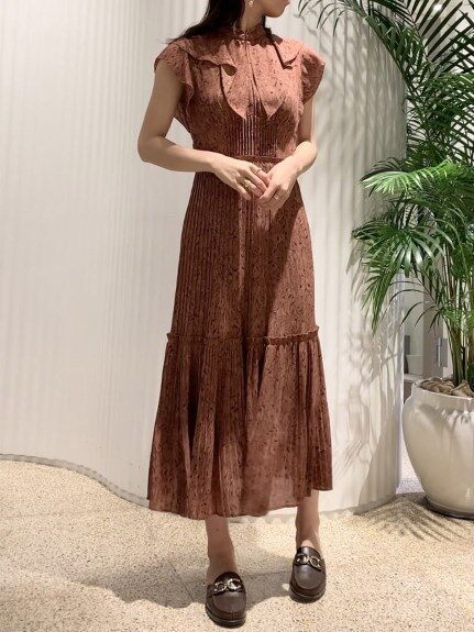 トレンドのバリモアカラーディティールと、「SNIDEL」らしいフェミニンな装いをミックスしたプリントワンピース。ネックから胸元にかけてフレアを斜めにあしらい、つけ襟のようなデザインを表現。大人なスタンドカラーとスリット、上品なプリーツ使いで、トレンドを意識しつつデイリユースに長けたエレガントムードへと昇華させました。胸下やウエスト、膝上など切り替えを巧みに取り入れ、特別感のある雰囲気を演出。定番ながらどこか新鮮な、今シーズンおすすめの1枚です。