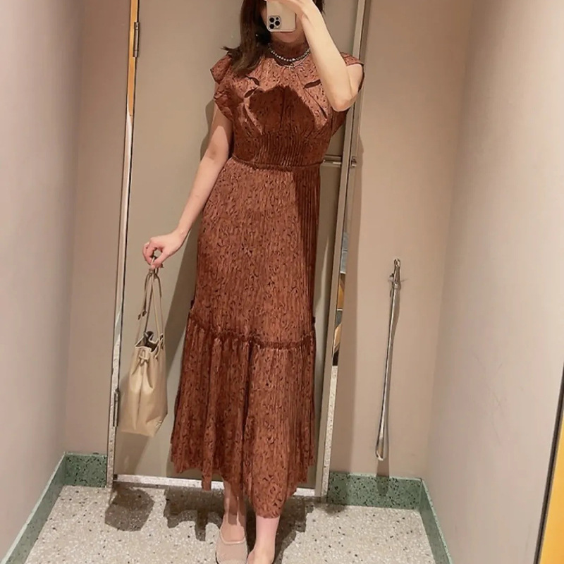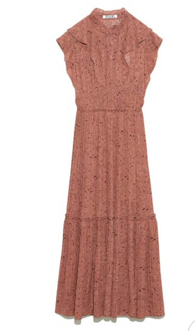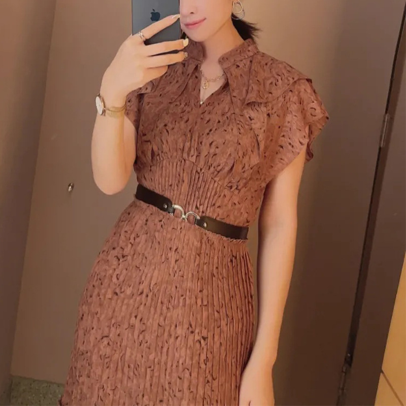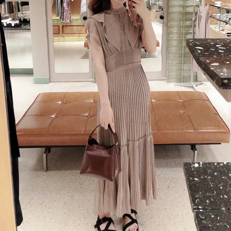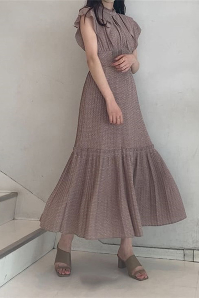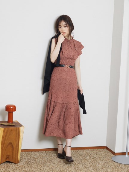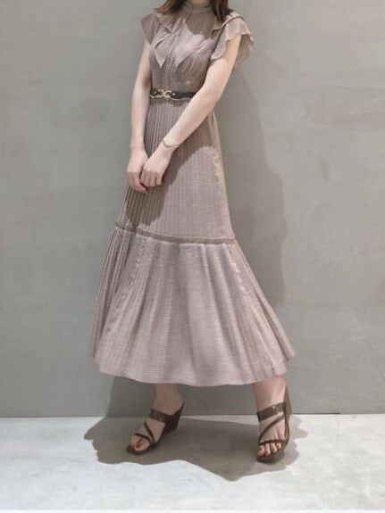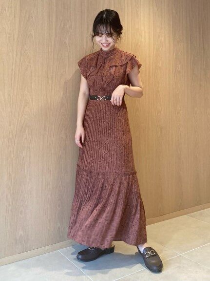 トレンドのバリモアカラーディティールと、「SNIDEL」らしいフェミニンな装いをミックスしたプリントワンピース。ネックから胸元にかけてフレアを斜めにあしらい、つけ襟のようなデザインを表現。大人なスタンドカラーとスリット、上品なプリーツ使いで、トレンドを意識しつつデイリユースに長けたエレガントムードへと昇華させました。胸下やウエスト、膝上など切り替えを巧みに取り入れ、特別感のある雰囲気を演出。定番ながらどこか新鮮な、今シーズンおすすめの1枚です。