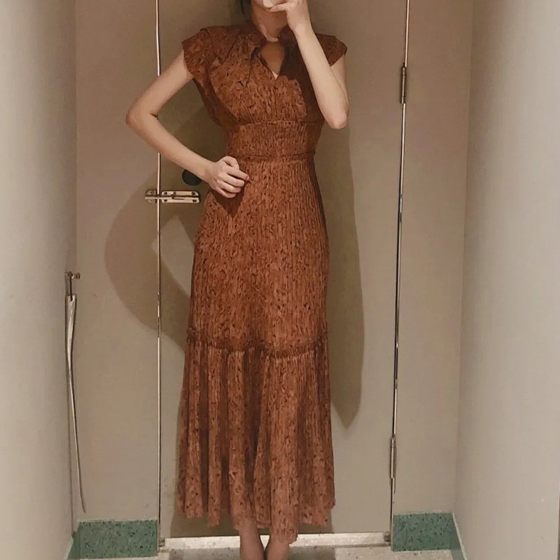 【旬なバリモアカラーデザインが鮮度を呼び込むプリントロングワンピース】