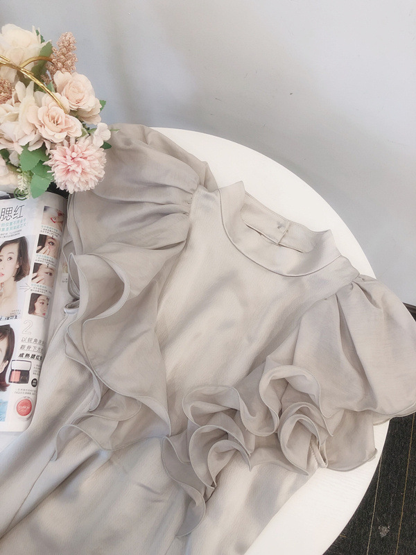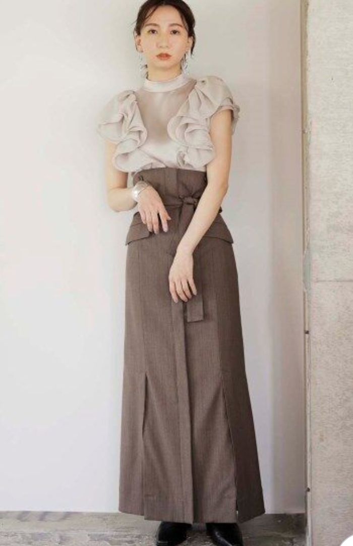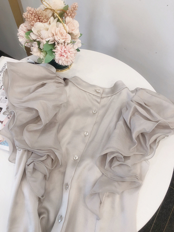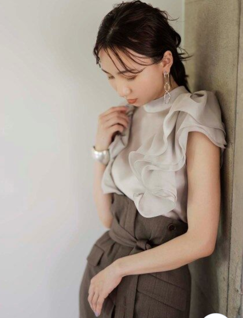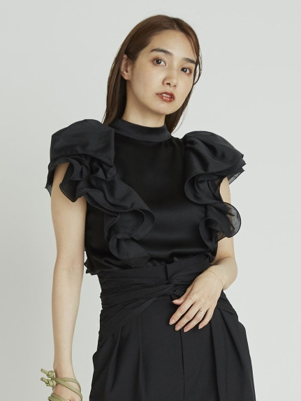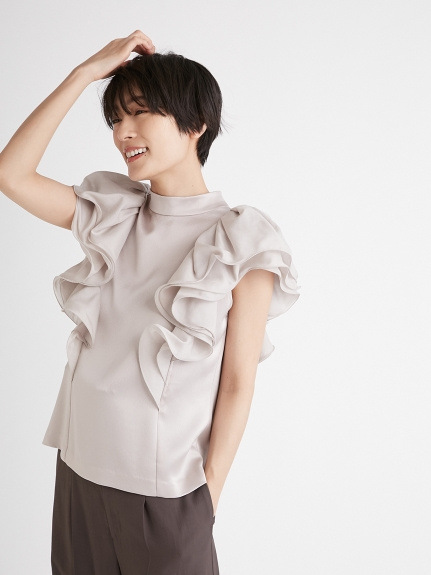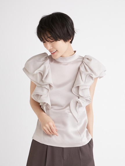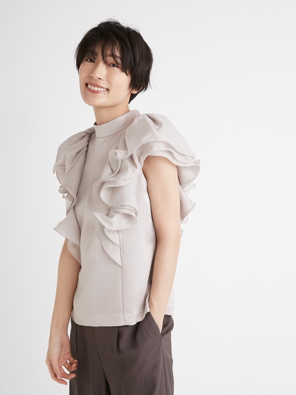 【大きなラッフルスリーブが華やかな印象を与えるブラウス】