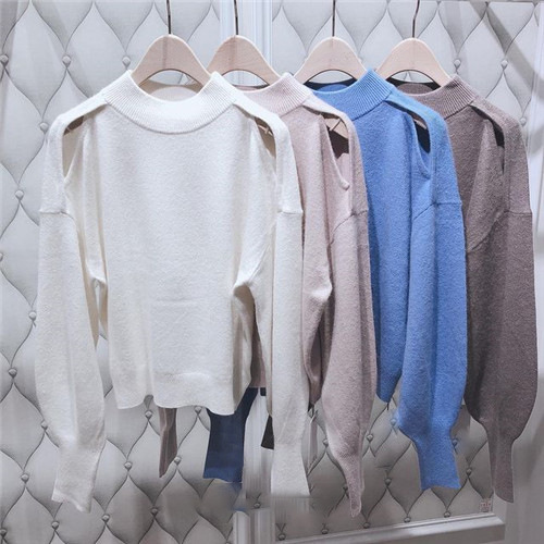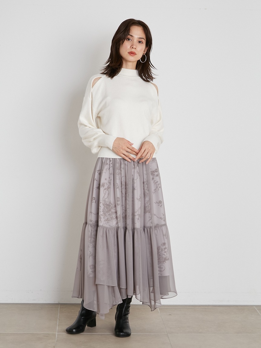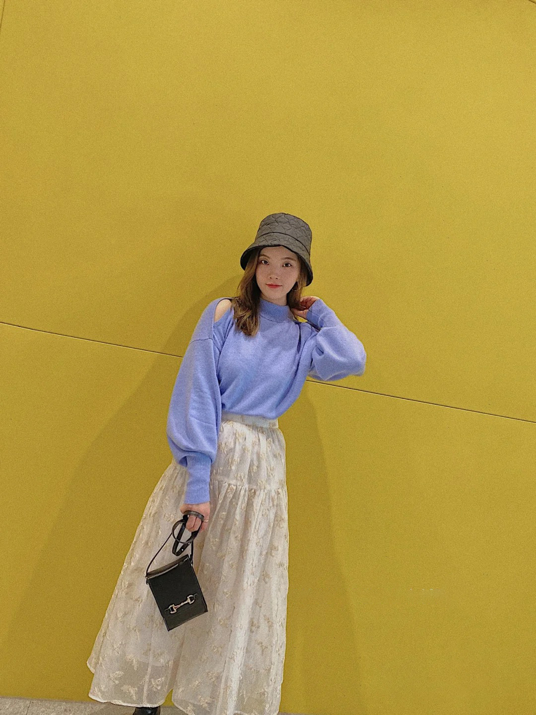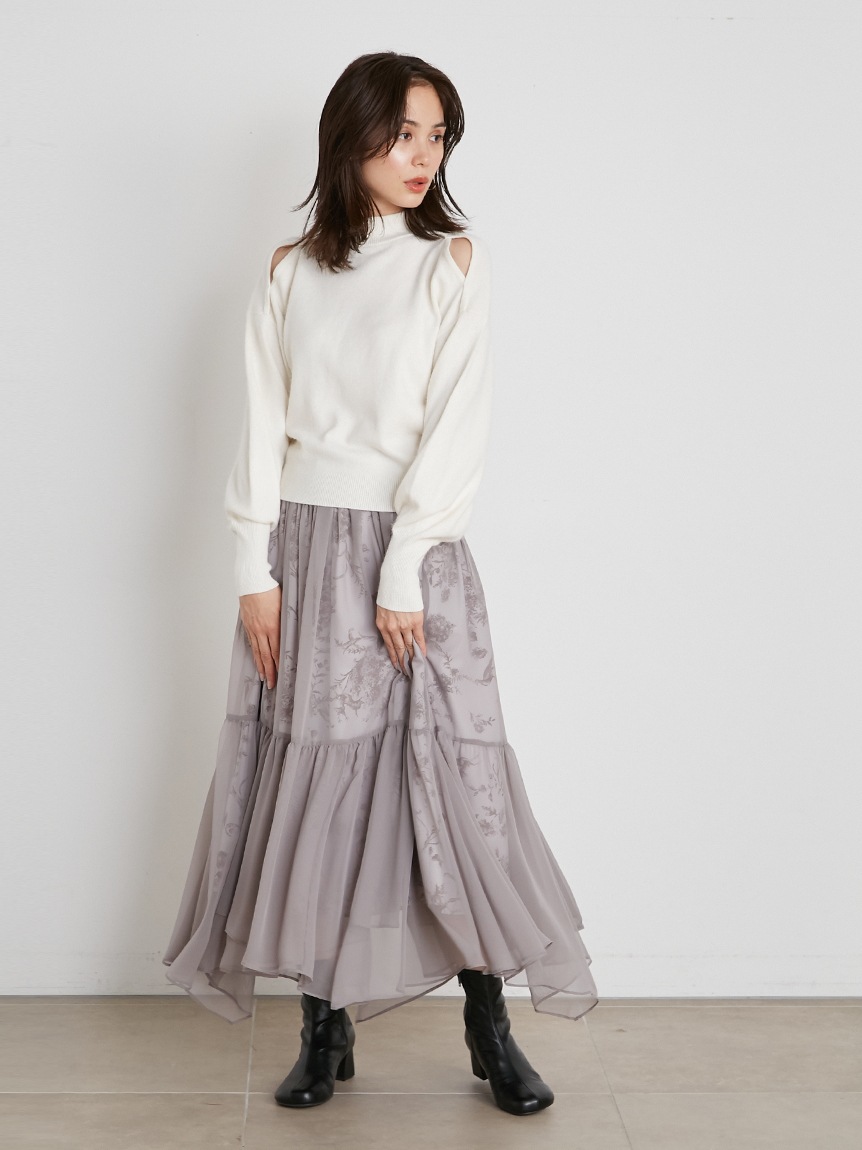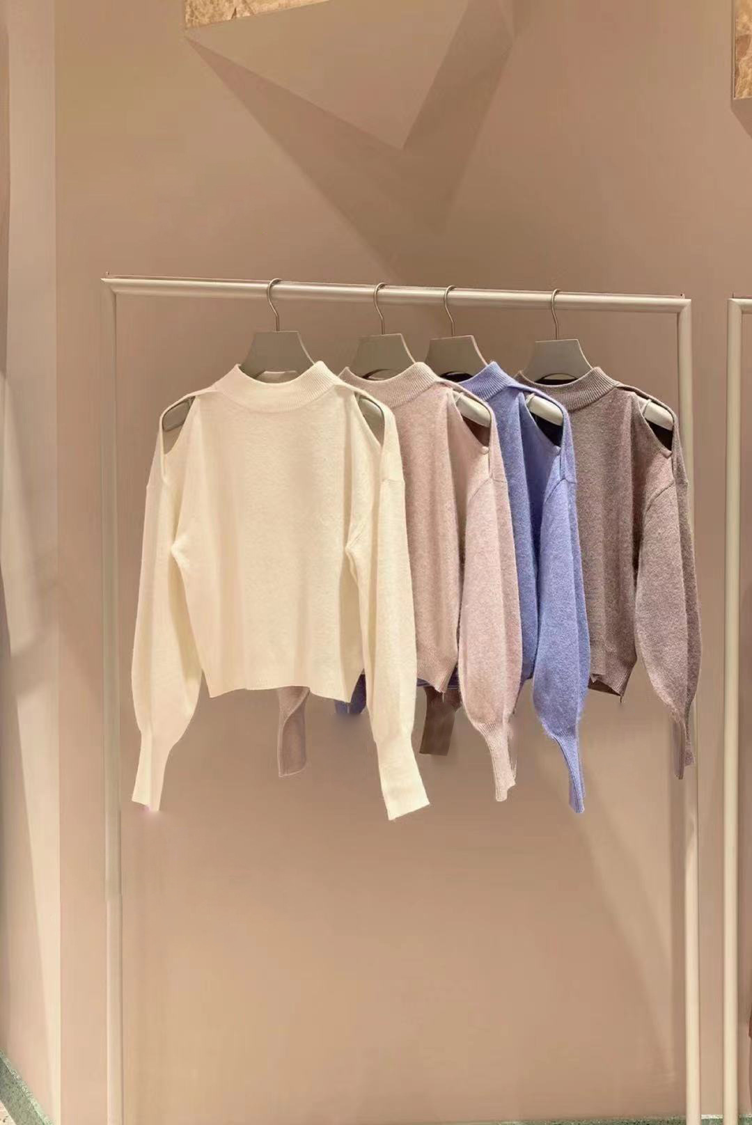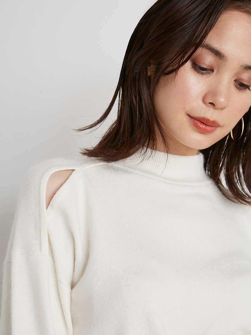 【ヘルシーな肌見せと上品な印象を両立させたコードショルダーニットトップス】