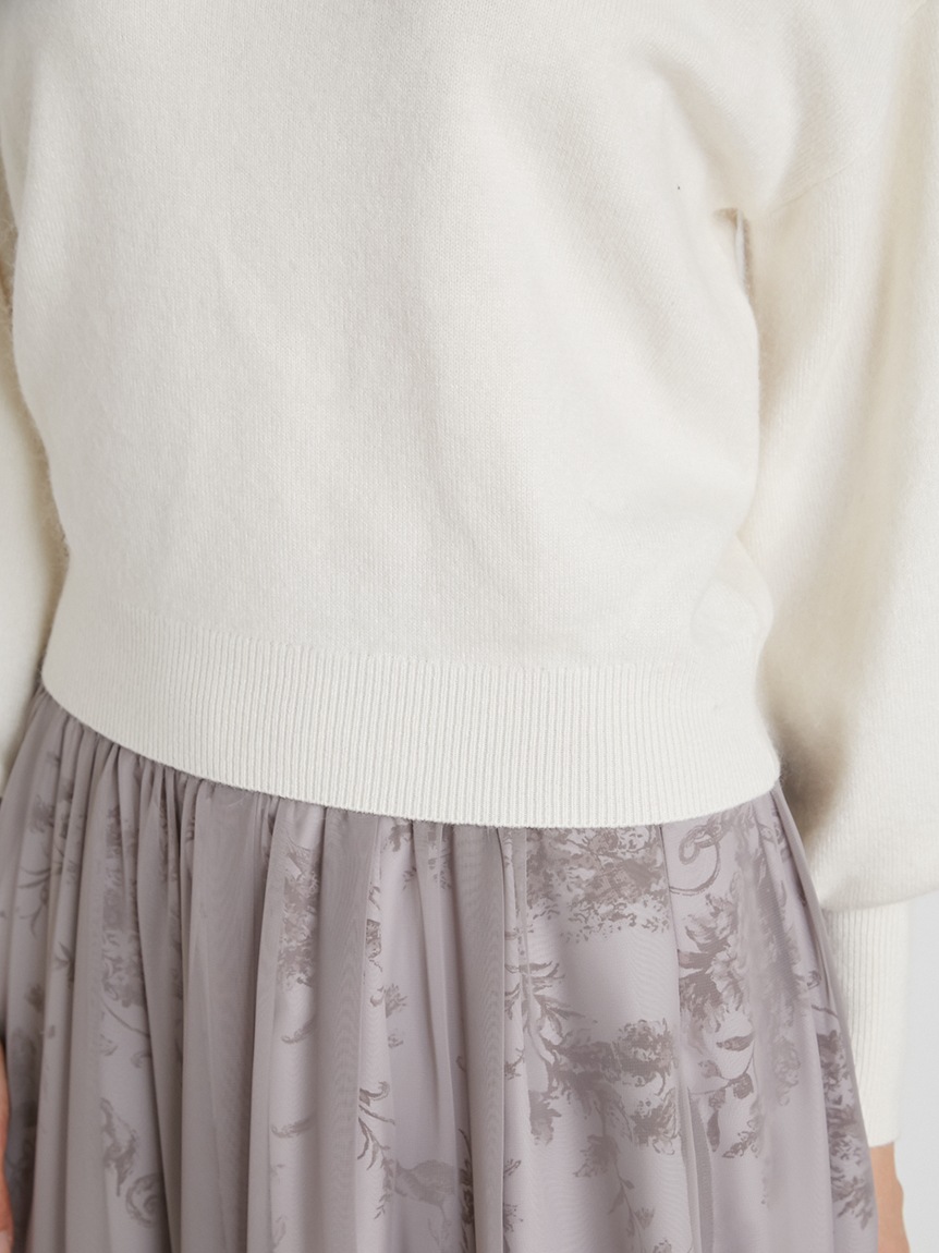 着心地が良く、柔らかで程良く張りのある糸を使用しました。オフホワイト、ベビーピンク、ライトブルー、モカのフェミニンな4色展開です