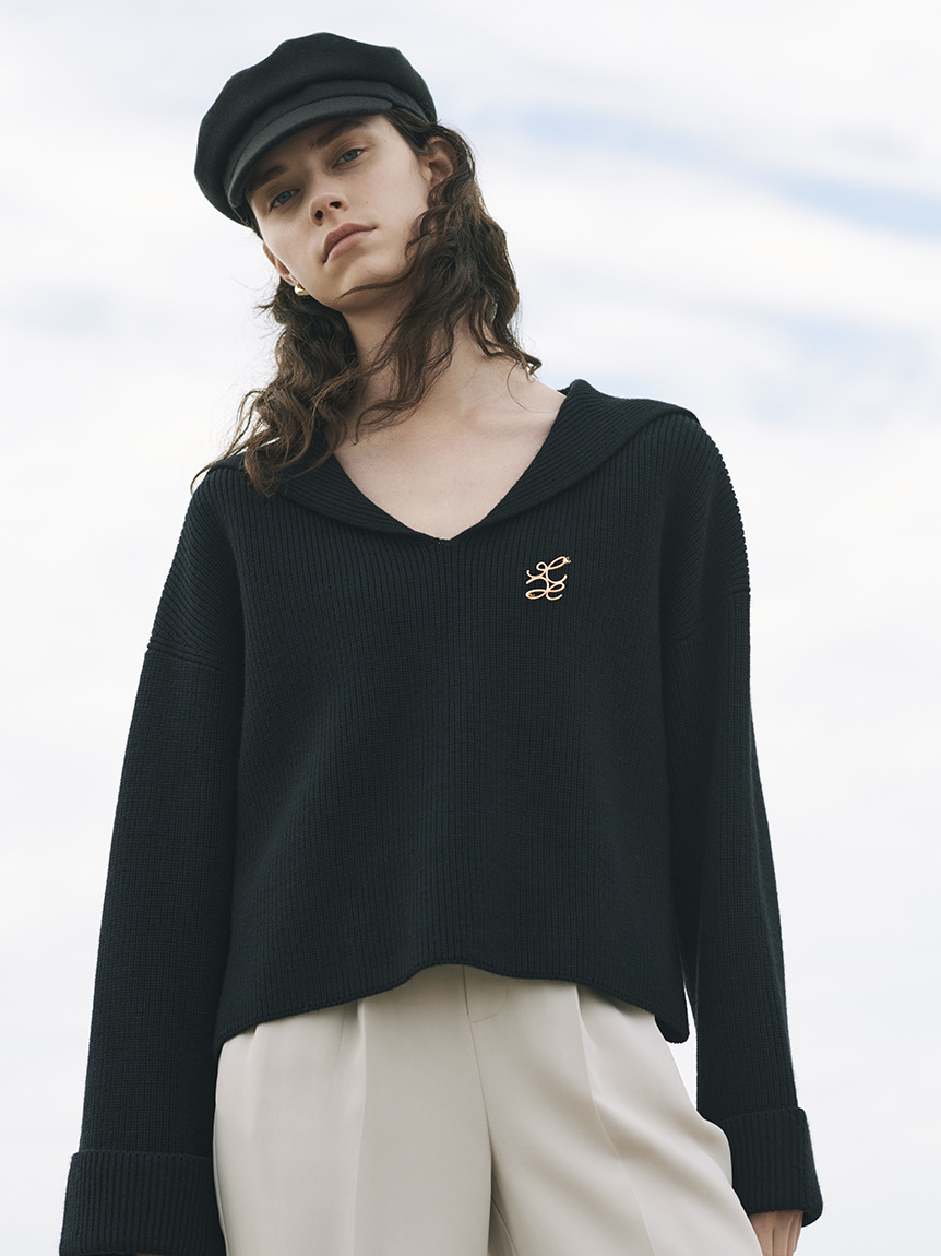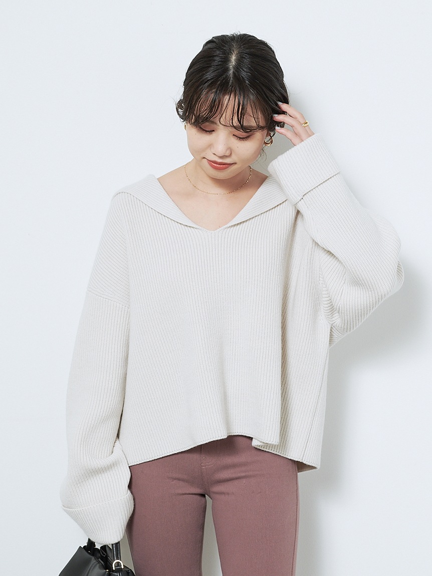 【トレンドのセーラーカラーを大人ムードに昇華したニットプルオーバー】
