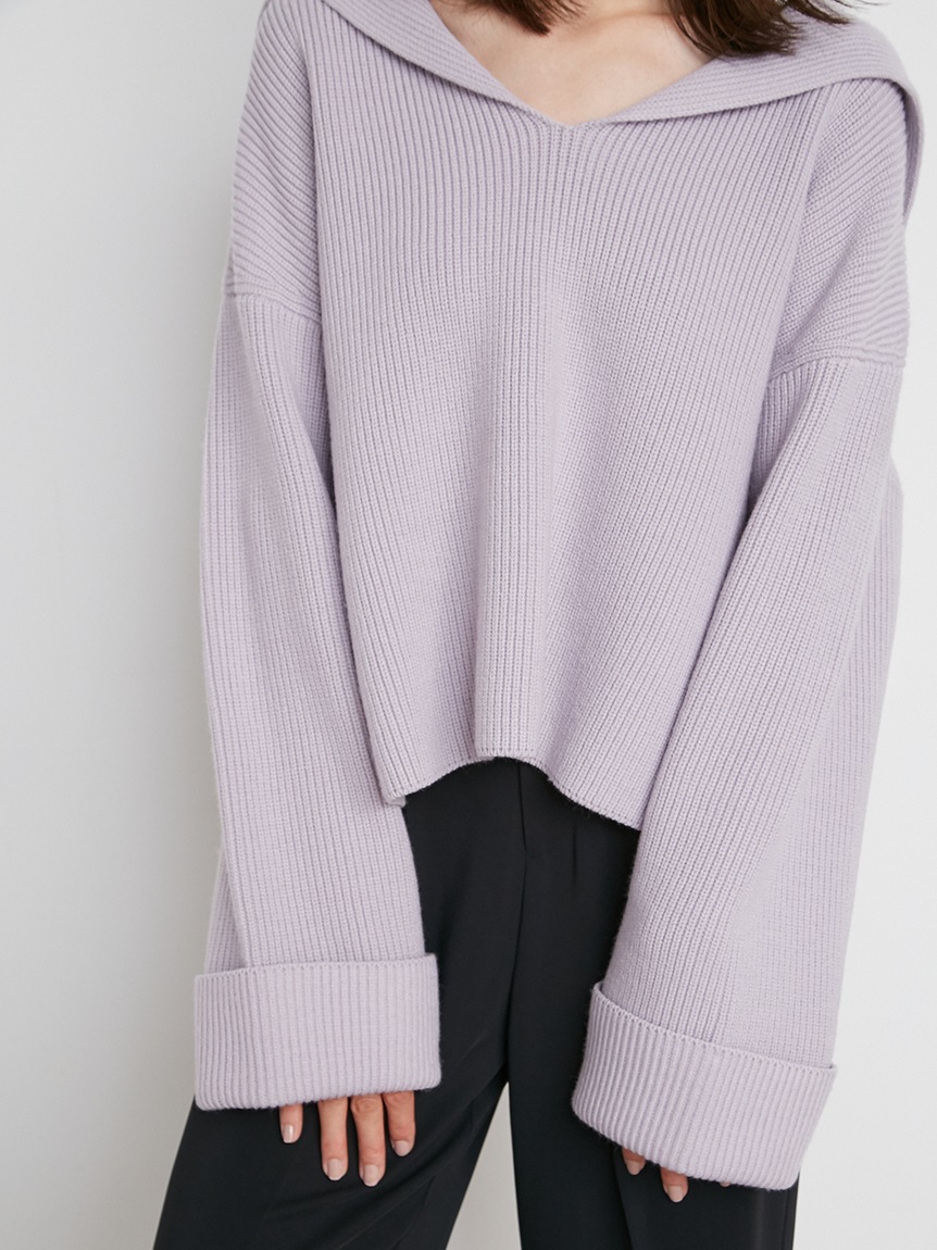 ウール混素材を使用し、片畦でしっかりと肉厚に編み上げました。オフホワイト、ラベンダー、ブラックの3色展開です。