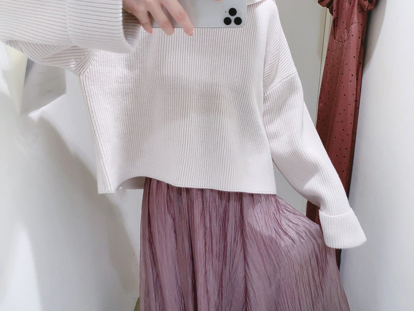 大人が着たいガーリーを表現した、トレンドのセーラーカラーデザインの長袖ニット。愛らしいバックスタイルにポイントを置きつつも、鎖骨が見えるネックラインや品の良い片畔編みなど、ビターな甘さへと落とし込んだ大人なルックスが「SNIDEL」ならではの1着です。オーバーサイズの身幅やワイドスリーブがこなれ感を纏い、さらっと着るだけで洗練された印象に。ワイドパンツを合わせた、引き算のハンサムルックが一押しです。