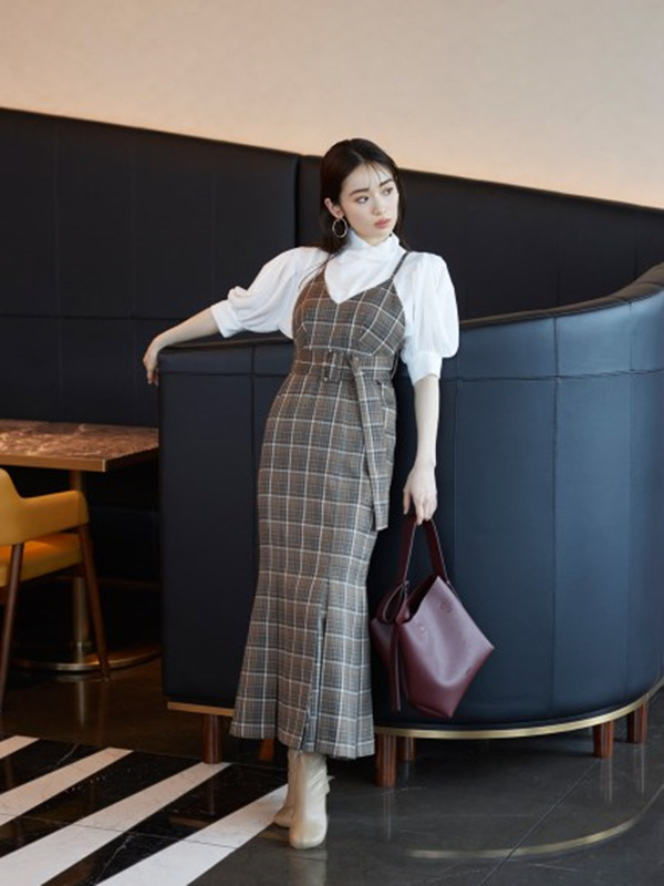程良い光沢感が特徴の生地を使用しました。ホワイト、ピンクベージュ、サックスの3色展開。ホワイトのみ透け防止のインナーキャミソールが付いています。