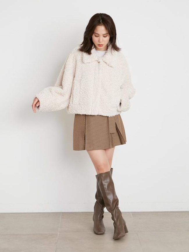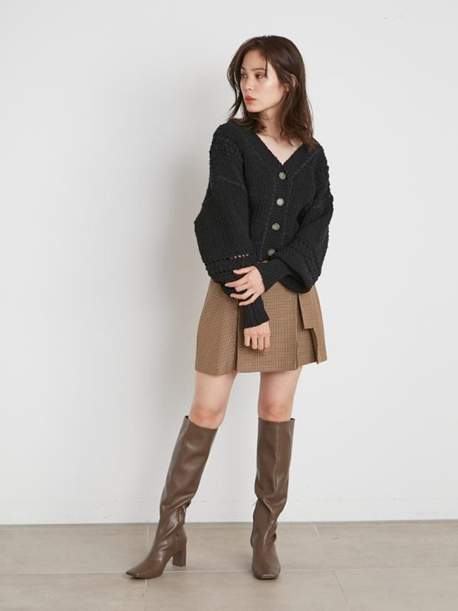ややふっくらとしたウール混のあたたかみのある素材を使用しました。千鳥チェックのオフホワイトとブラウン、無地のブラックをご用意しました。