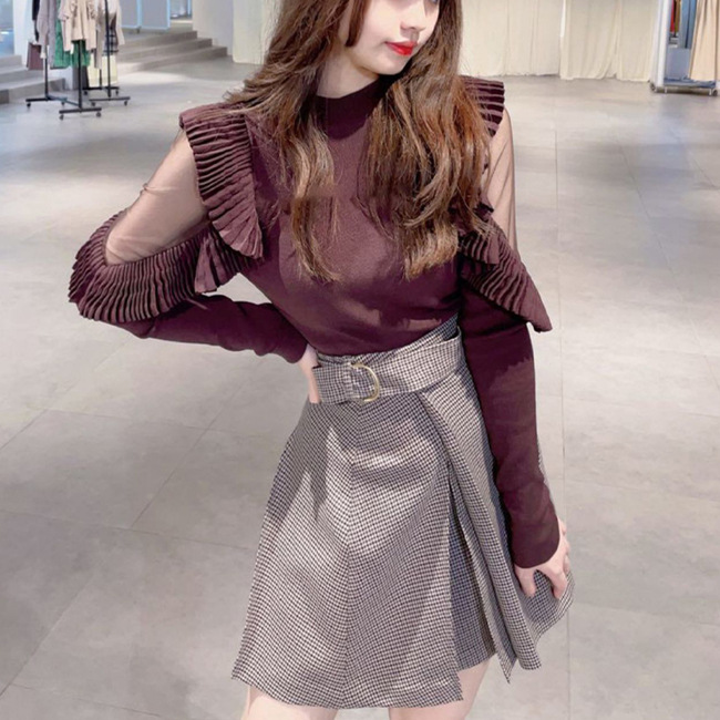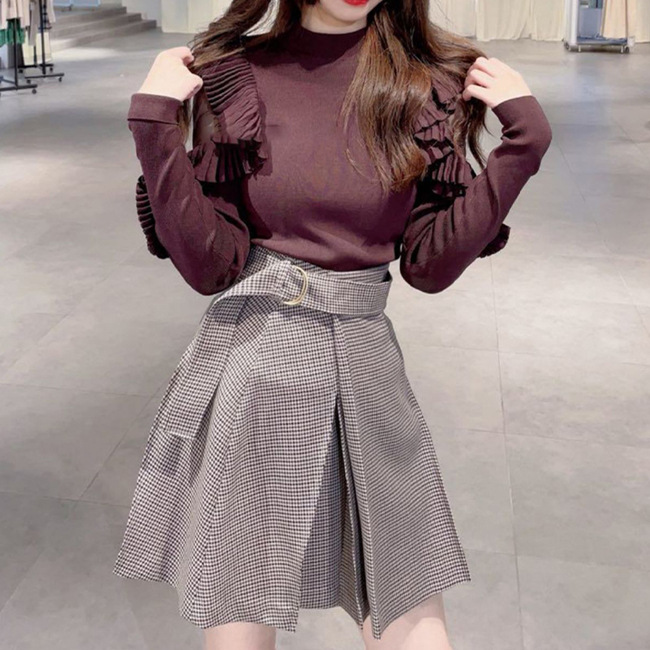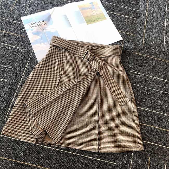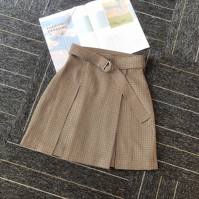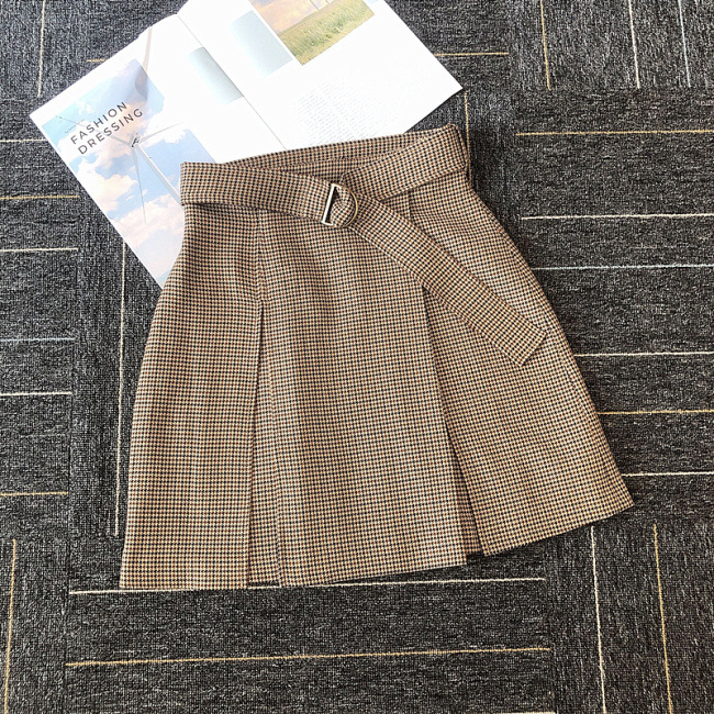 チェックミニベルティッドスカート