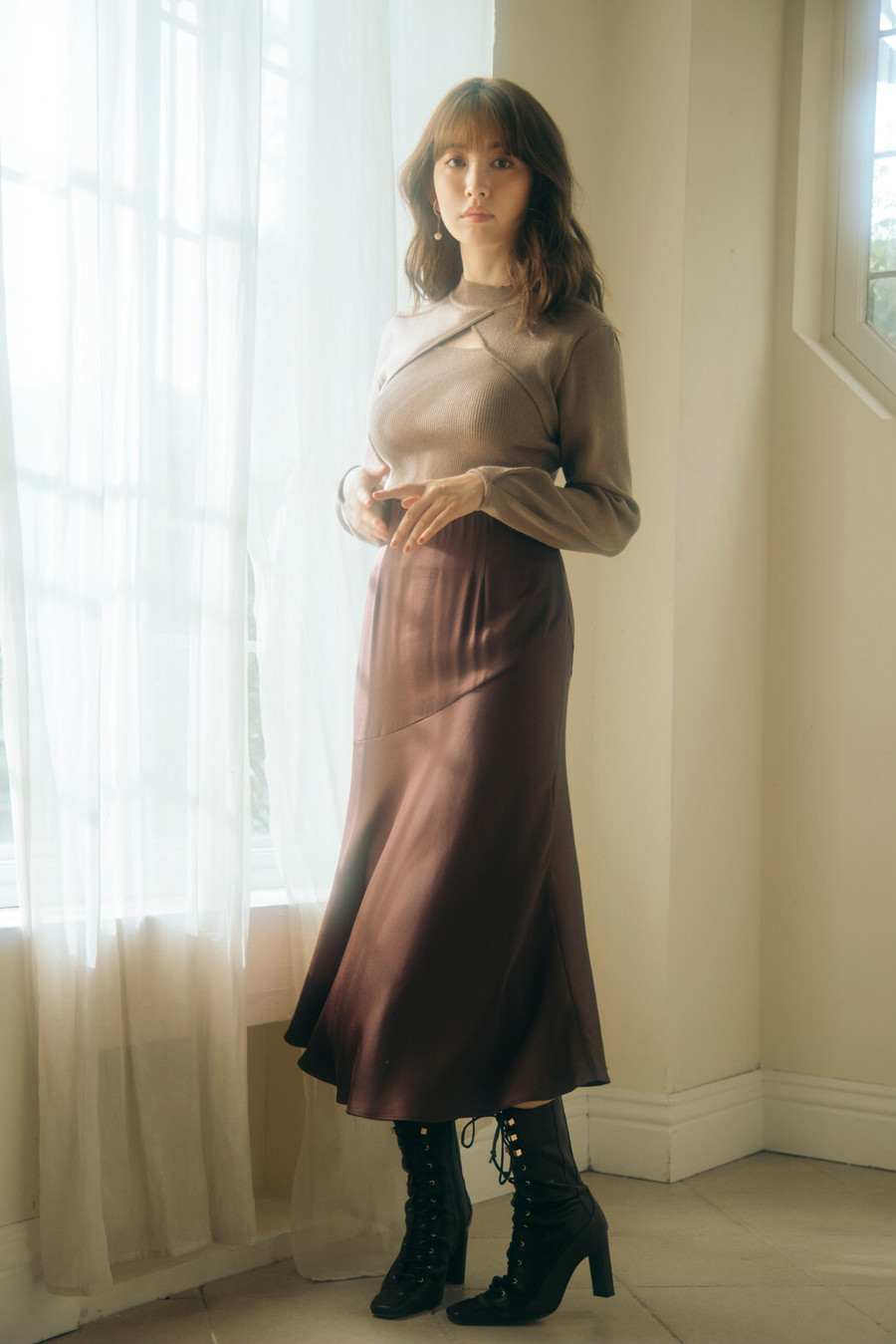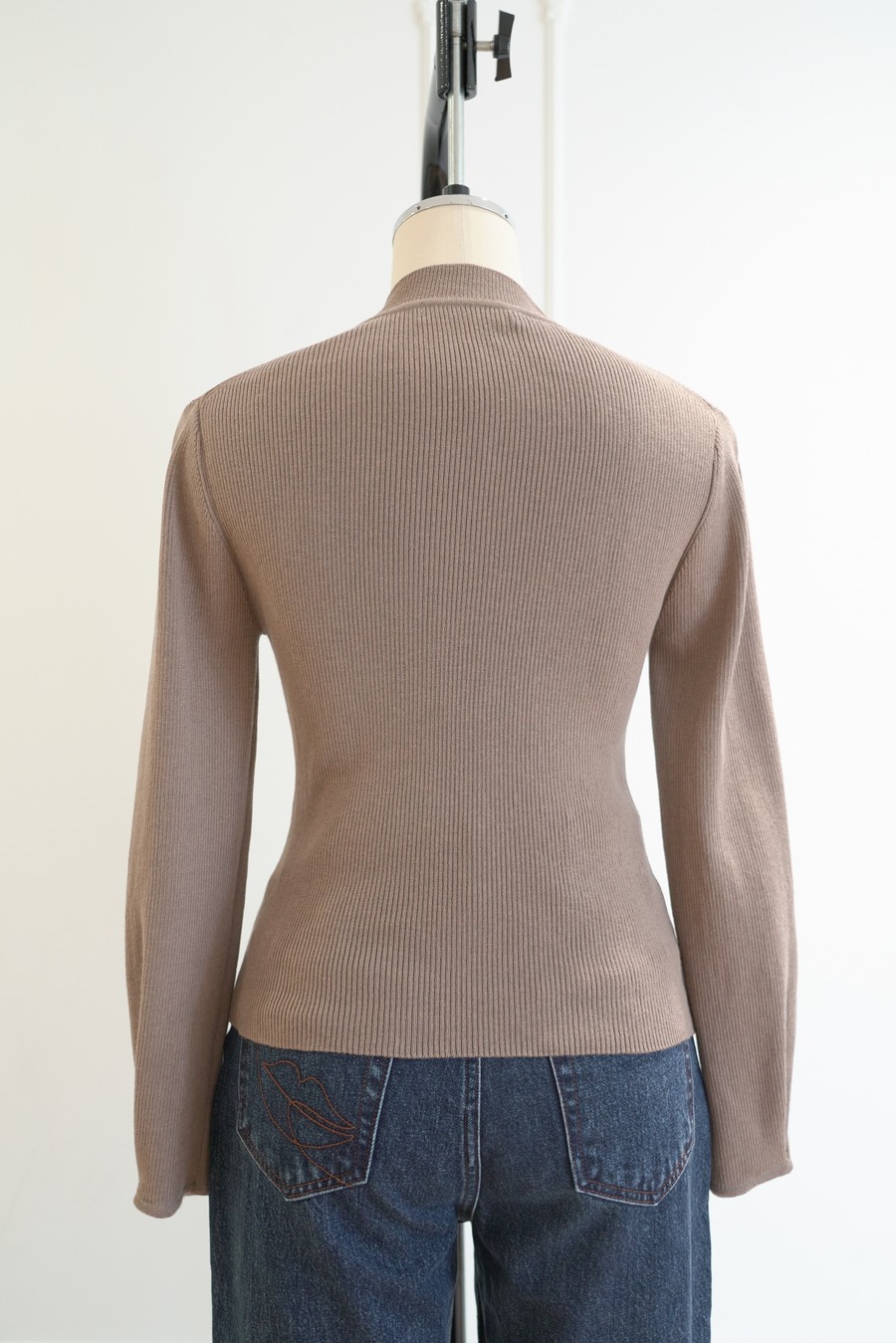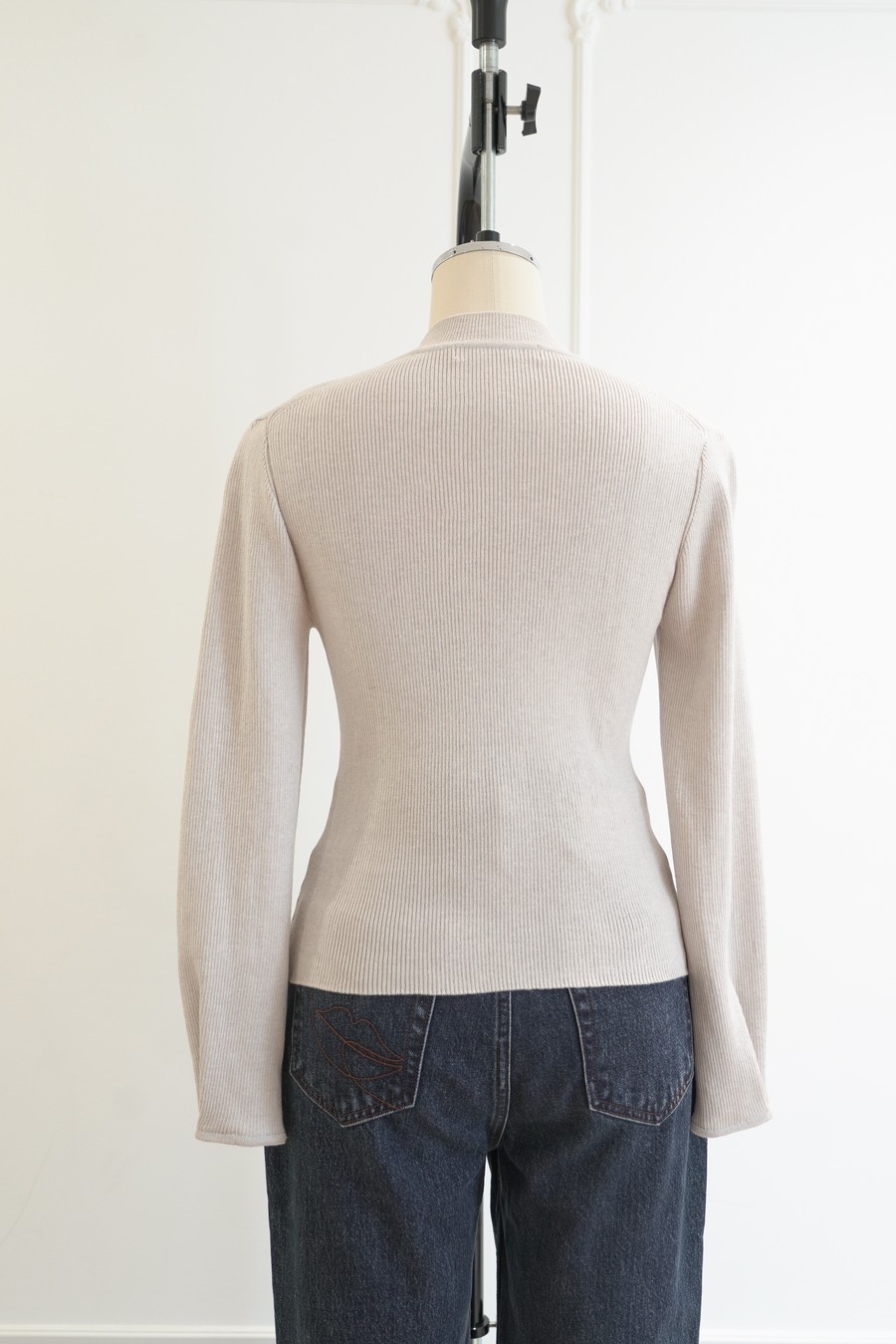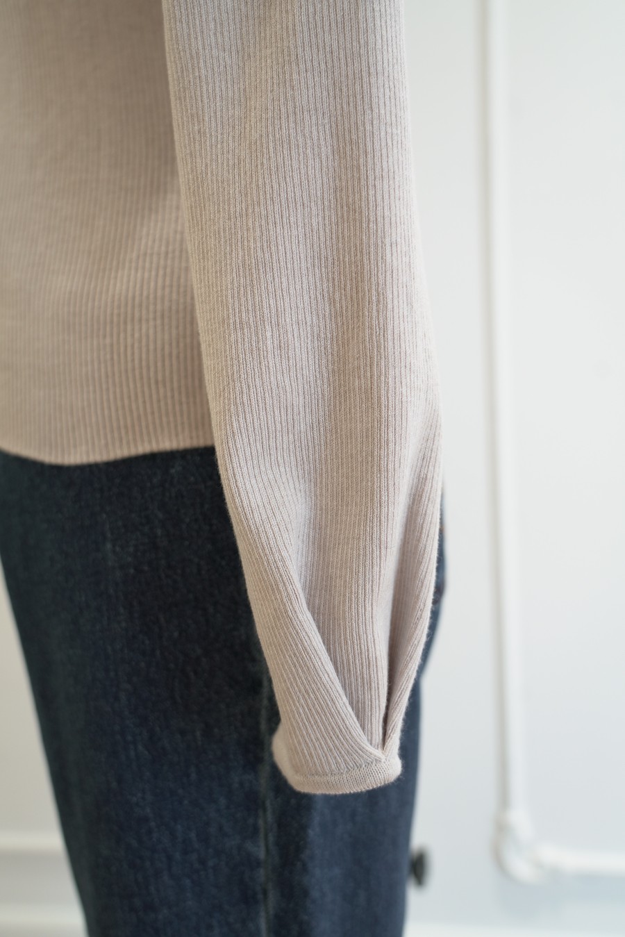 袖口に施されたタックデティールがエレガントで女性らしい動きを表現します。程よく厚みのある生地感と高すぎないボトルネック、調節できる袖口が季節の変わり目にぴったりです。