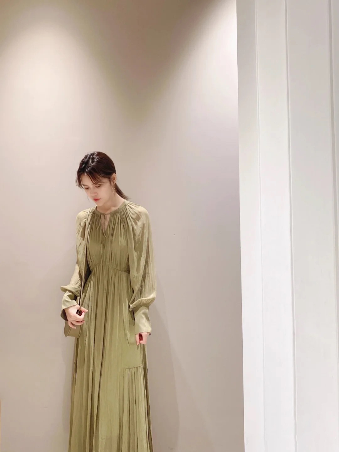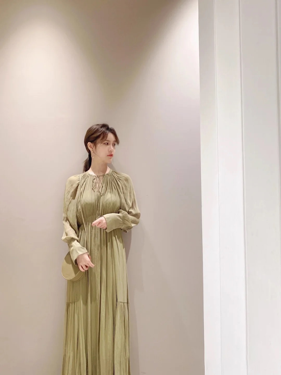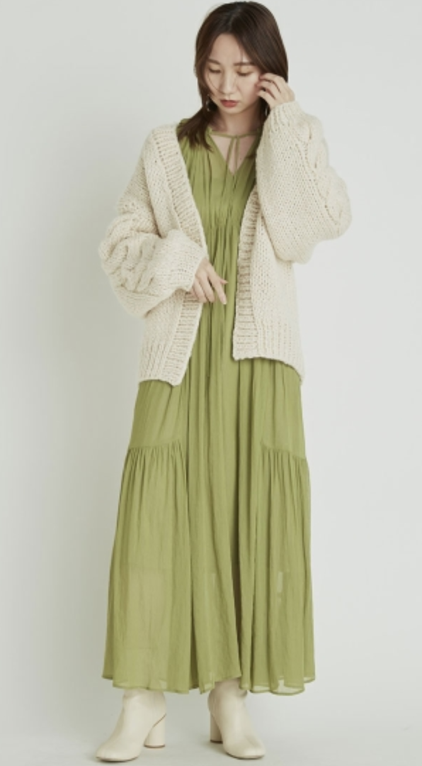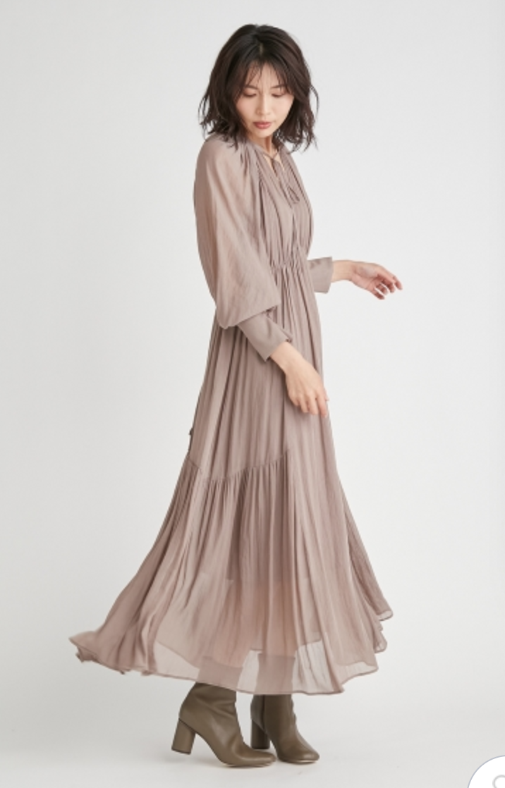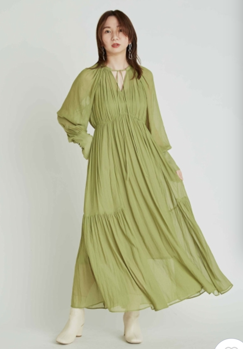 楊柳シフォンギャザーワンピース