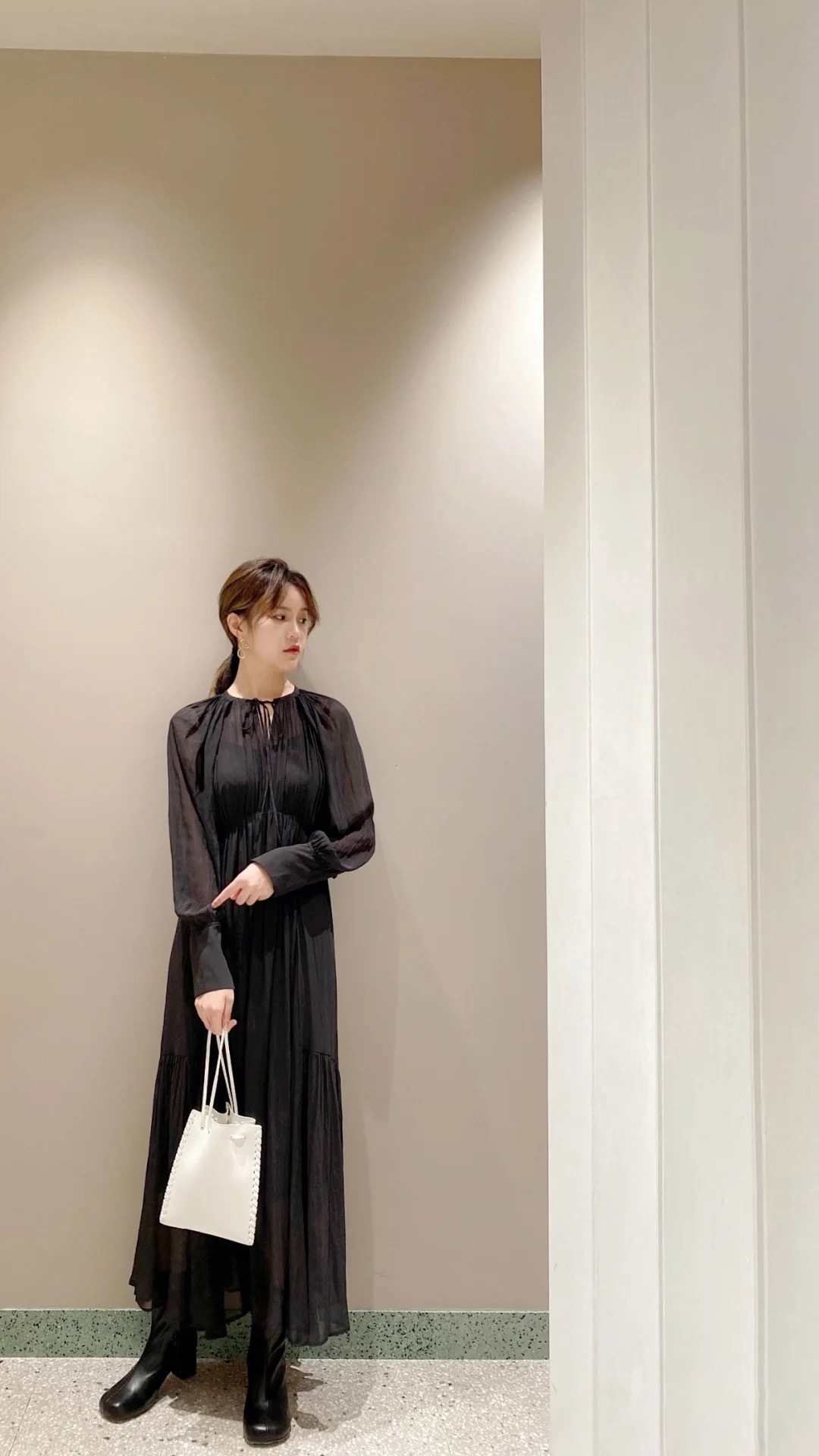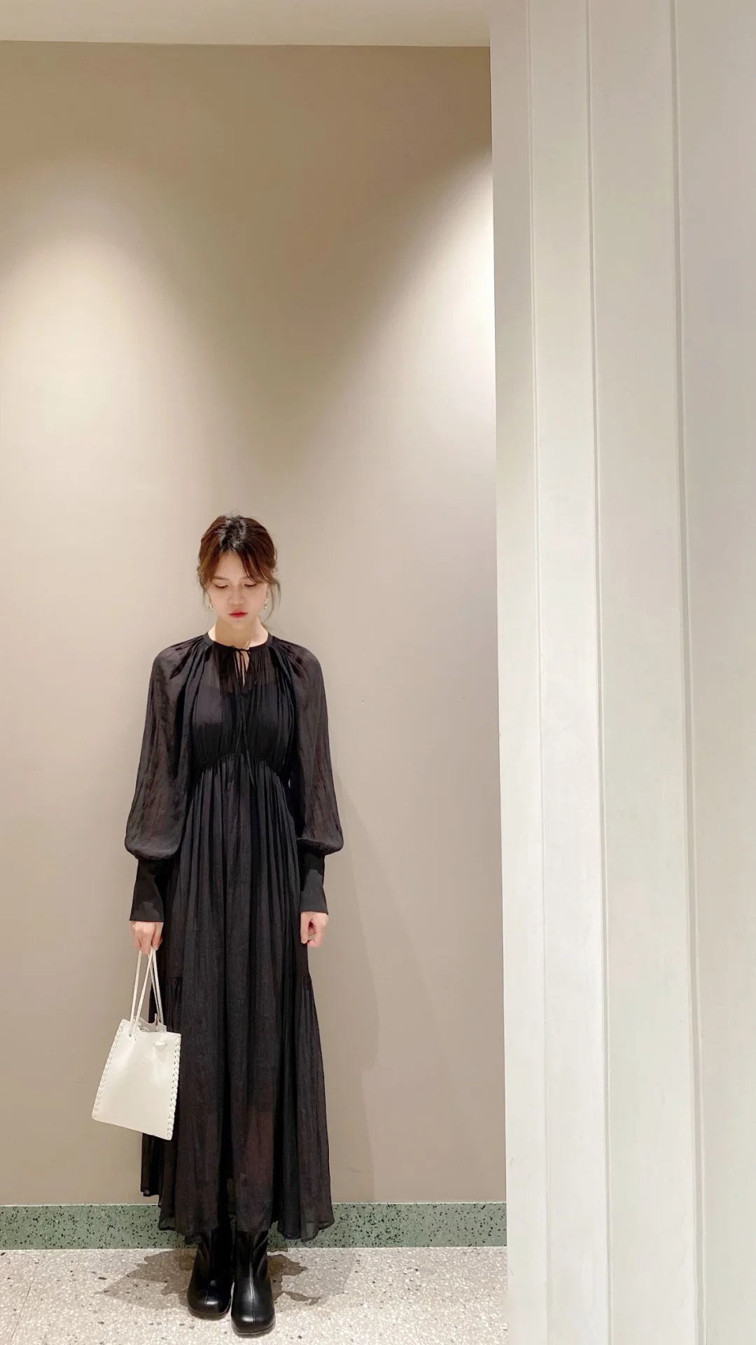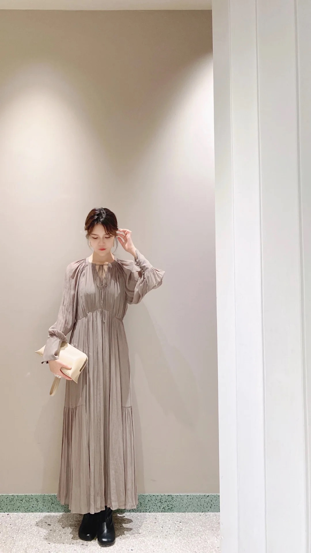 楊柳シフォンギャザーワンピース