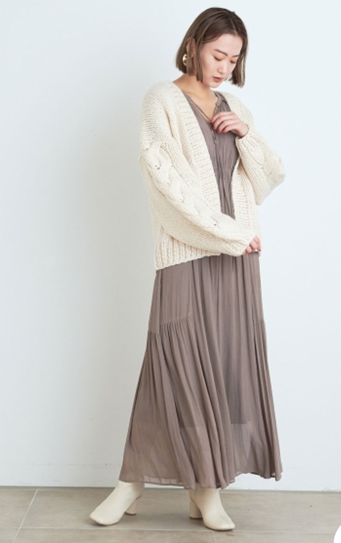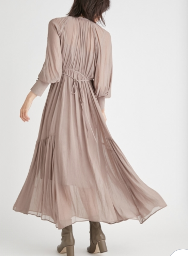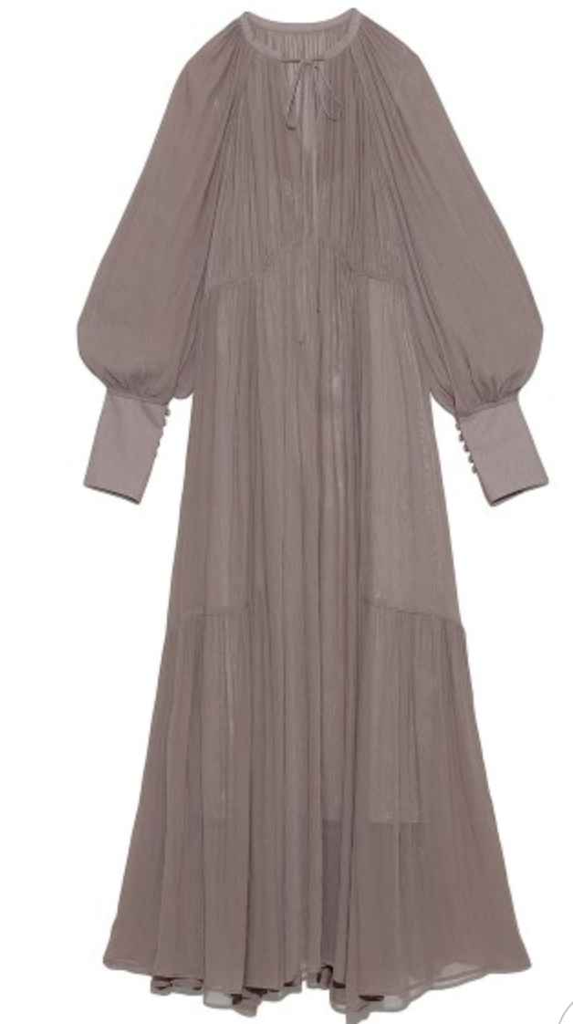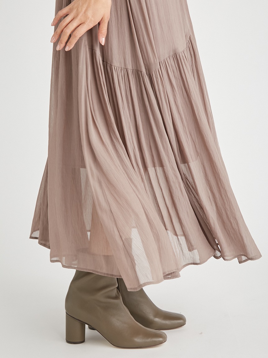 【繊細な透け感のある楊柳シフォンをふんだんに使用したロングワンピース】