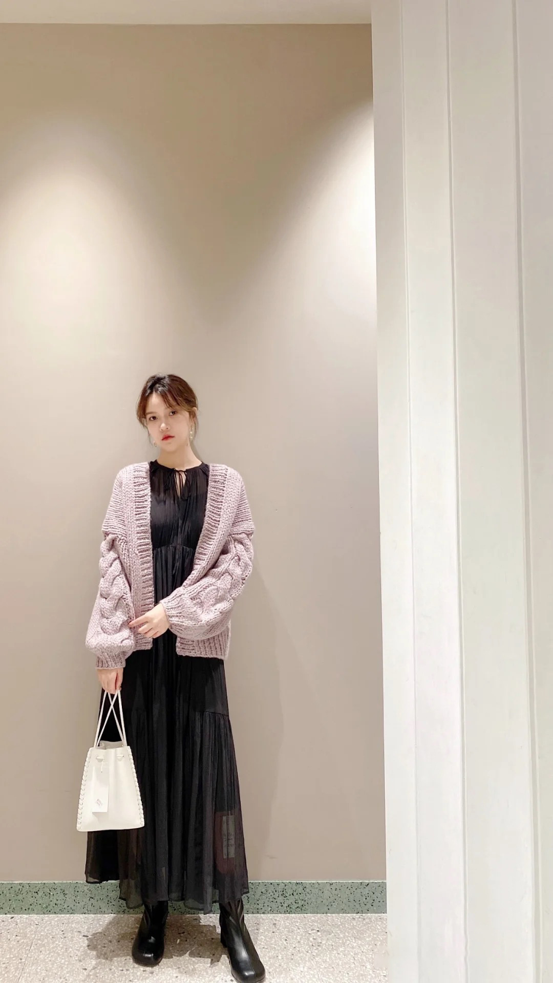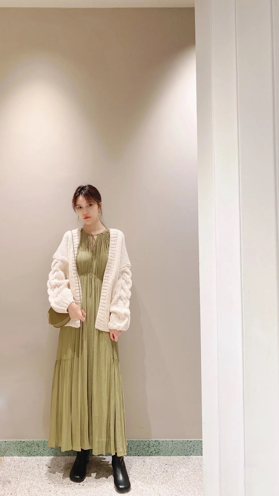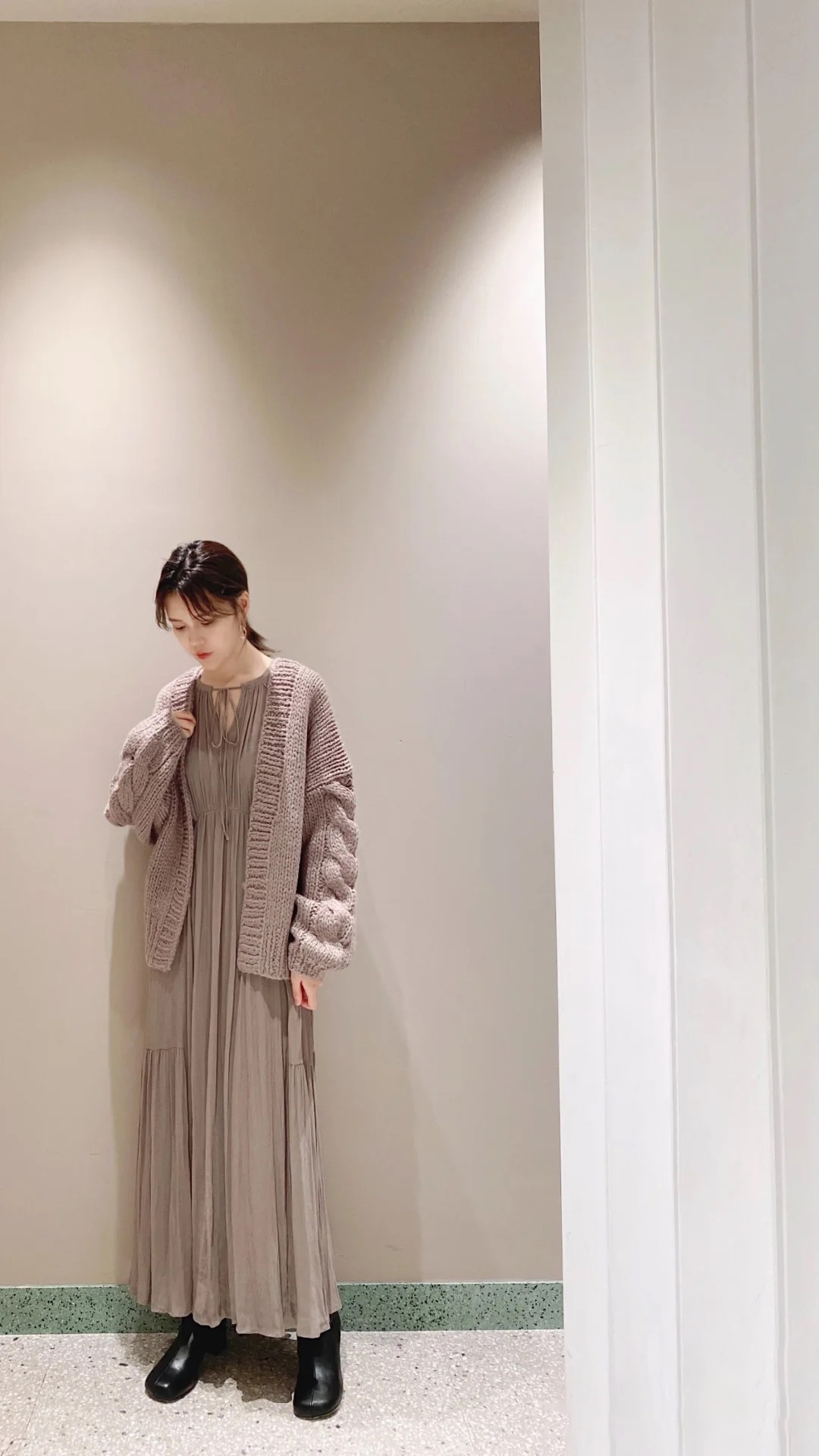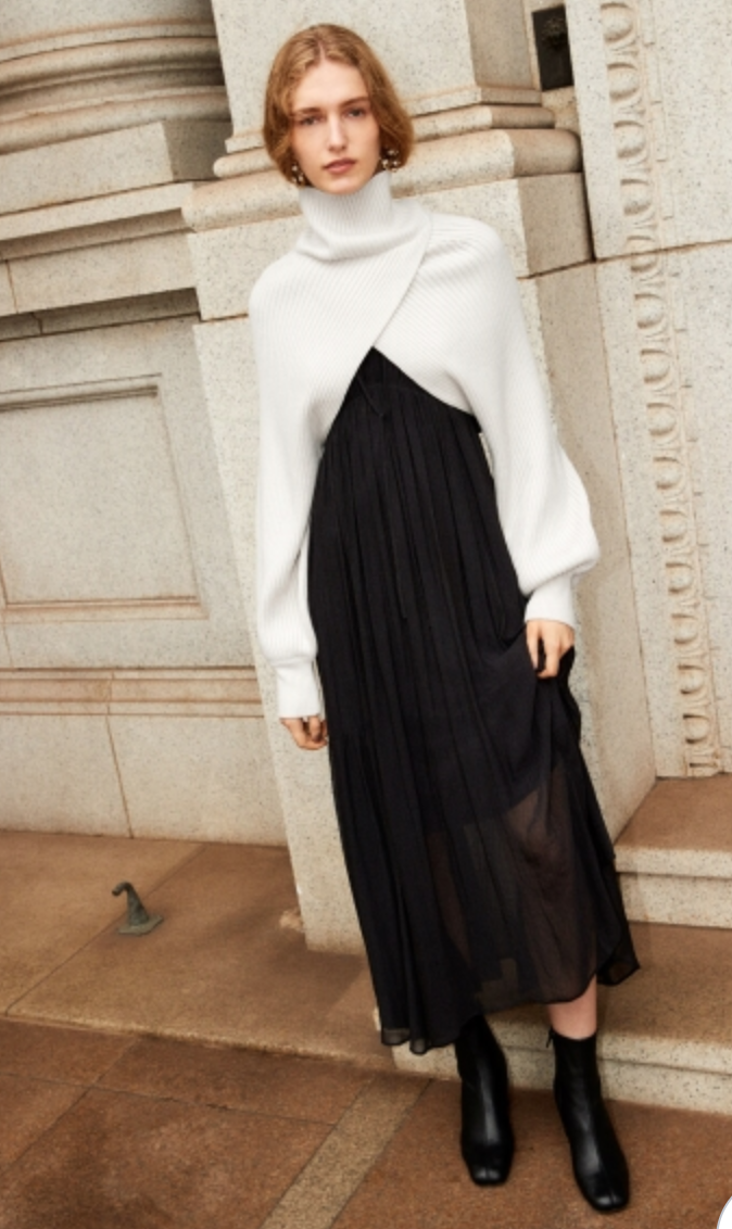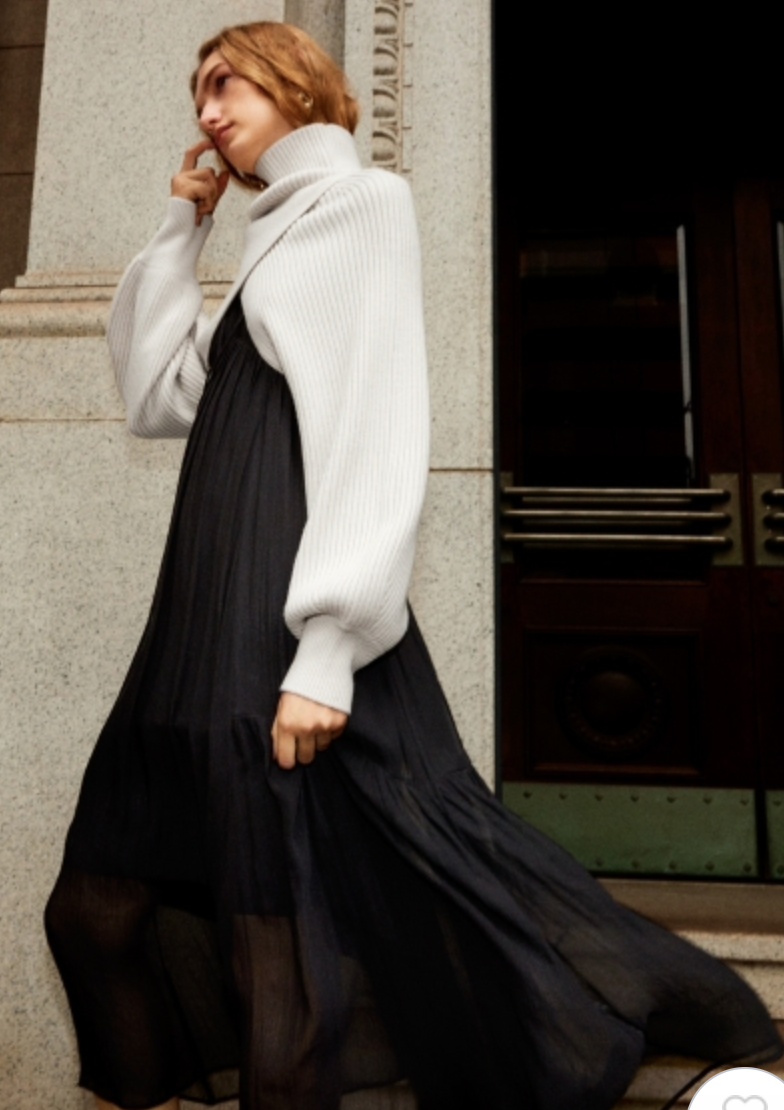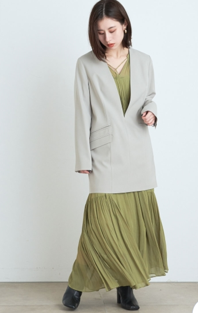ラグラン見えするスリーブ切り替えで肩まわりを華奢に見せながら、たっぷりとした分量感がありながらも軽やかに見えるデザインです。