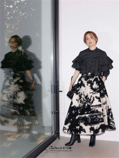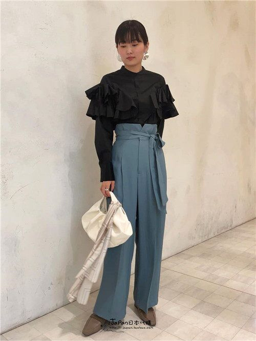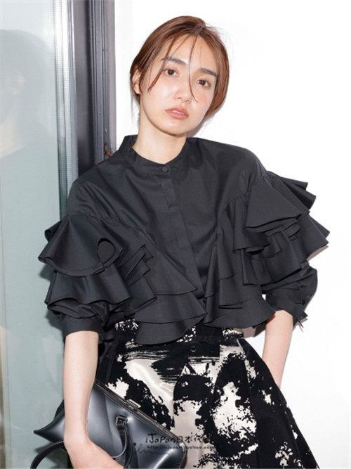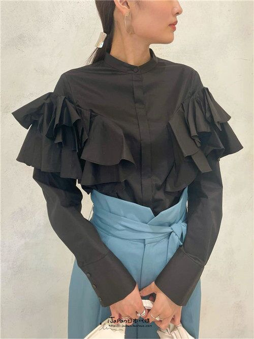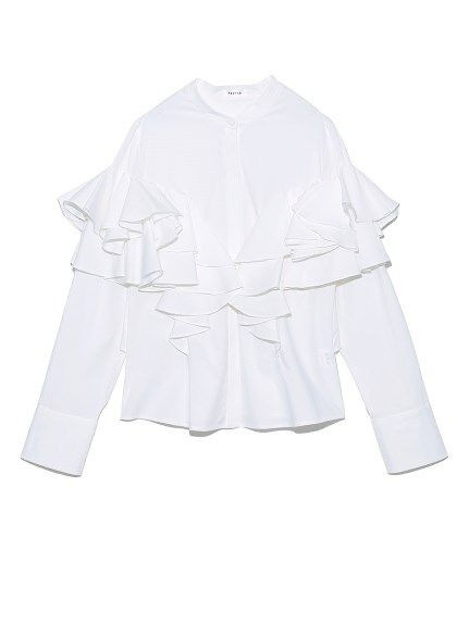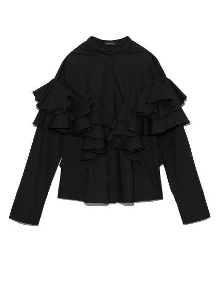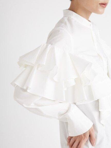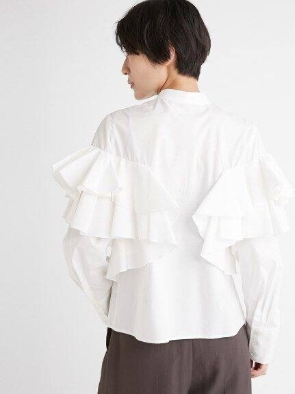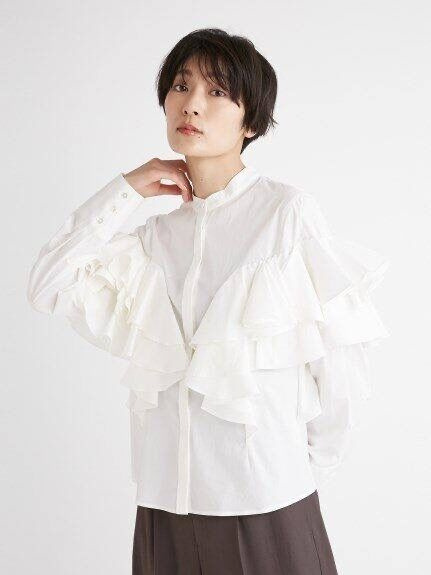 【ボリュームのあるモードなラッフルフリルデザインが特徴の華やかなブラウス】