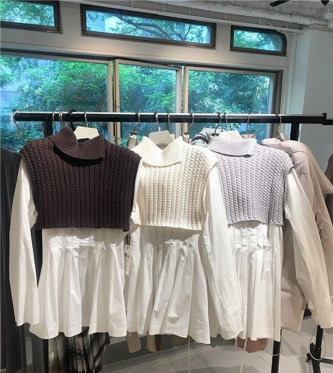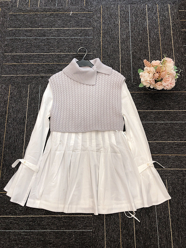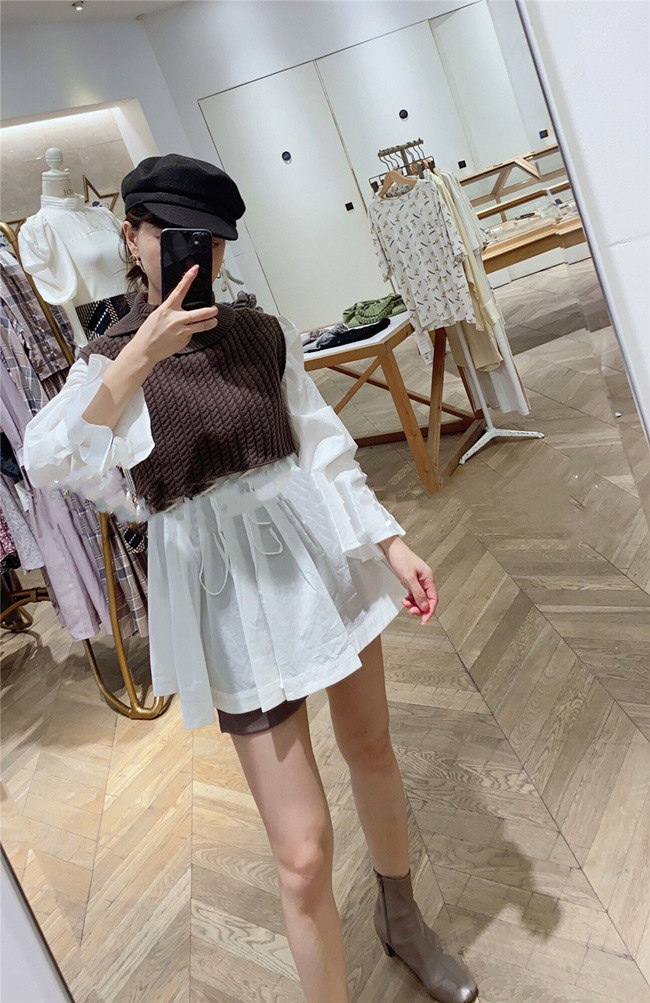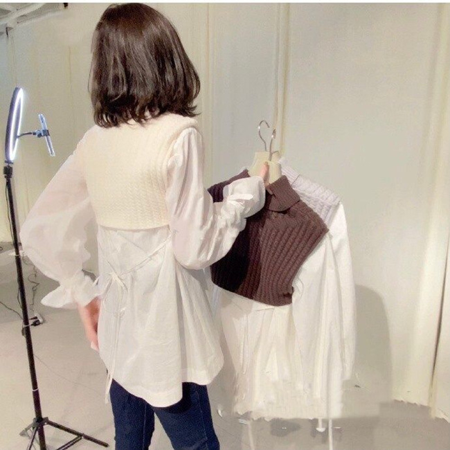 シャツチュニックレイヤードニットベスト